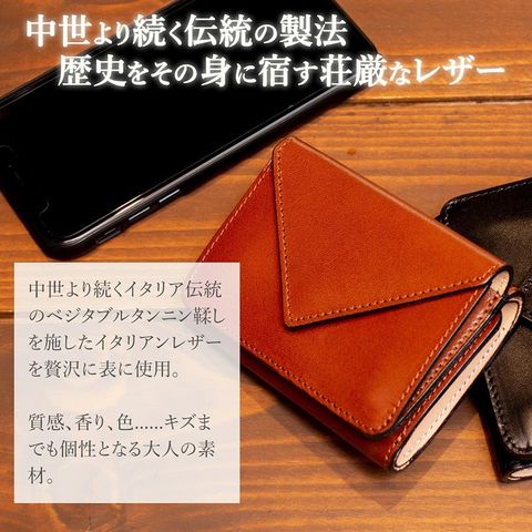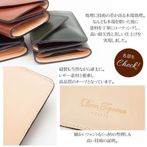 Dom Teporna Italy イタリアンレザーの三つ折り財布 内側まで全て本革 コンパクトサイズ black/ブラック