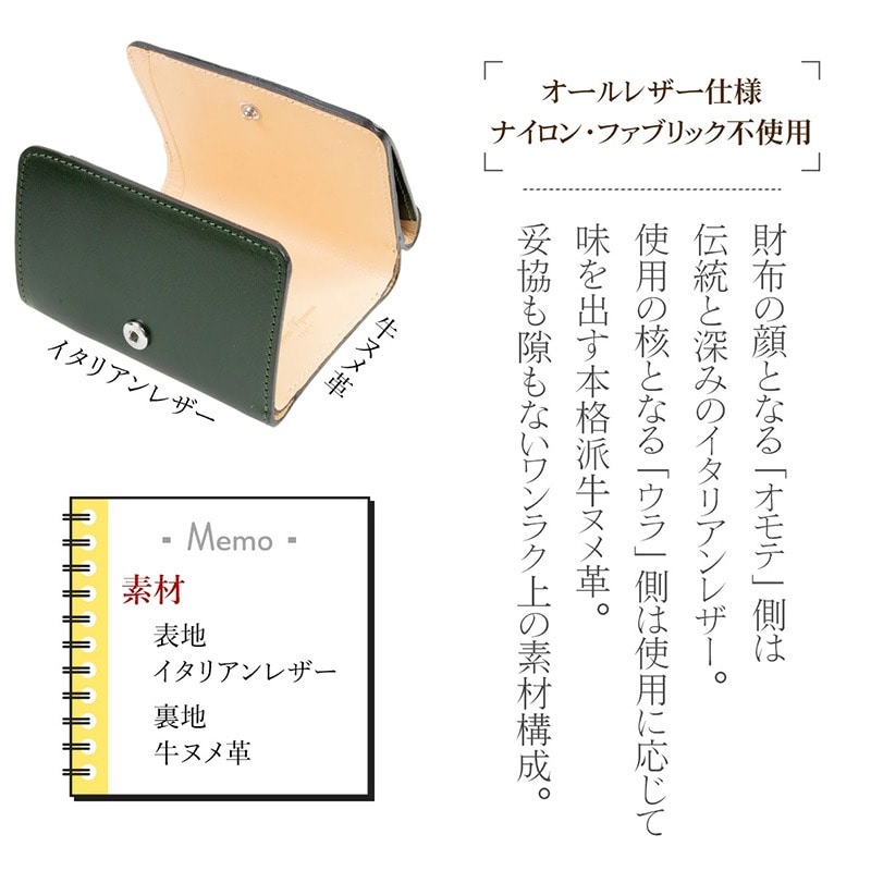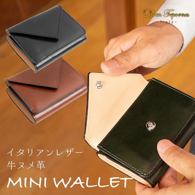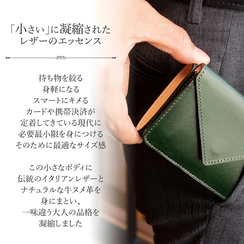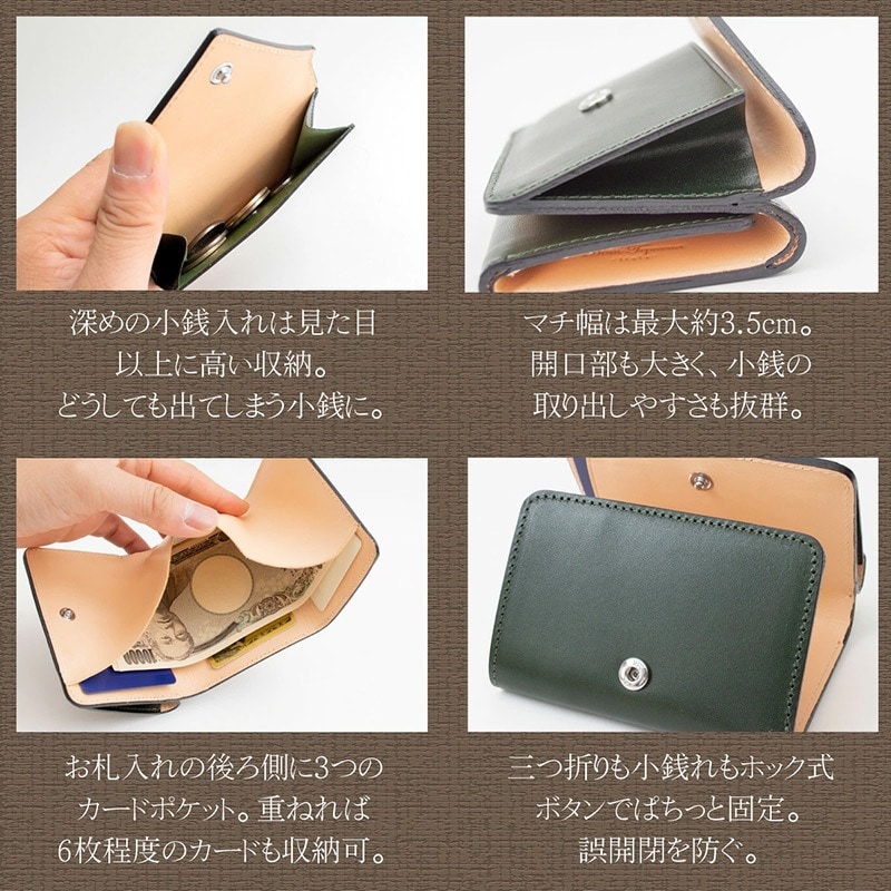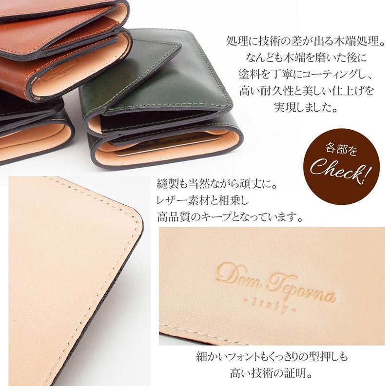 Dom Teporna Italy イタリアンレザーの三つ折り財布 内側まで全て本革 コンパクトサイズ green/グリーン