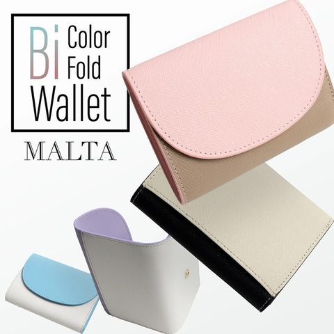 MALTA 牛革二つ折り財布 サフィアーノレザー bluewhite/ブルー×ホワイト