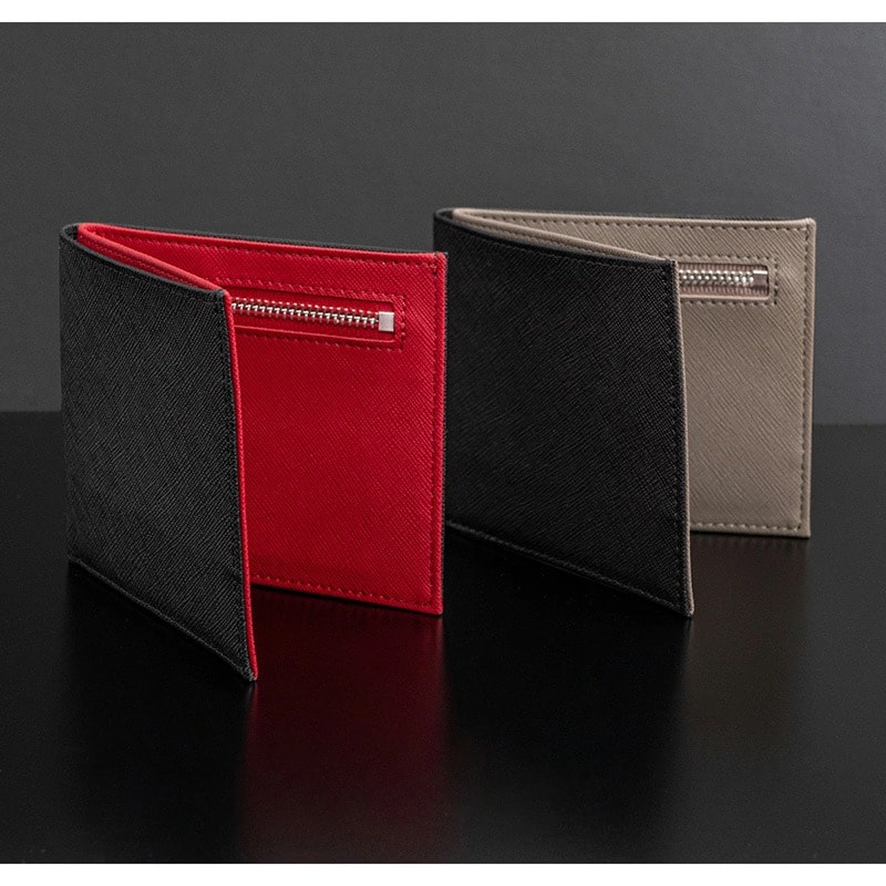 【12月10日限定ポイント30倍】Dom Teporna 薄さにこだわる牛革二つ折り財布 カード収納6枚 black red/ブラック×レッド