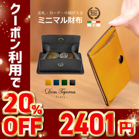【20%OFFクーポン2,401円!】Dom Teporna Italy カードポケット付き小銭入れ イタリアンレザー navy/ネイビー