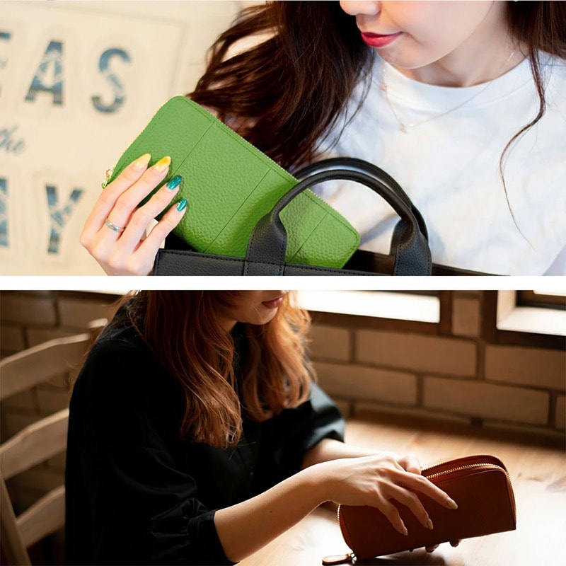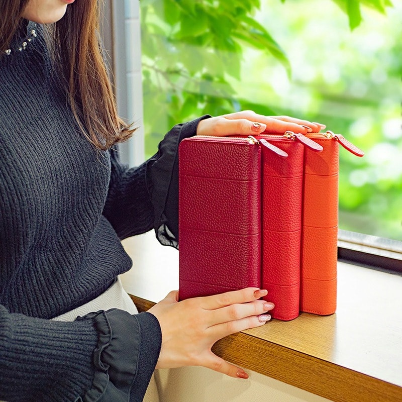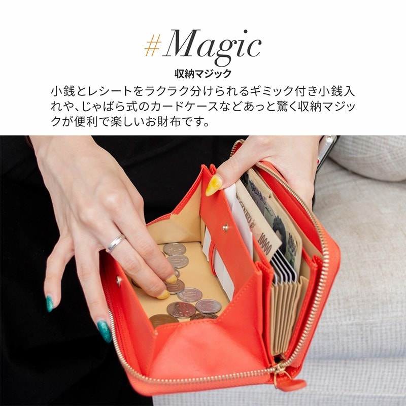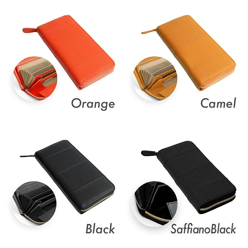RafiCaro ガバッと開くじゃばら牛革長財布 カード収納×16 camel/キャメル