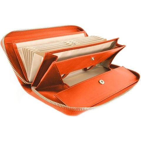 RafiCaro ガバッと開くじゃばら牛革長財布 カード収納×16 orange/オレンジ