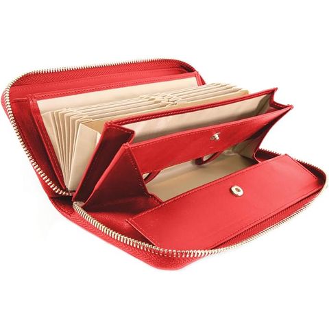 RafiCaro ガバッと開くじゃばら牛革長財布 カード収納×16 red/レッド