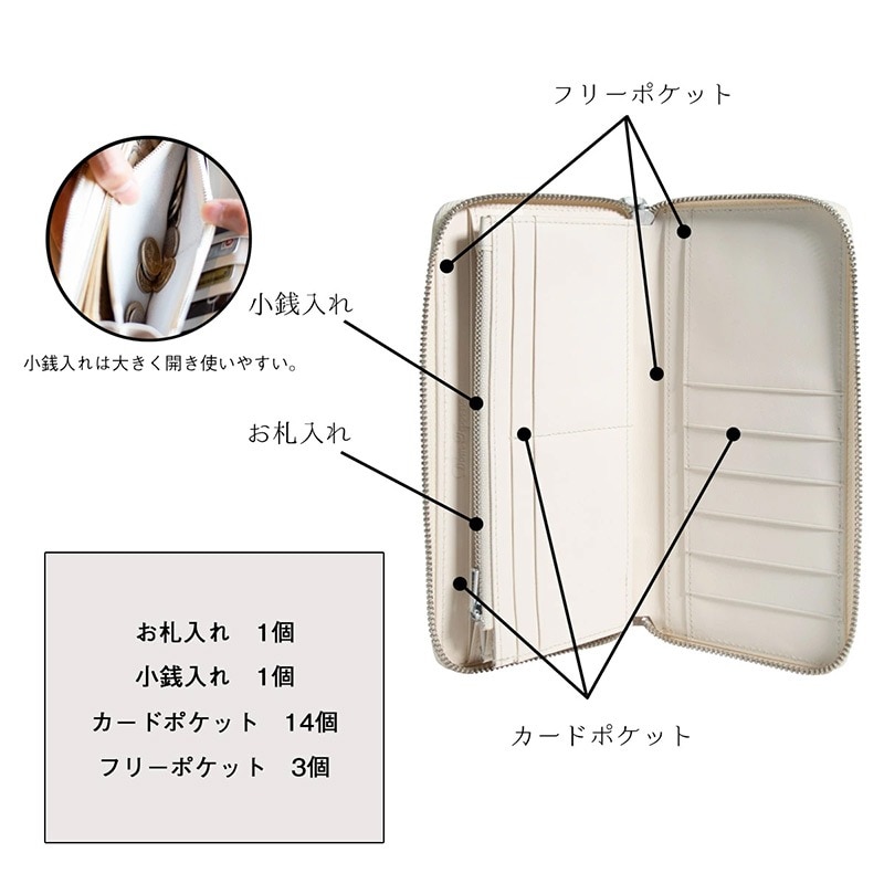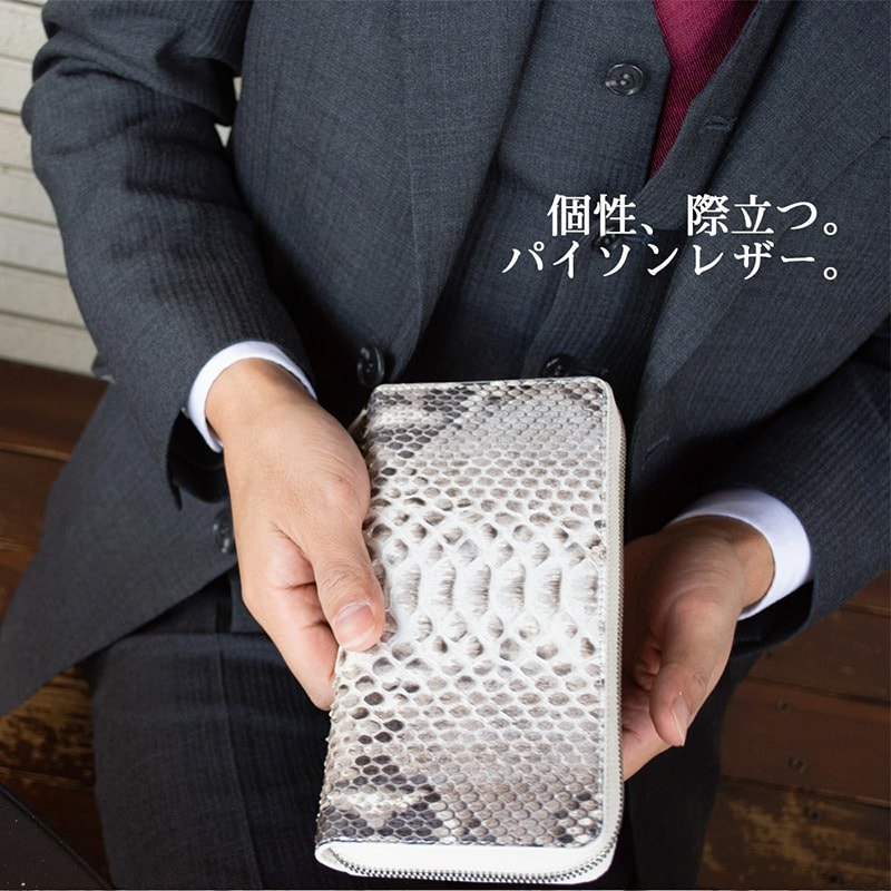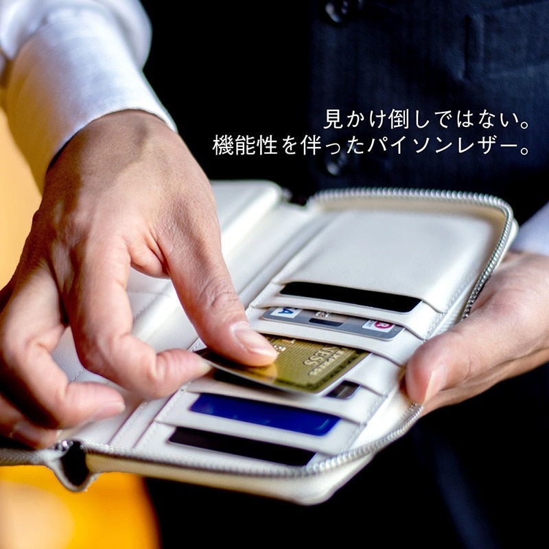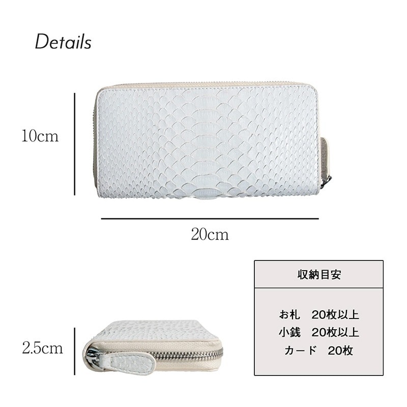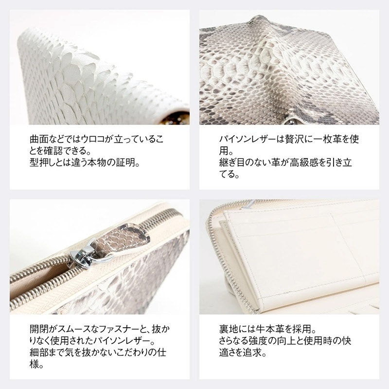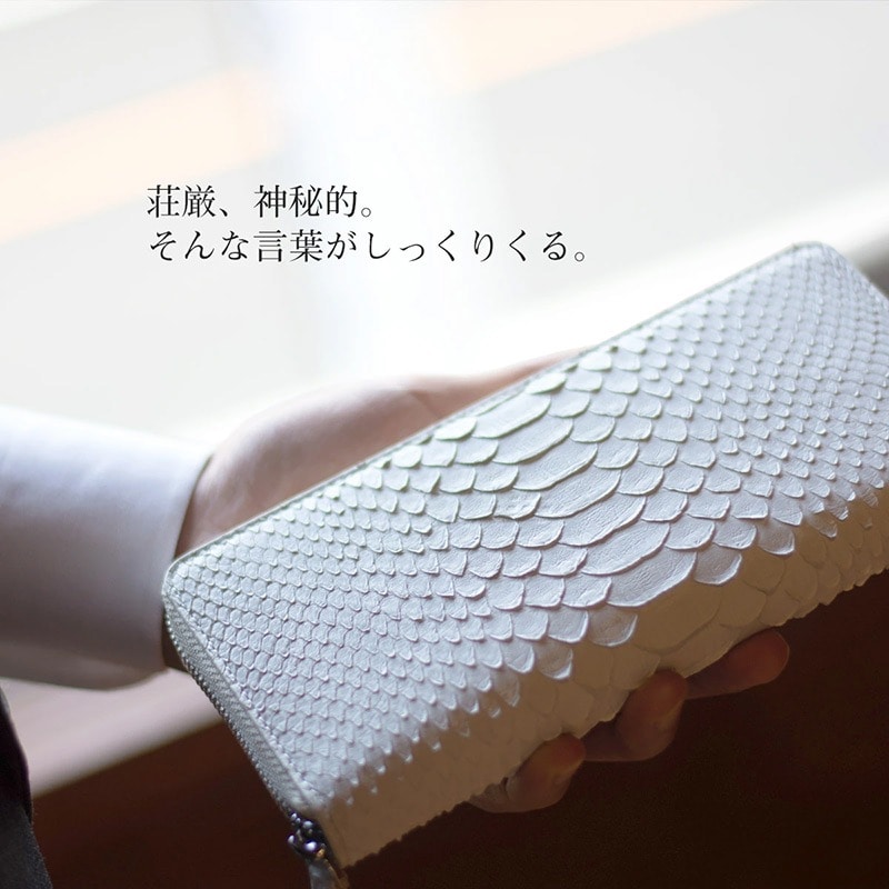 Dom Teporna ヘビ革長財布 本革 カード大容量14枚 white/ホワイト