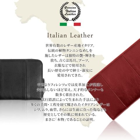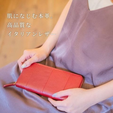 Dom Teporna Italy 小銭とカードが見やすい本革長財布 イタリアンレザー red/レッド