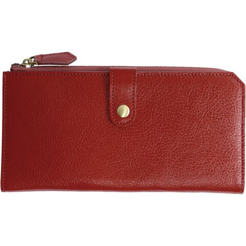 RafiCaro 膨らみにくいスリムな本革長財布 カード収納×12 red/レッド