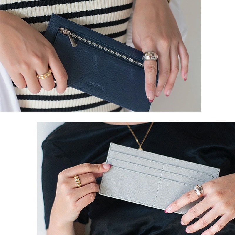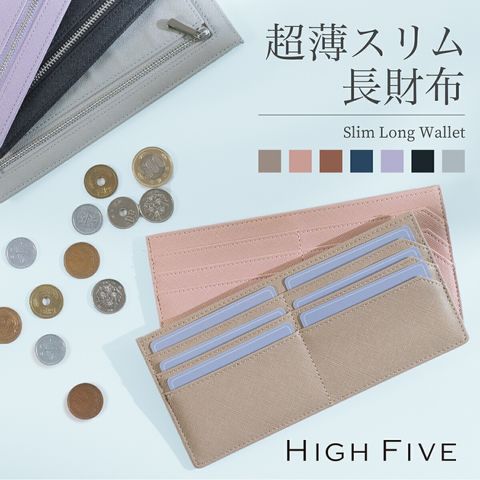 HIGHFIVE 薄さ3mmのスマート長財布 お手入れしやすいPUレザー dustypink/ダスティピンク