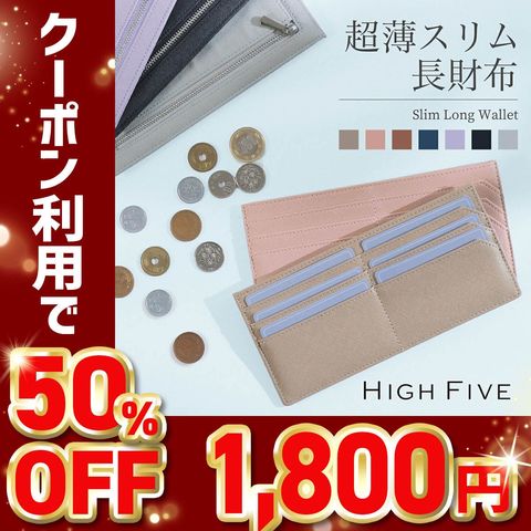 【限定50%OFFクーポン】【3,600円→1,800円】HIGHFIVE 薄さ3mmのスマート長財布 お手入れしやすいPUレザー greige/グレージュ