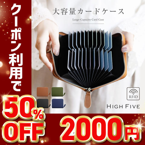 【50%OFFクーポン2,000円!】HIGH FIVE 大容量じゃばらカードケース 牛革 カードポケット×24 スキミング防止 green/グリーン