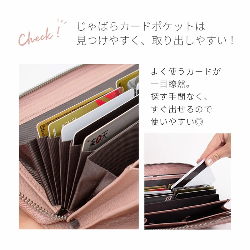 カードポケットはじゃばら形状で大容量ながら、使いたいカードがすぐに見つかります。