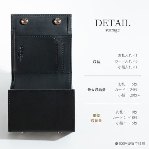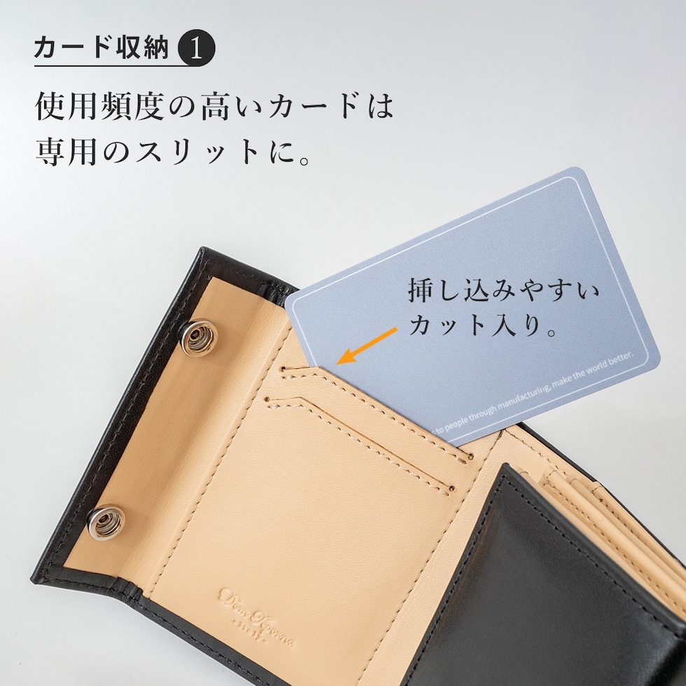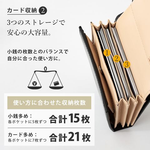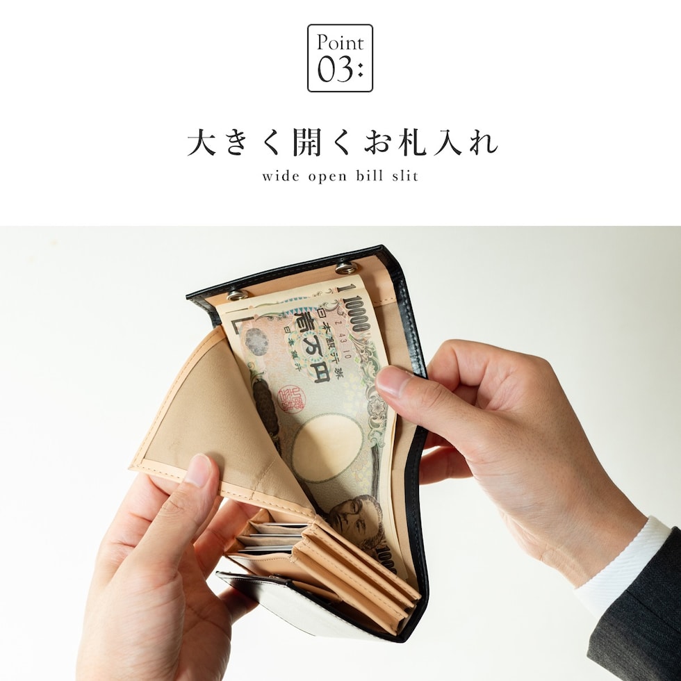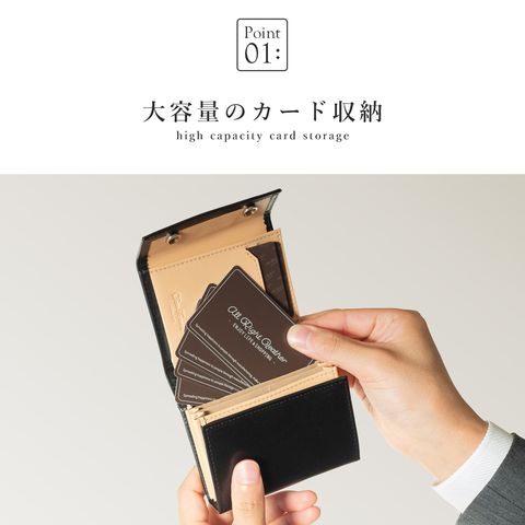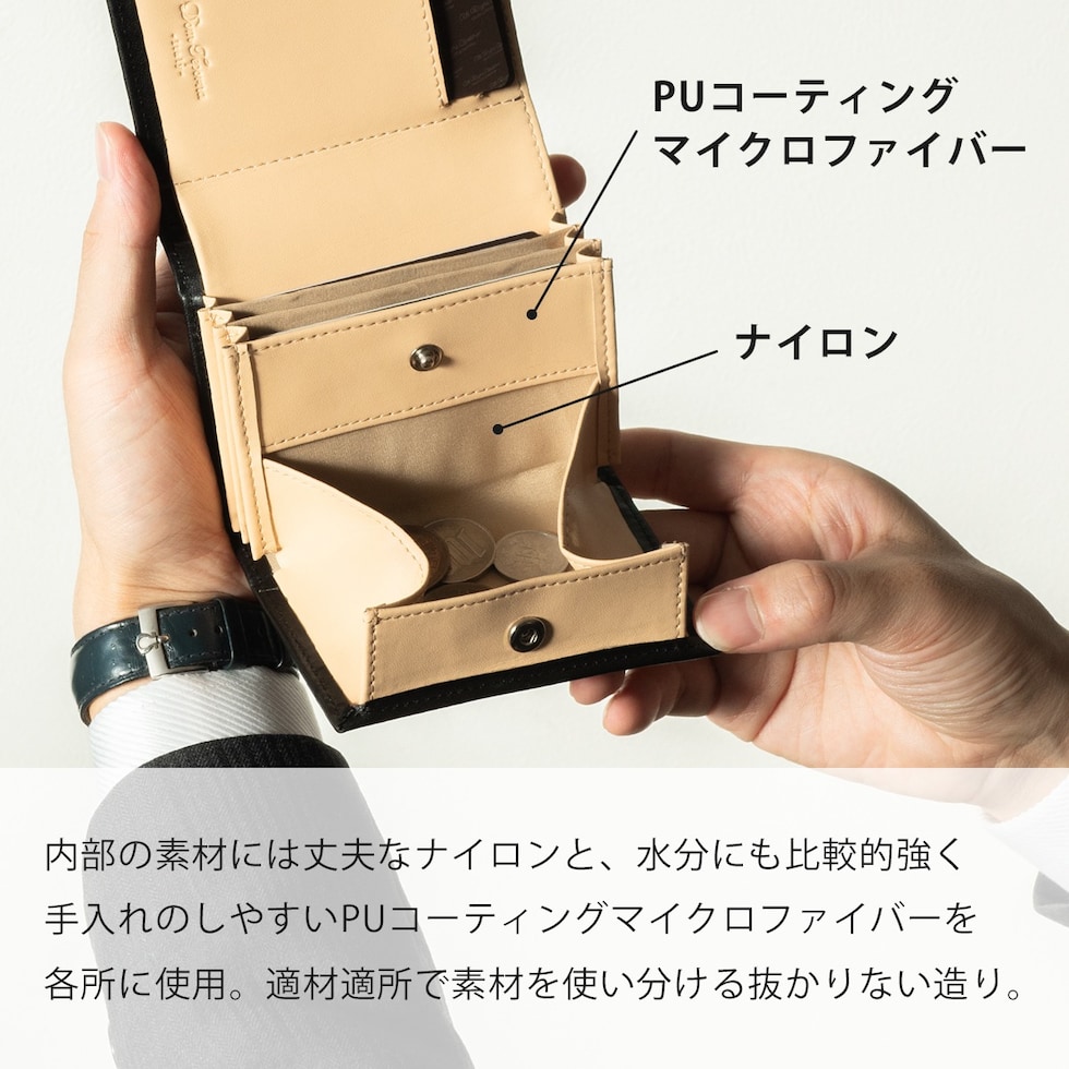 人気のお財布をさらにコンパクトに、使いやすく改良しました。絶妙な深さのマチ付き大容量カードポケット。フラップ部分に独立ポケットもプラス。小銭入れは大きく開くボックス型を採用しました。ICカード収納に最適なアウターポケットも付属しています。