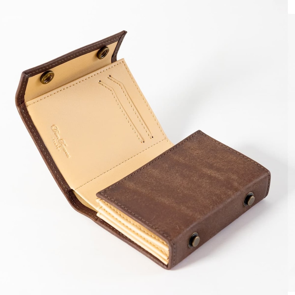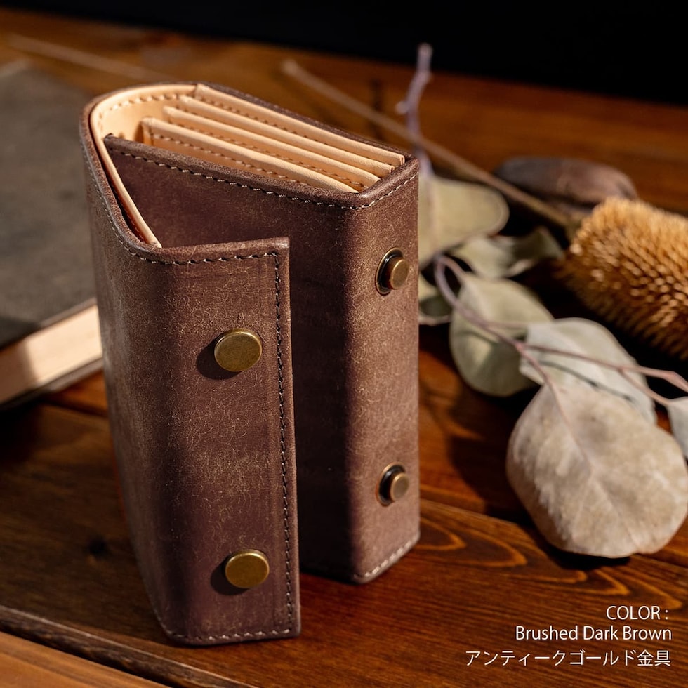 伝統的なベジタブルタンニンなめしで仕上げたイタリアンレザーを贅沢に使用しています。上質なレザーと四角いフォルムの組み合わせは手馴染みが良く、使い込むほど魅力が増していくお財布です。