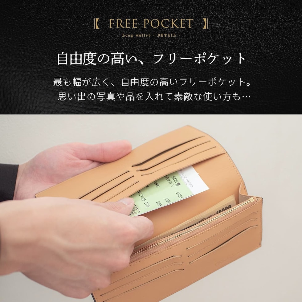 互い違いのマチで使いやすさと薄さを両立。カードポケットも切り欠き付きで取り出しやすさ抜群。小銭入れのファスナーはYKKの最高級品質EXCELLA(エクセラ)を使用し、滑らかな使い心地です。