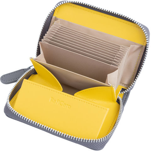 RafiCaro お札を折らない牛革じゃばらミニ財布 greyyellow/グレー×イエロー