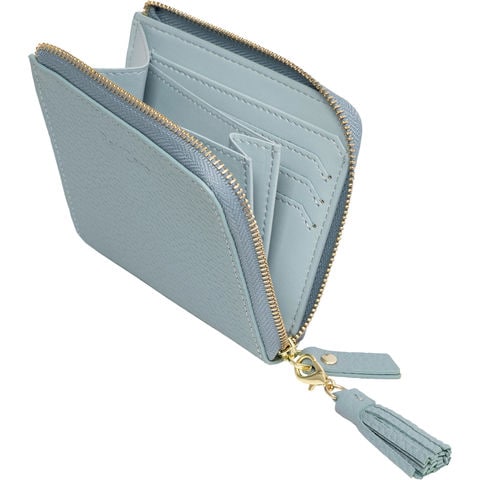 【12月10日限定ポイント30倍】RafiCaro お札を折らない牛革ミニ財布 レディース タッセル付き dustyblue/ダスティブルー