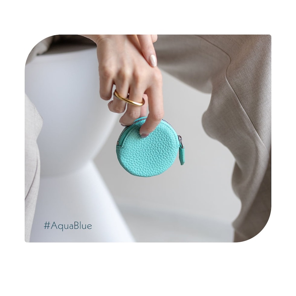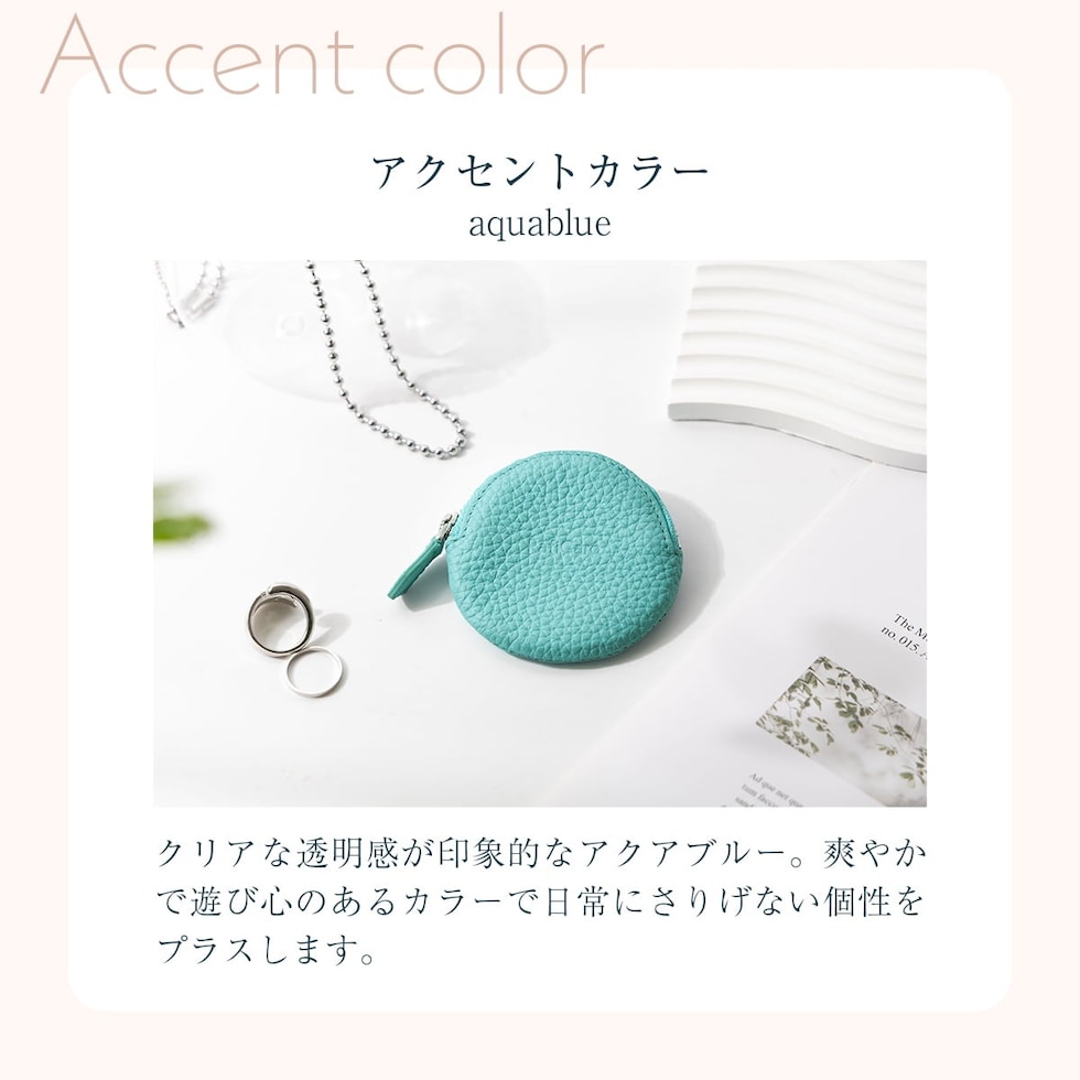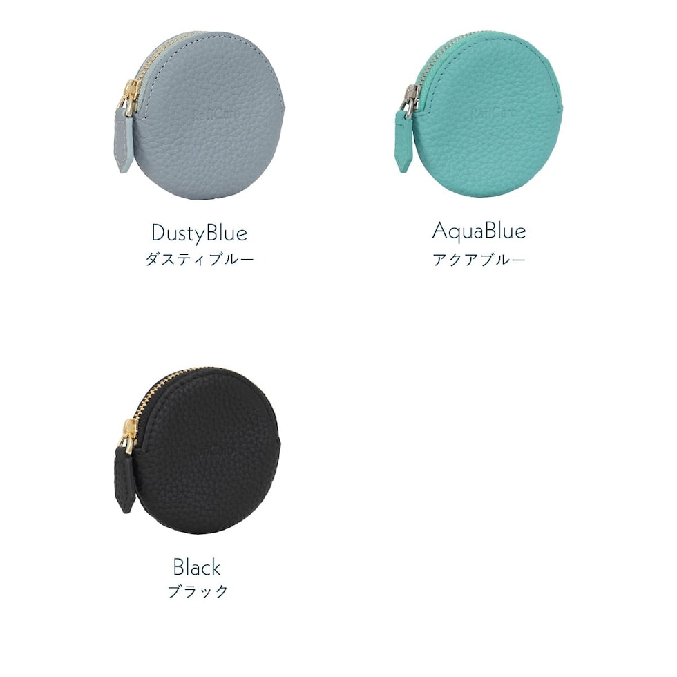 RafiCaro 本革コインケース 丸型 小銭入れ 本革 YKKファスナー aquablue/アクアブルー