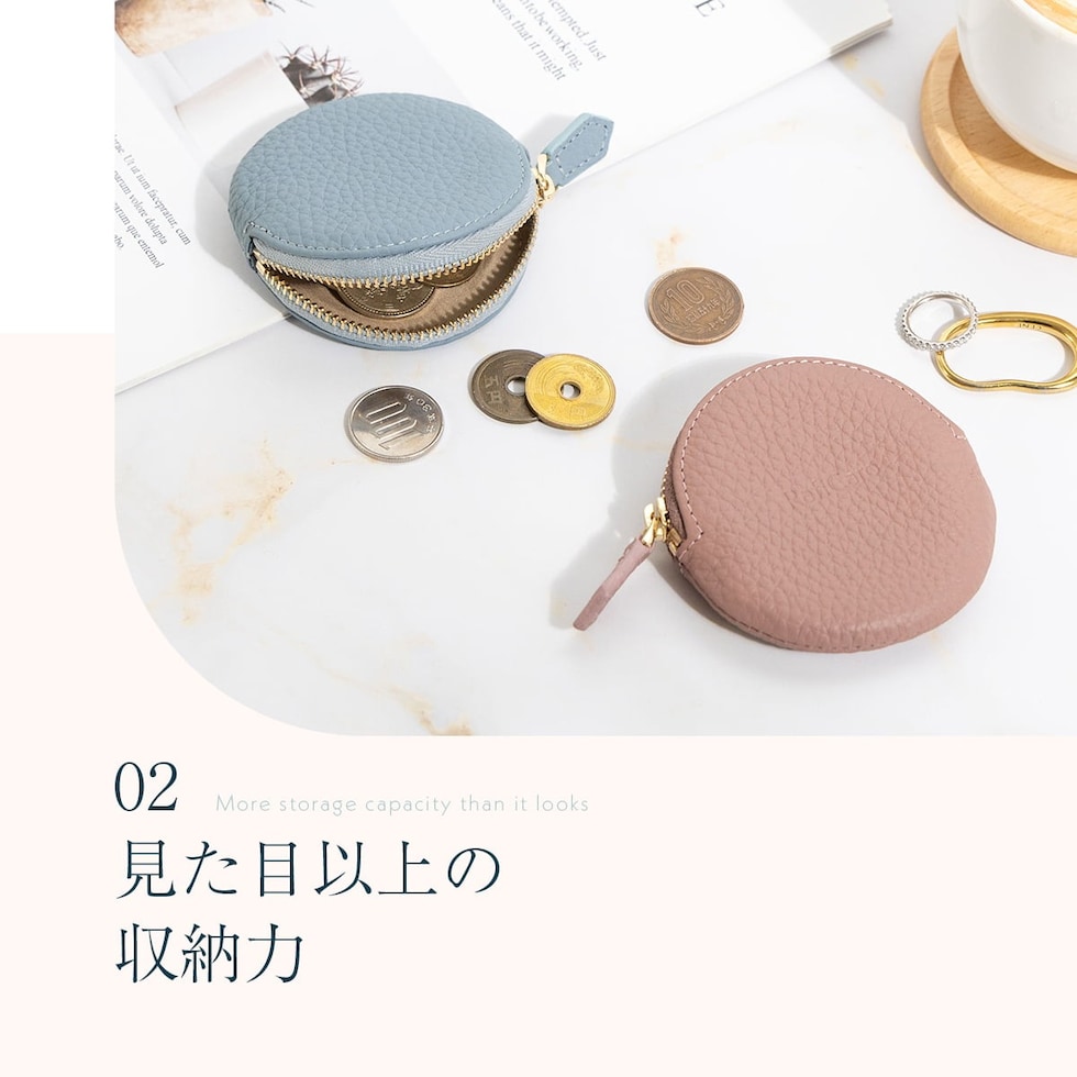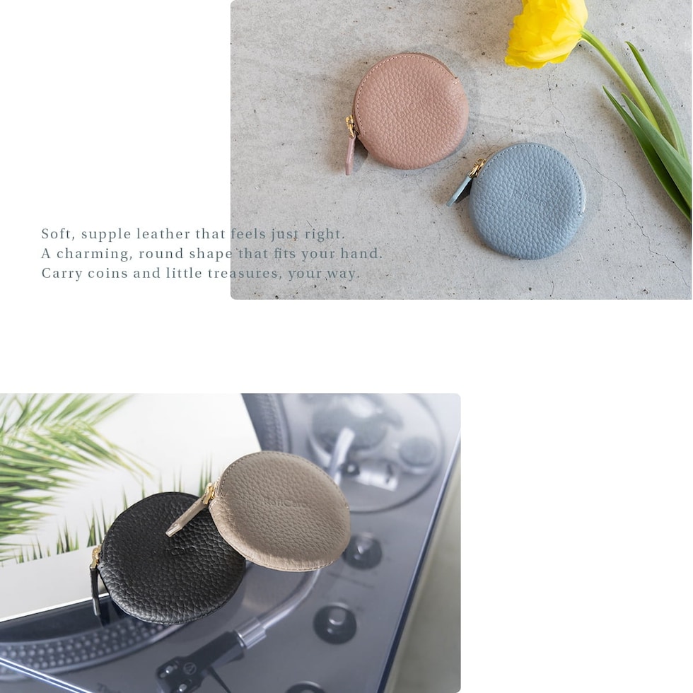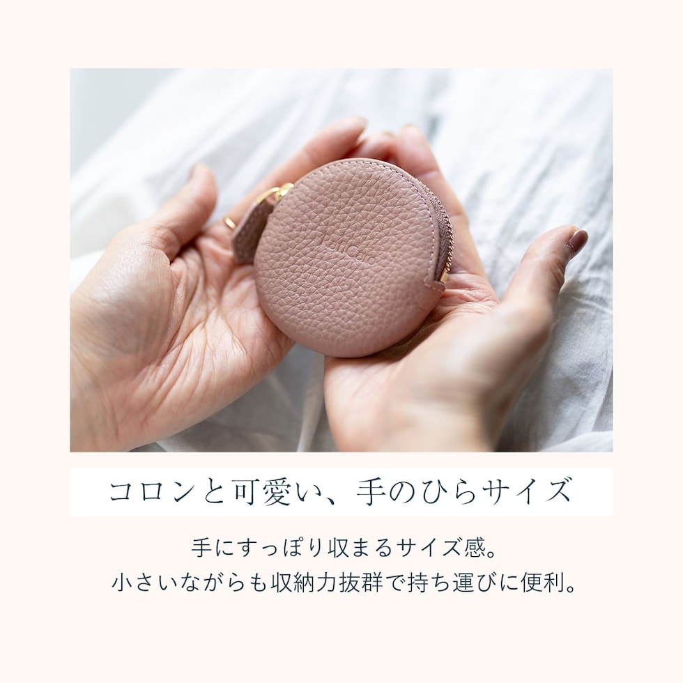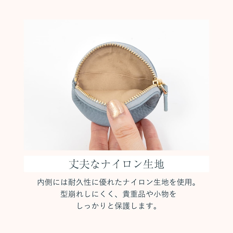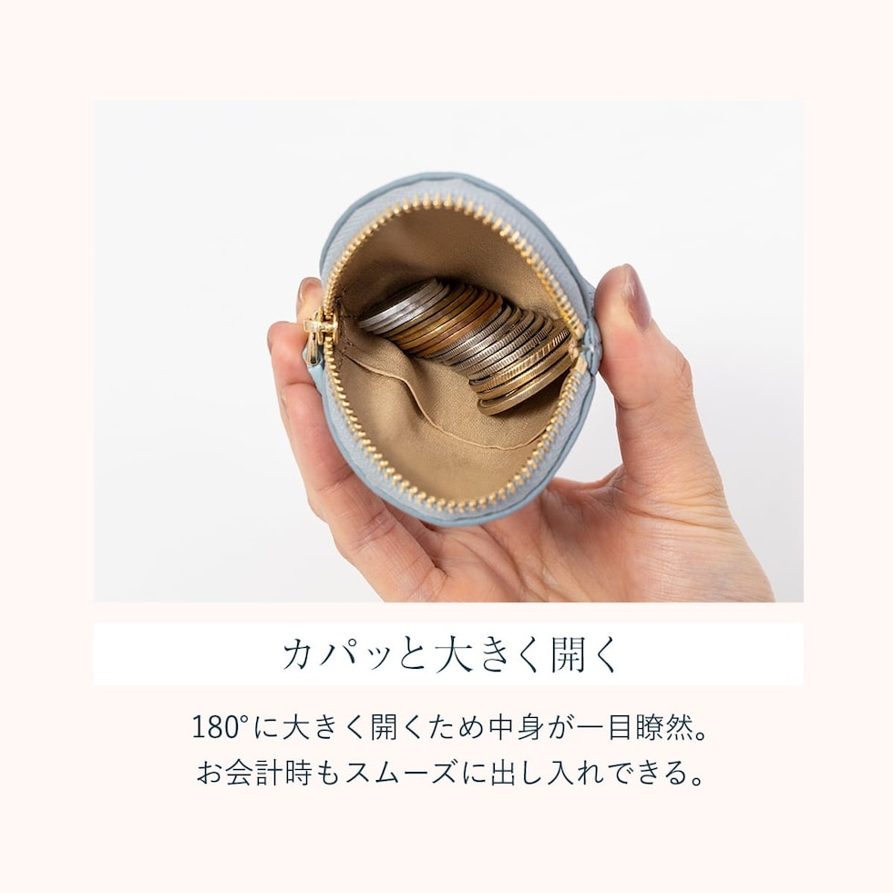 まるいフォルムがかわいい小銭入れです。小さめバッグにもポケットにも収まり、気軽に持ち歩けるサイズ感。見た目以上の収納力。コイン以外にもアクセサリーやイヤフォンのケースとしてもお勧めです。
