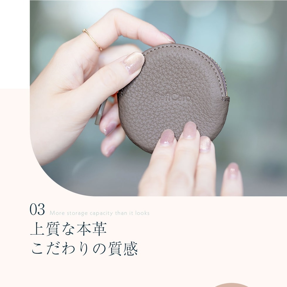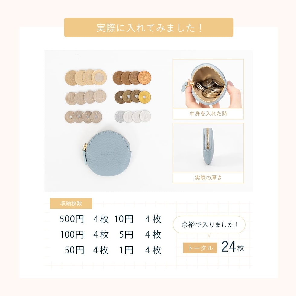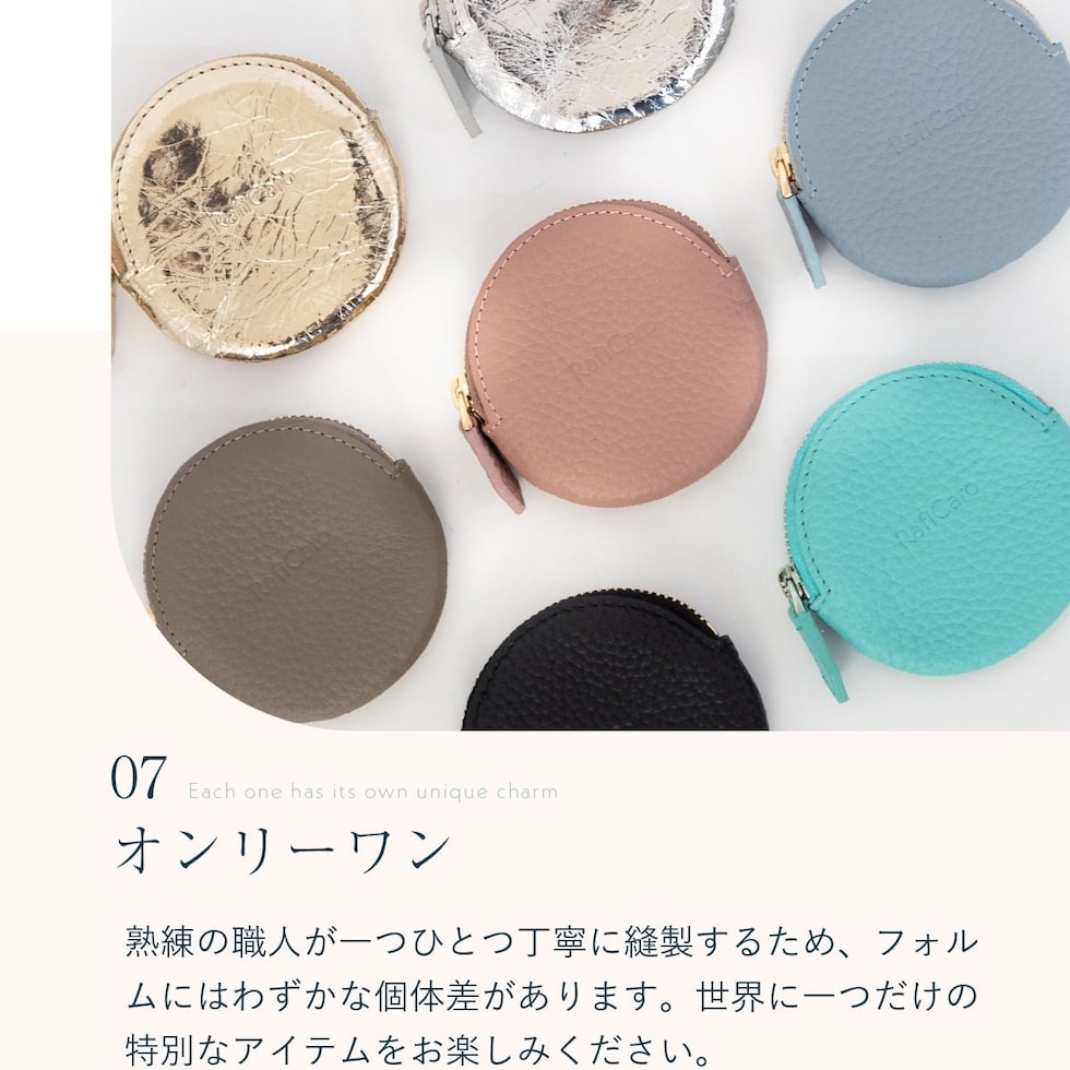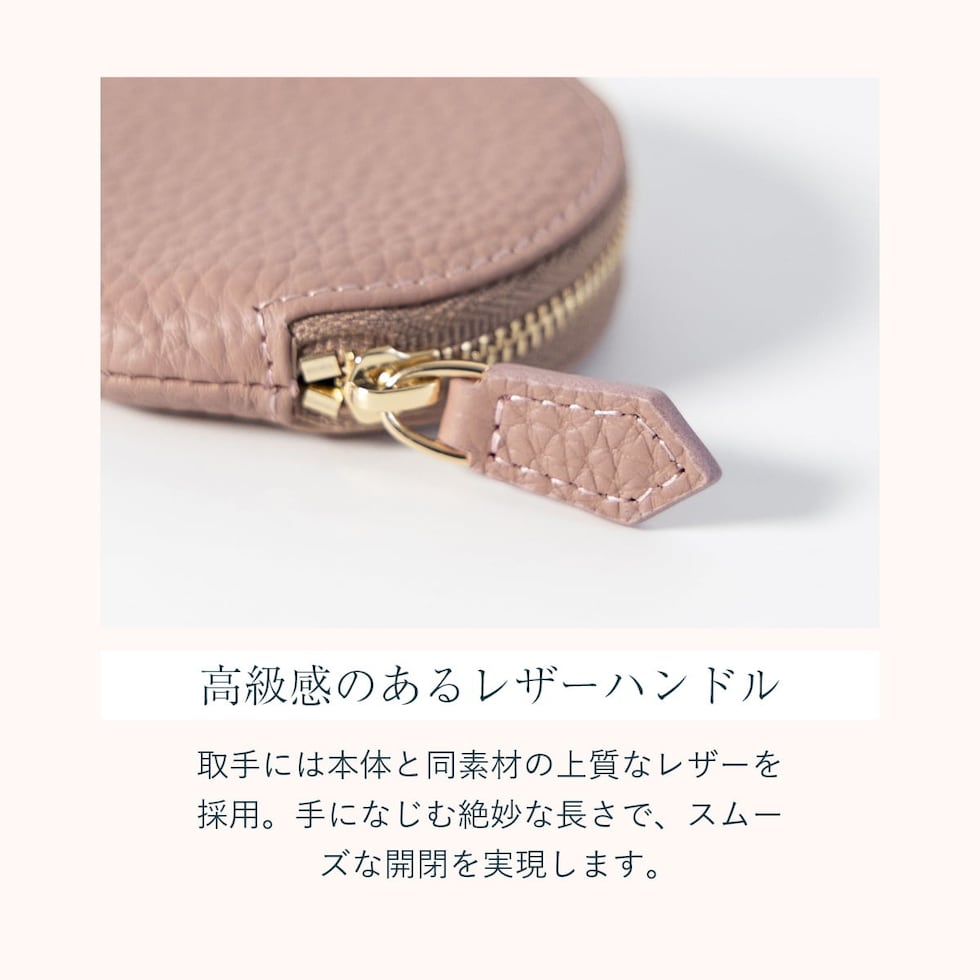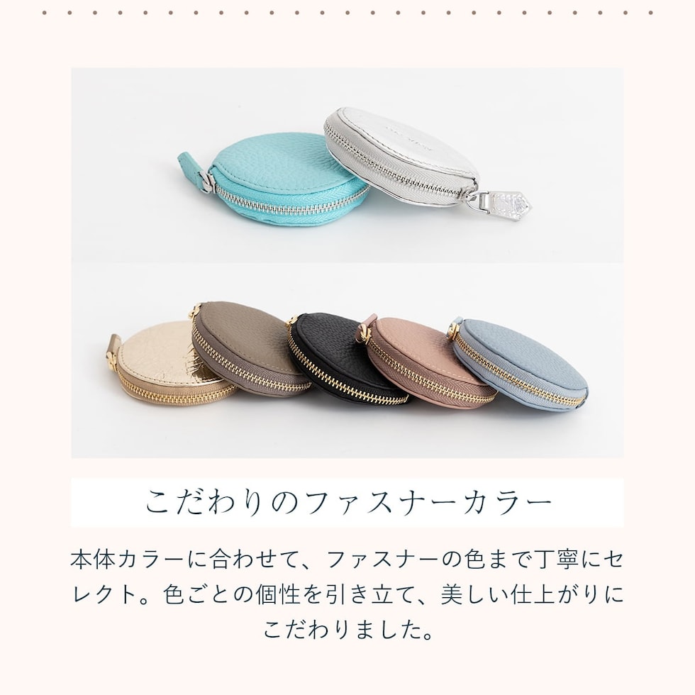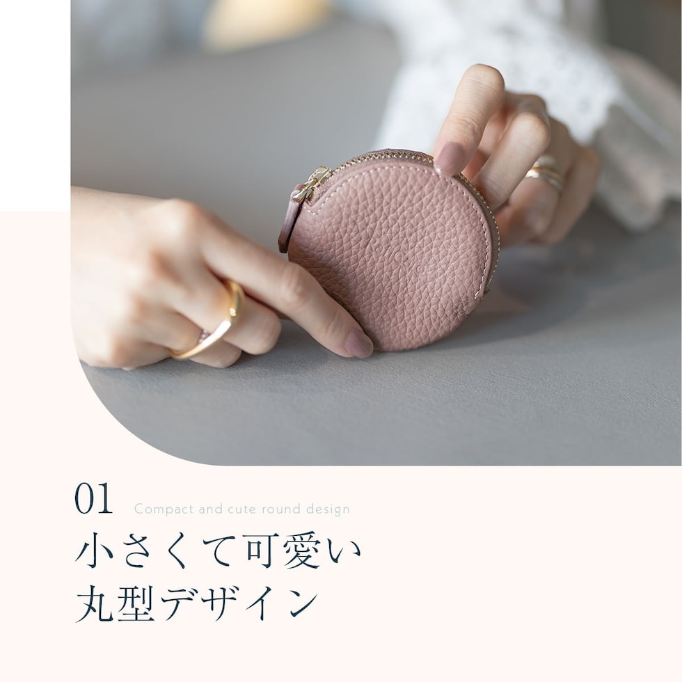 まるいフォルムがかわいい小銭入れです。小さめバッグにもポケットにも収まり、気軽に持ち歩けるサイズ感。見た目以上の収納力。コイン以外にもアクセサリーやイヤフォンのケースとしてもお勧めです。