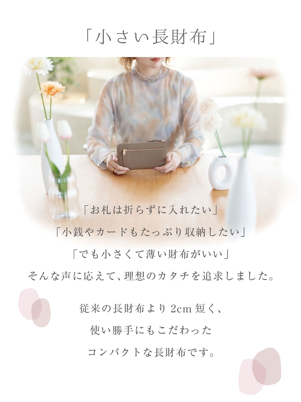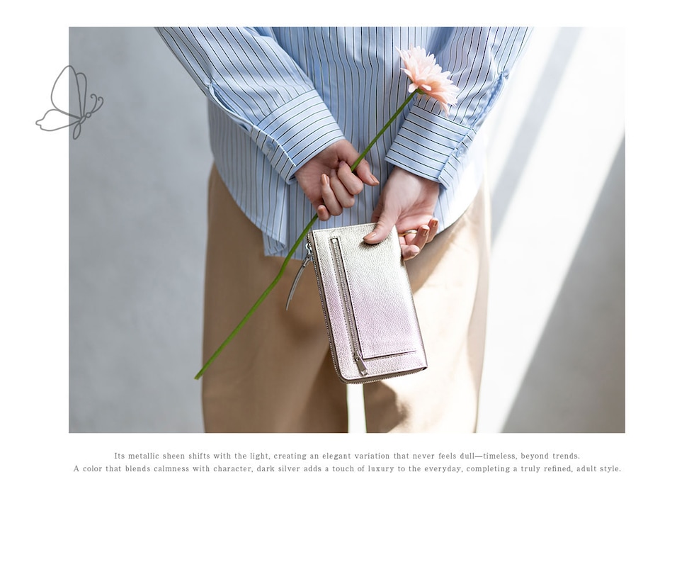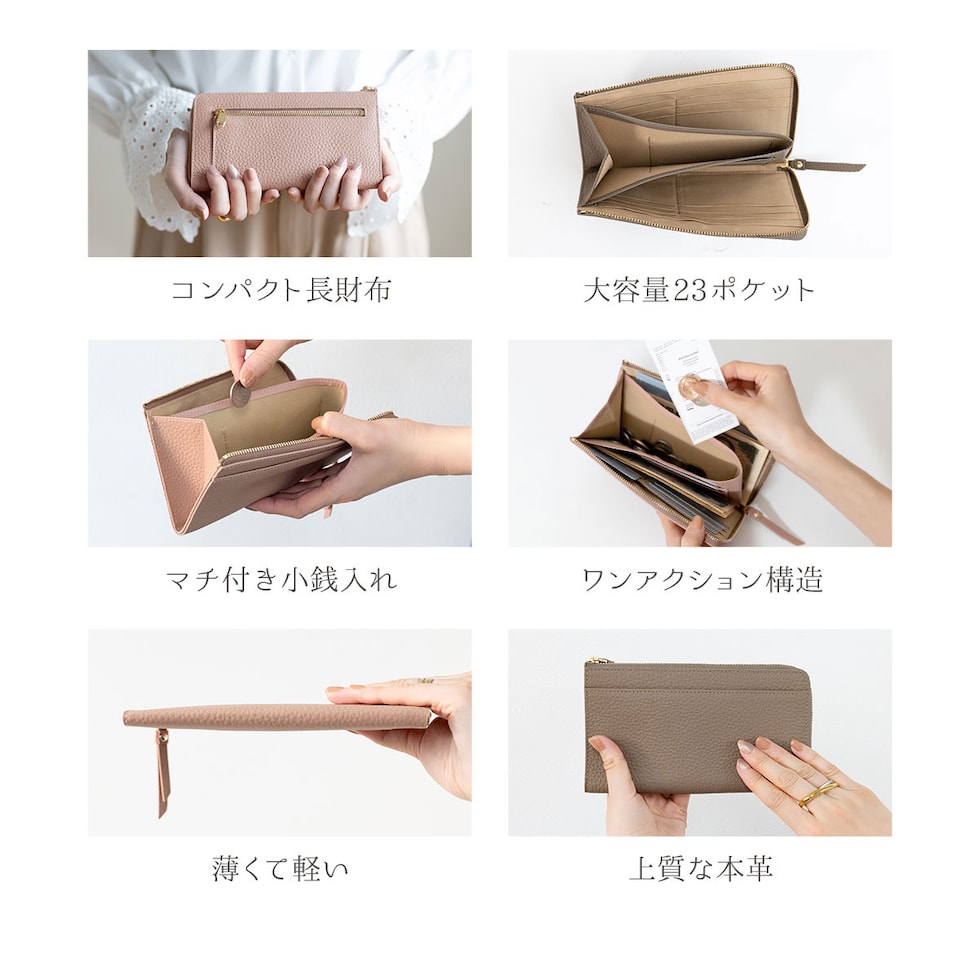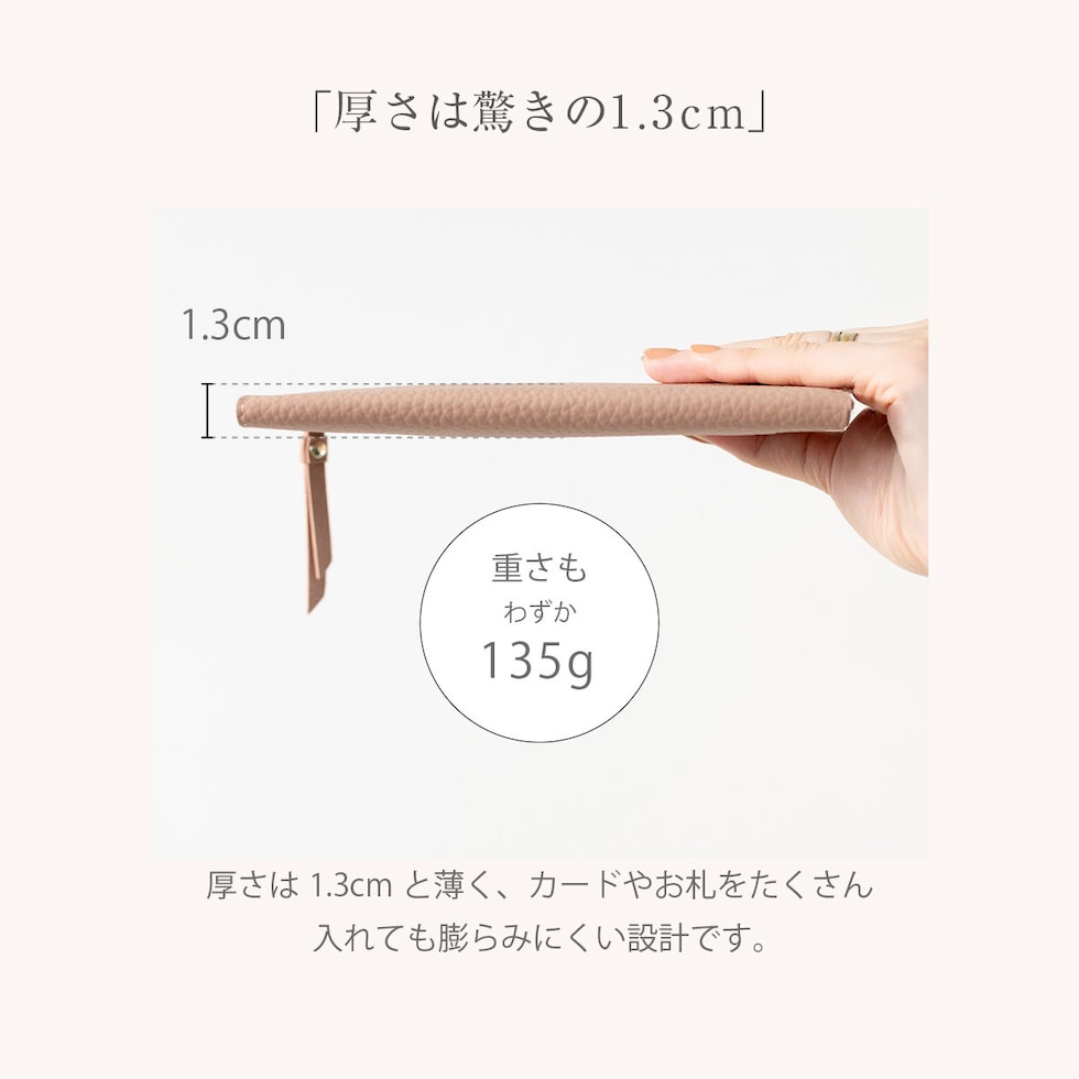 ロングウォレットの快適さを保ちつつ限界までサイズをおさえた、”いいとこどり” のお財布です。