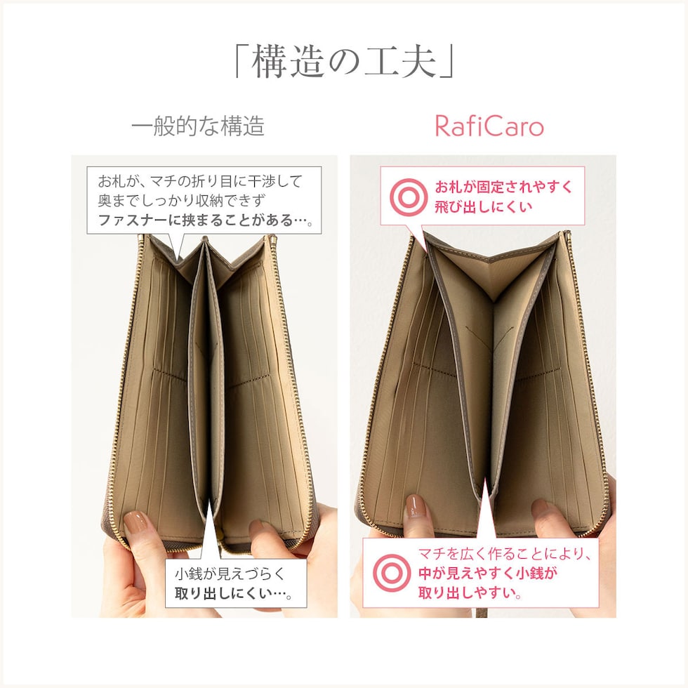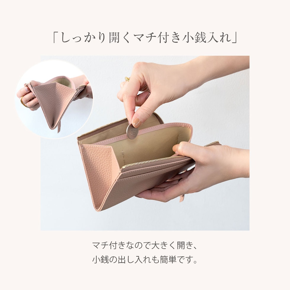 独自のマチ構造で取り出しやすい小銭入れ。