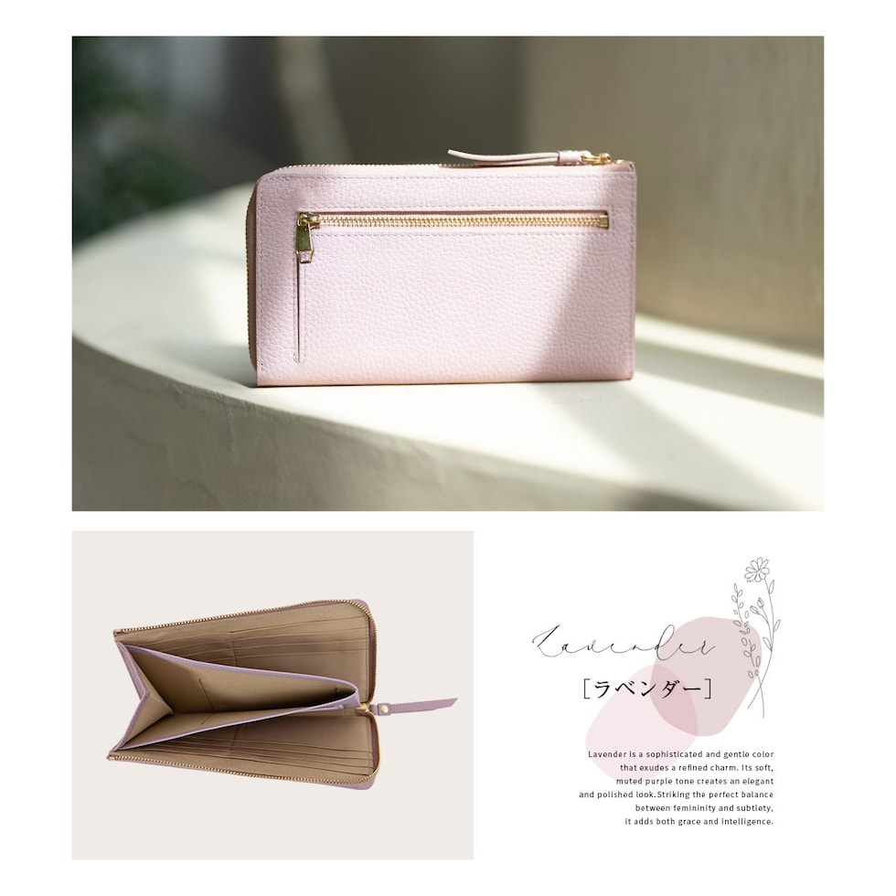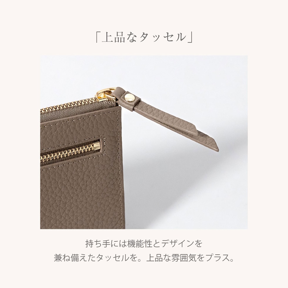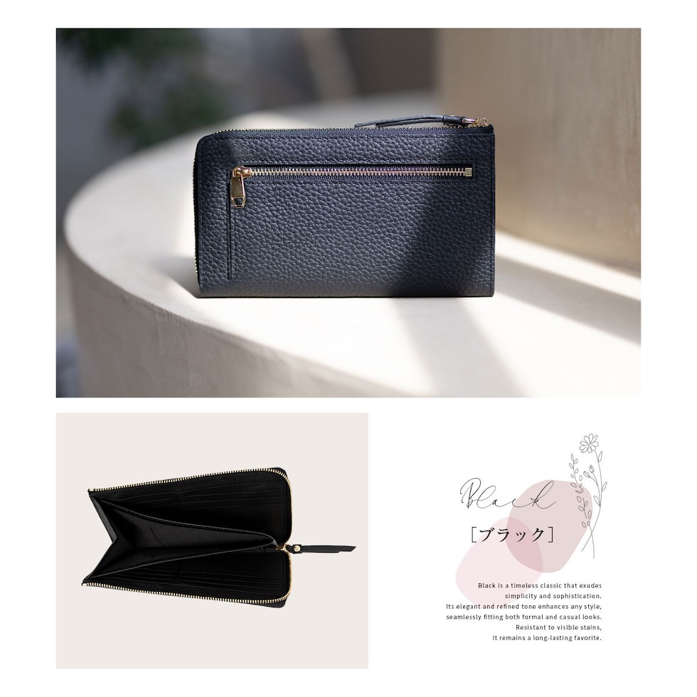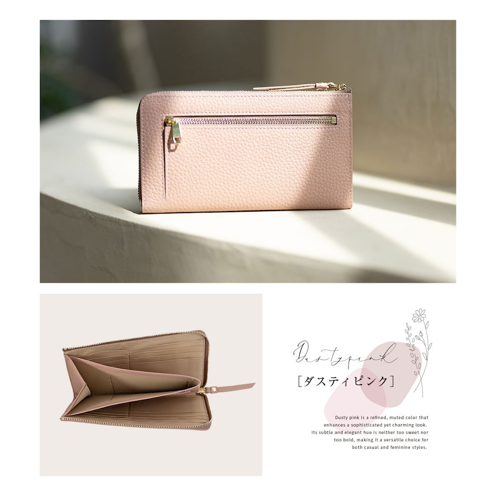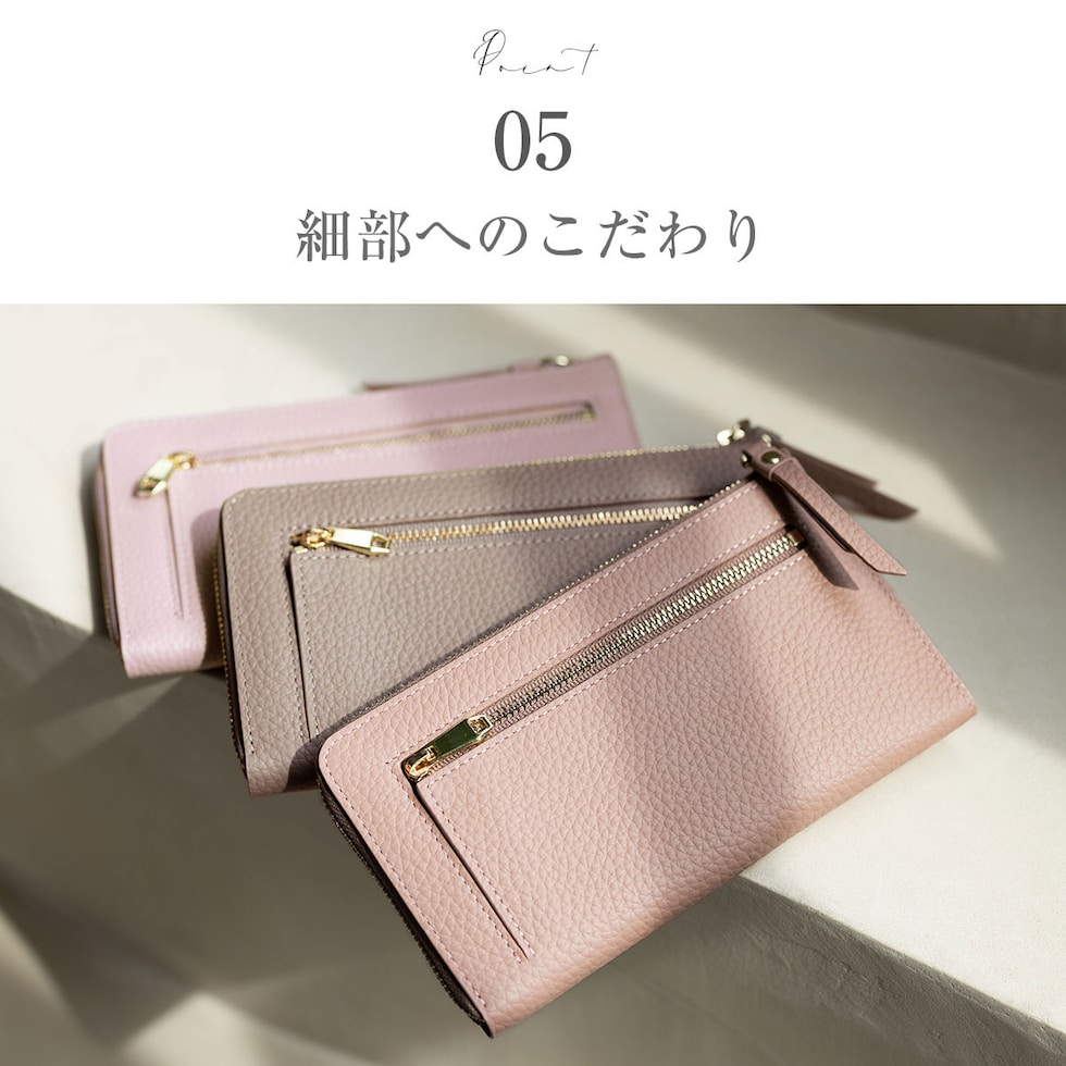 表地には上品で優しい手ざわりの本革シュリンクレザー、ファスナーは安心のYKK製。