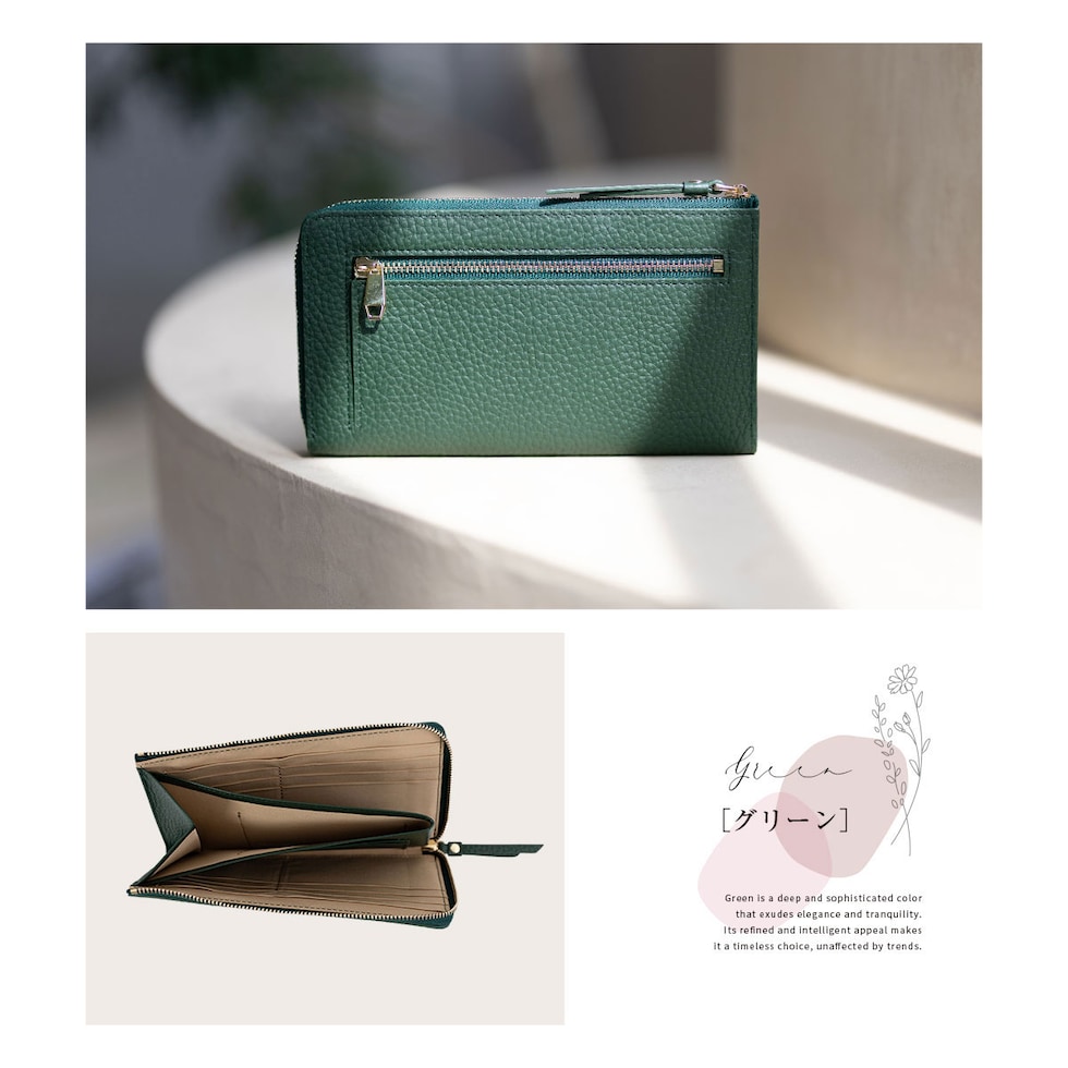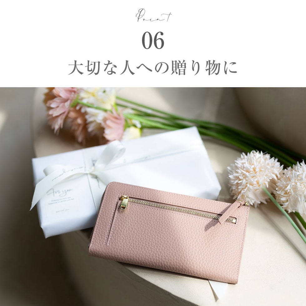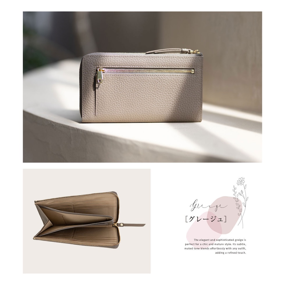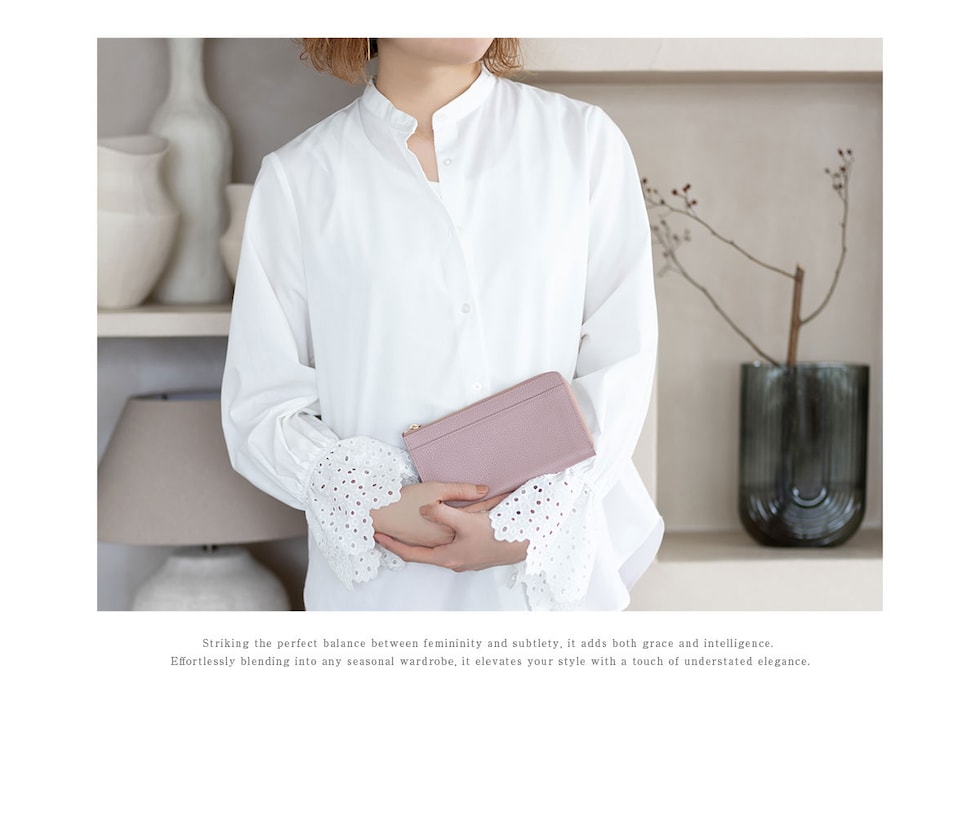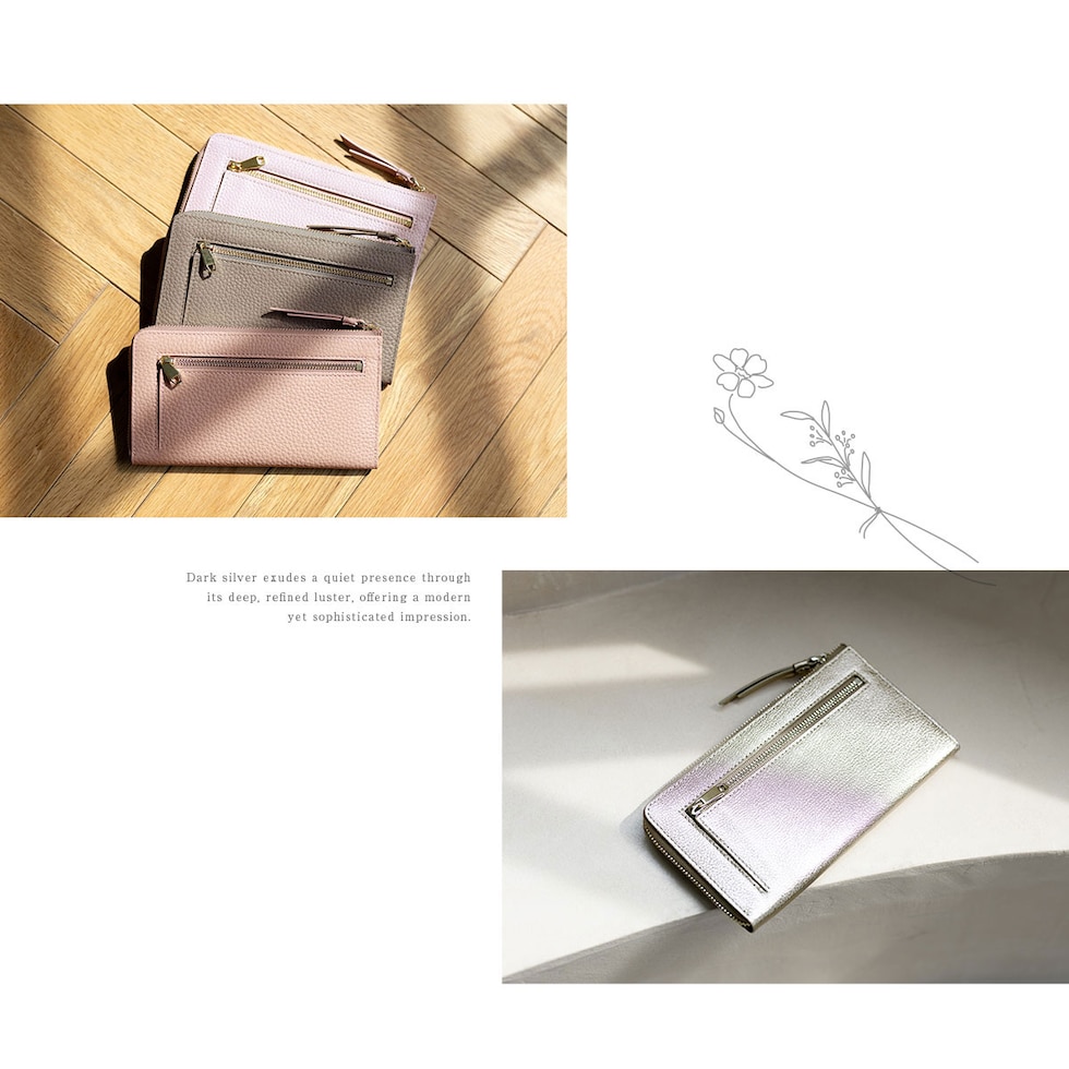 表地には上品で優しい手ざわりの本革シュリンクレザー、ファスナーは安心のYKK製。