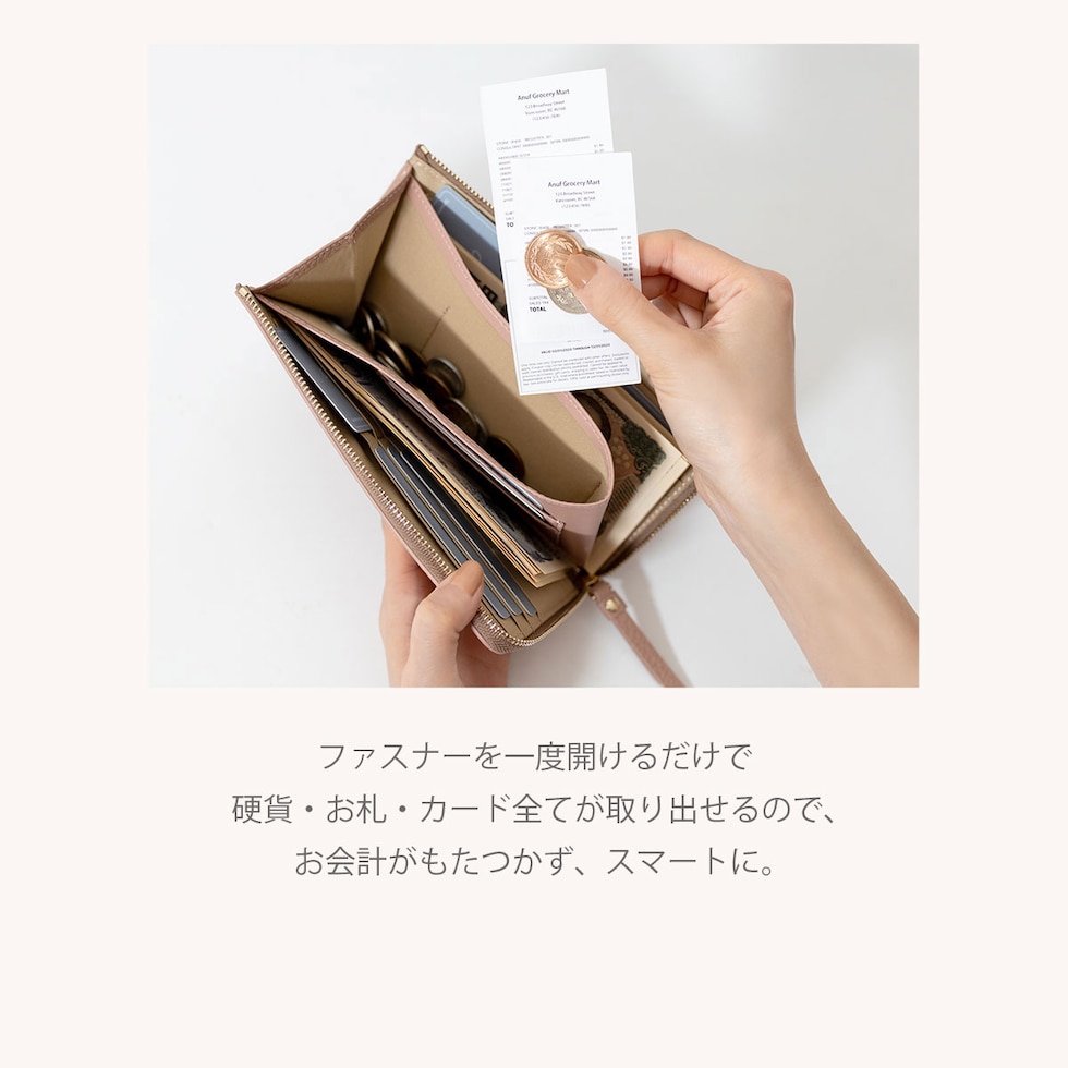 ワンアクションでお札・小銭・カードにアクセスできるので、お会計もスムーズです。