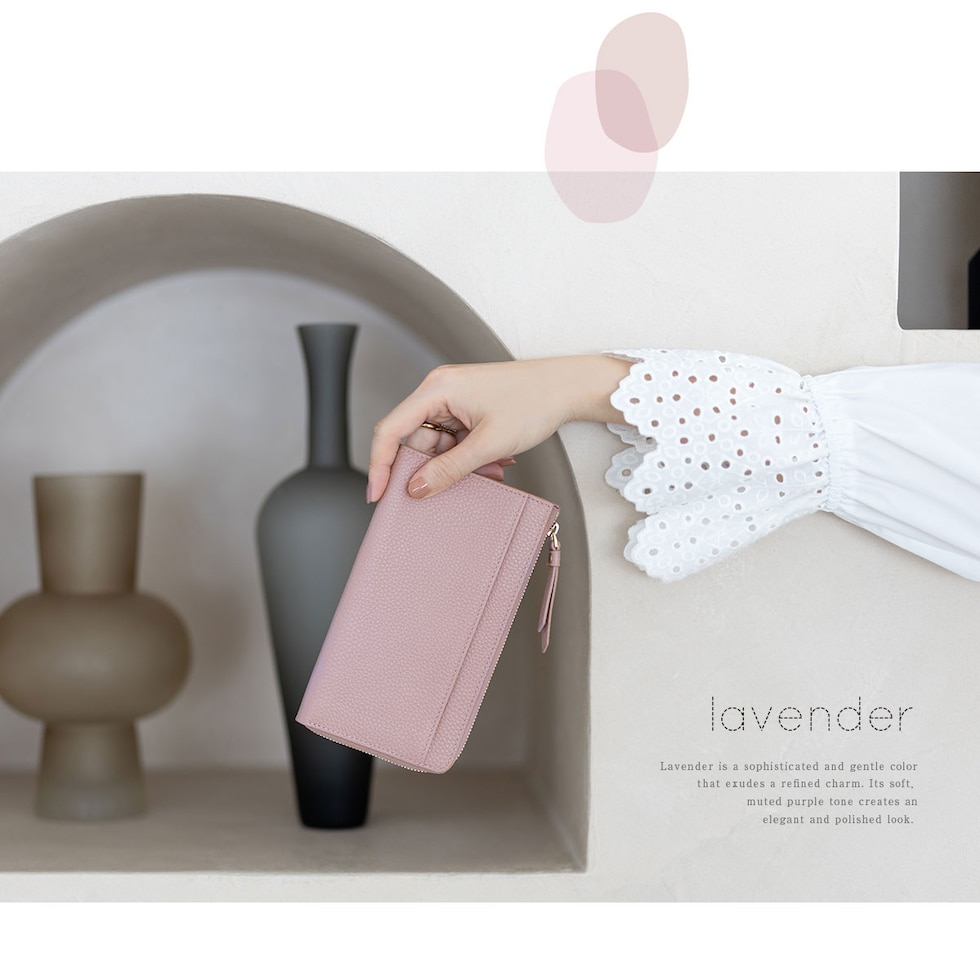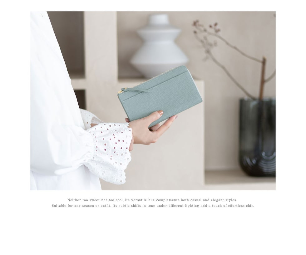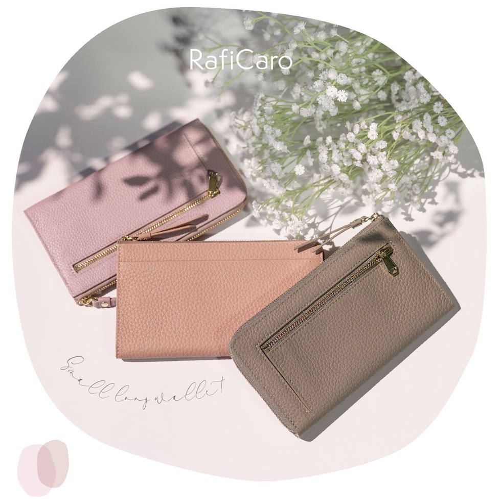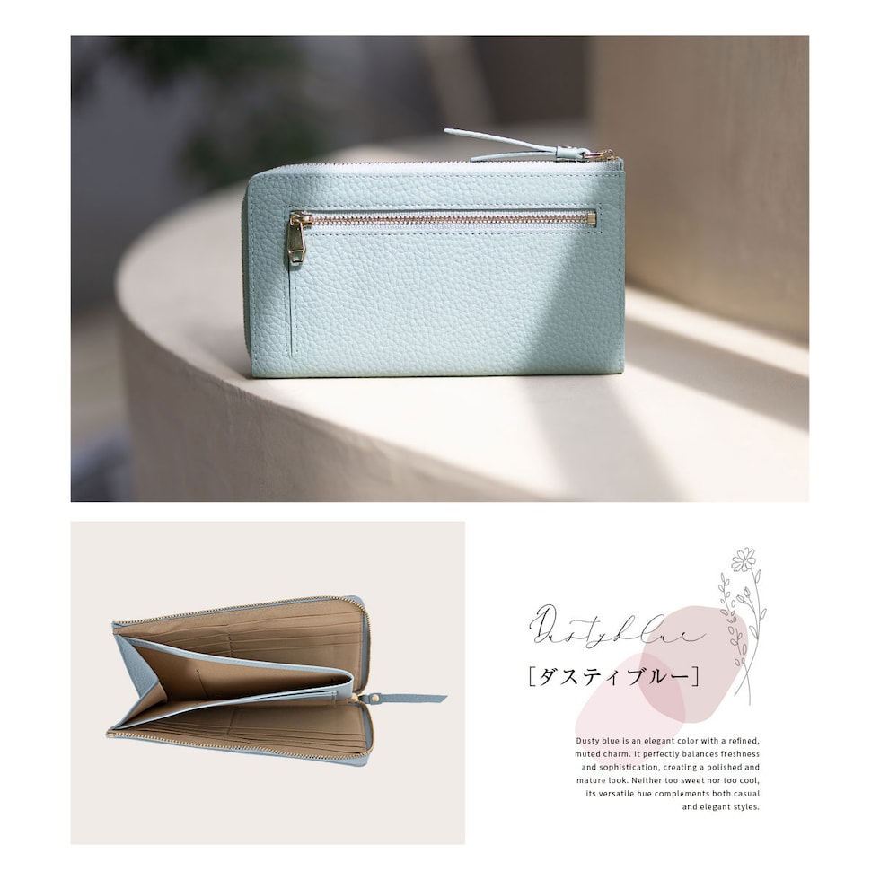 RafiCaro 軽くて小さな本革長財布 L字ファスナー 通帳も入る大容量 dustyblue/ダスティブルー