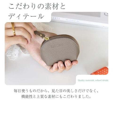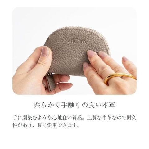 RafiCaro 本革ミニポーチ やわらかシボ革 ポーチ 小銭入れ greige/グレージュ