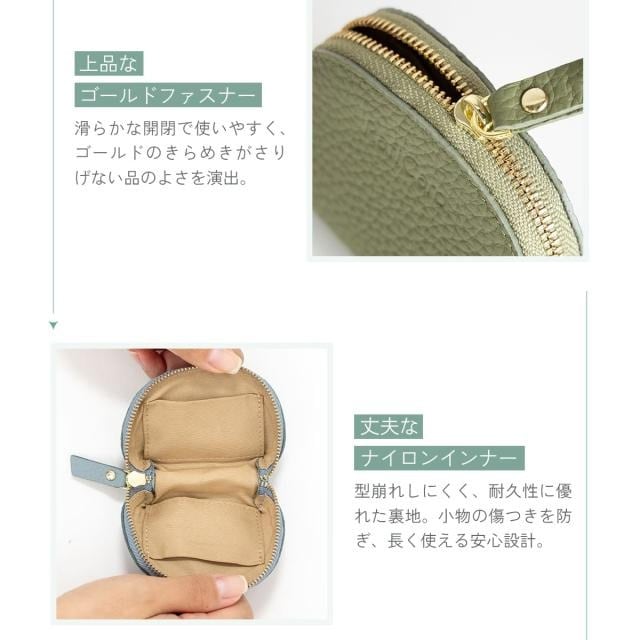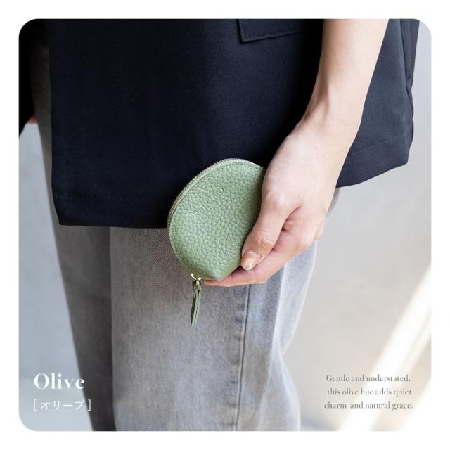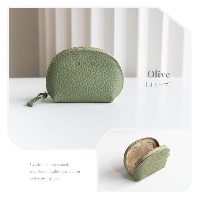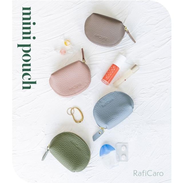 RafiCaro 本革ミニポーチ やわらかシボ革 ポーチ 小銭入れ olive/オリーブ