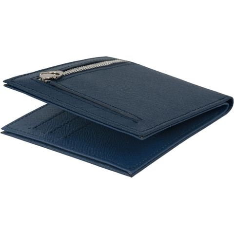 Dom Teporna 薄さにこだわる牛革二つ折り財布 カード収納10枚 メンズ 牛革 サフィアーノレザー お札入れ 小銭入れ カード入れ 薄型 財布 YKKファスナー navy/ネイビー