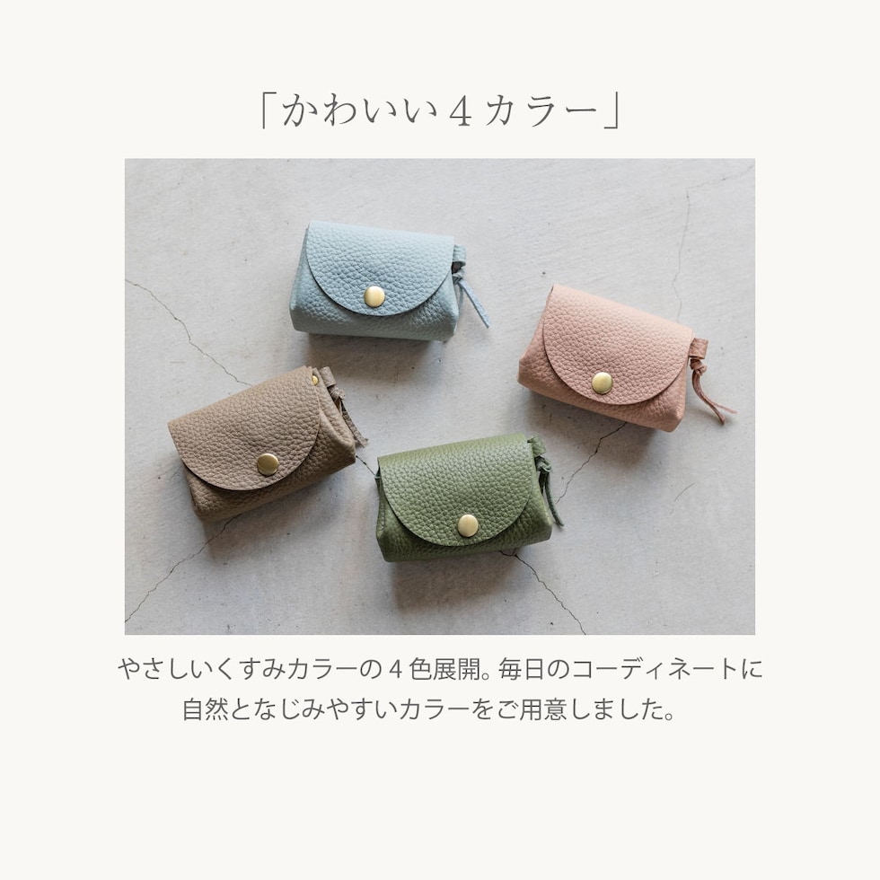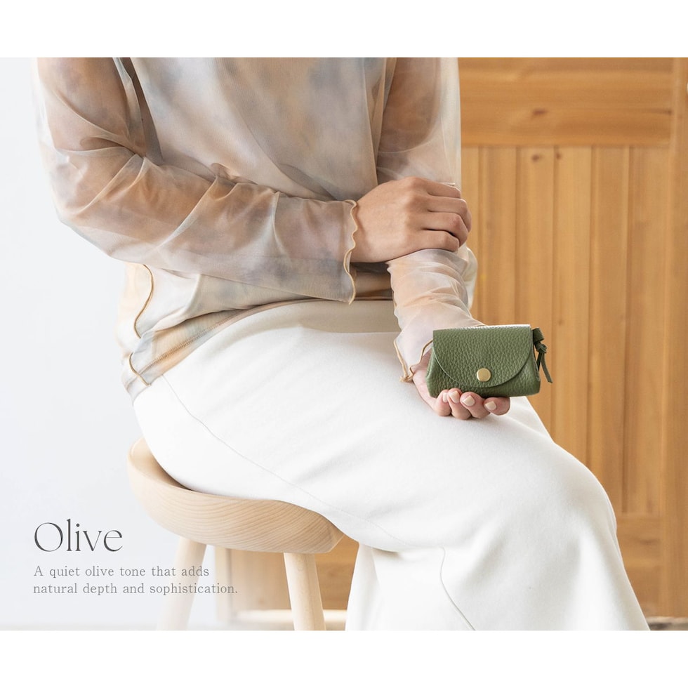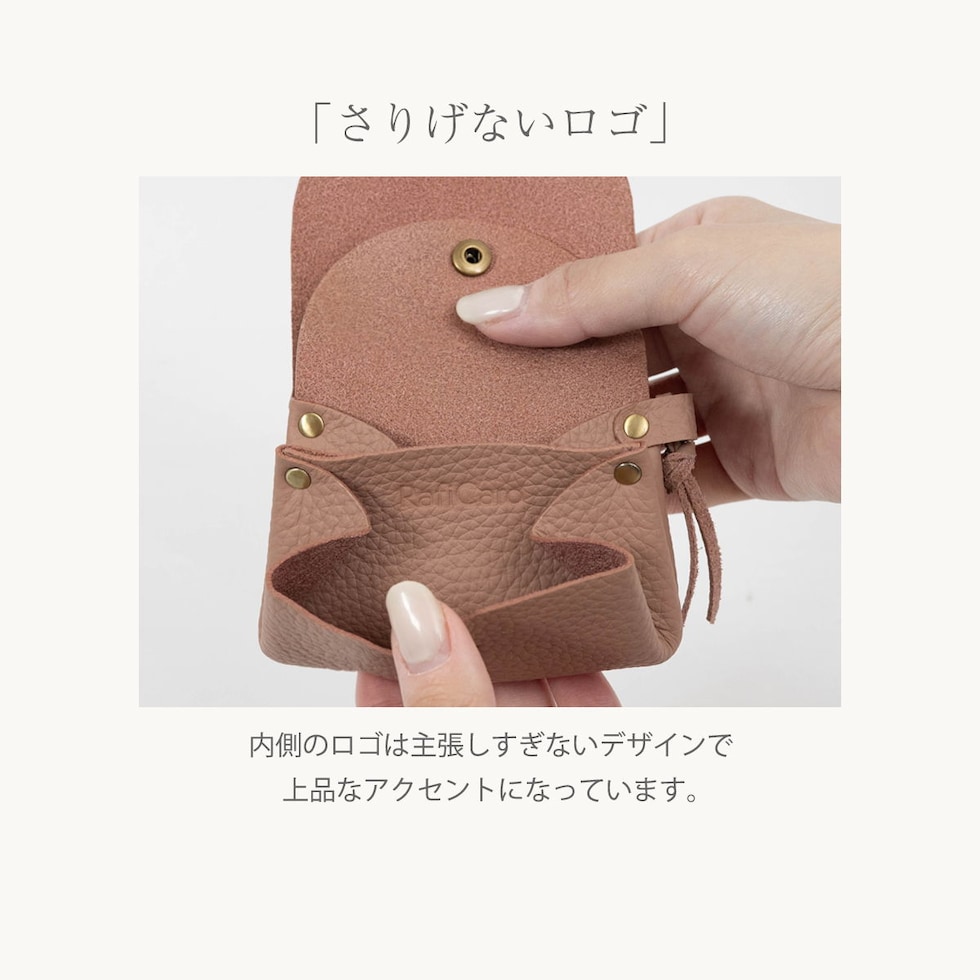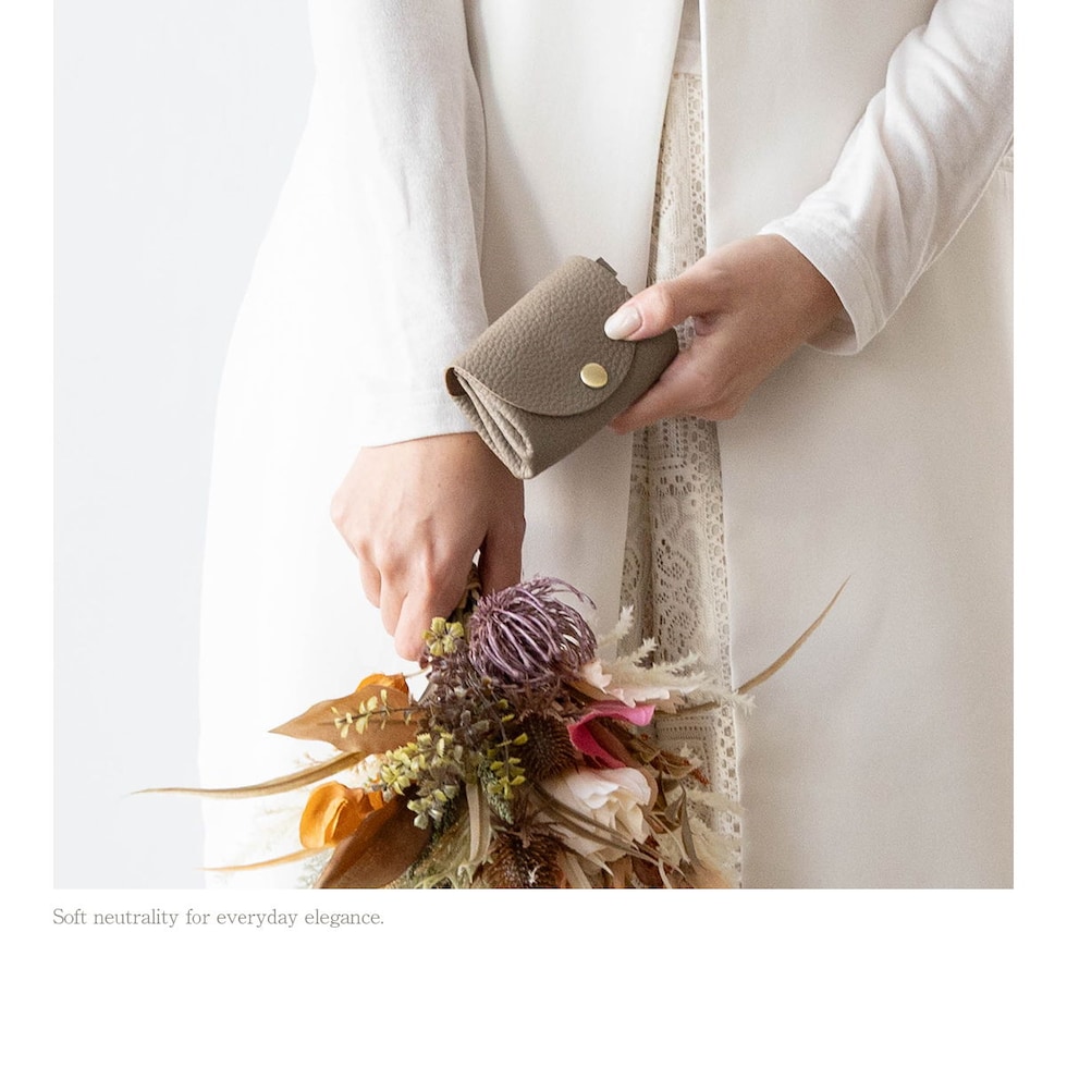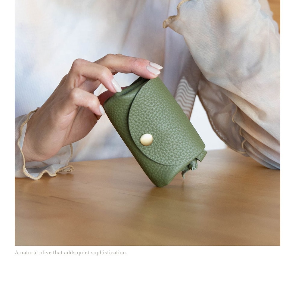 手のひらサイズがかわいいミニウォレットです。毎日持ち歩いてほしいから、きちんと感のある上質な本革を使用しました。柔らかく手に馴染む使い心地です。
