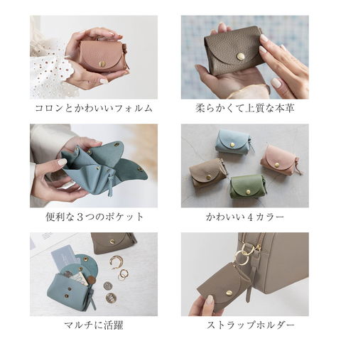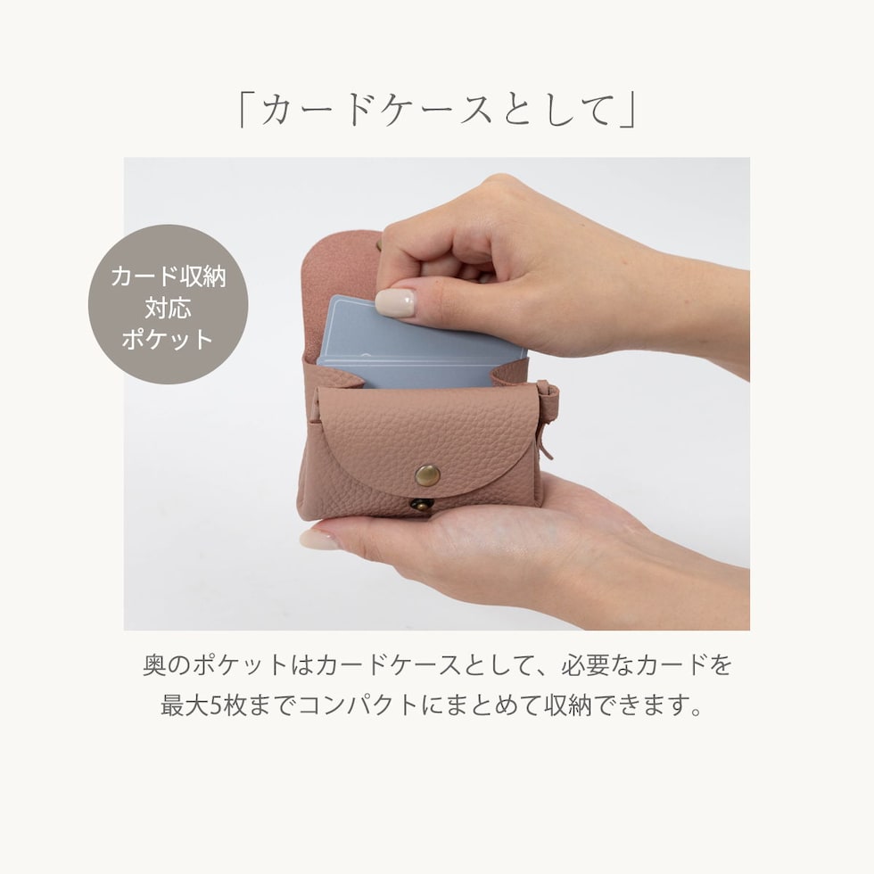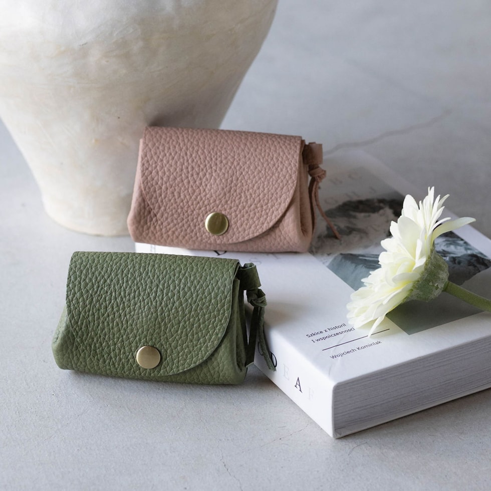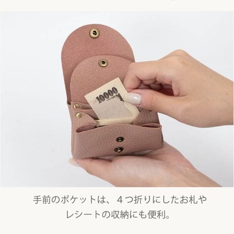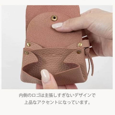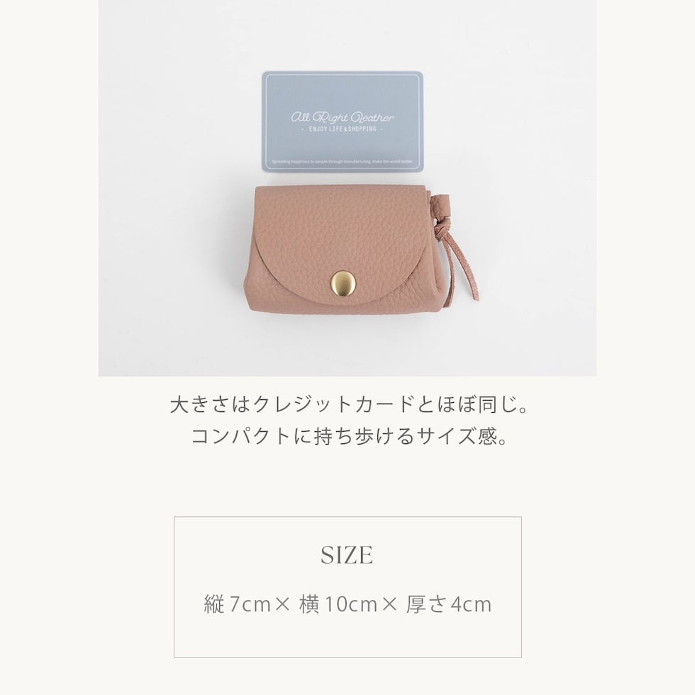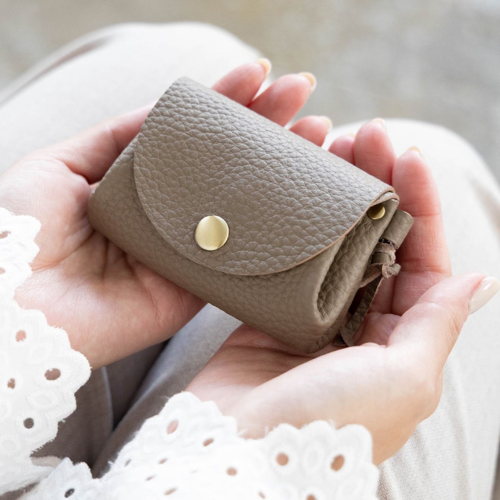 手のひらサイズがかわいいミニウォレットです。毎日持ち歩いてほしいから、きちんと感のある上質な本革を使用しました。柔らかく手に馴染む使い心地です。