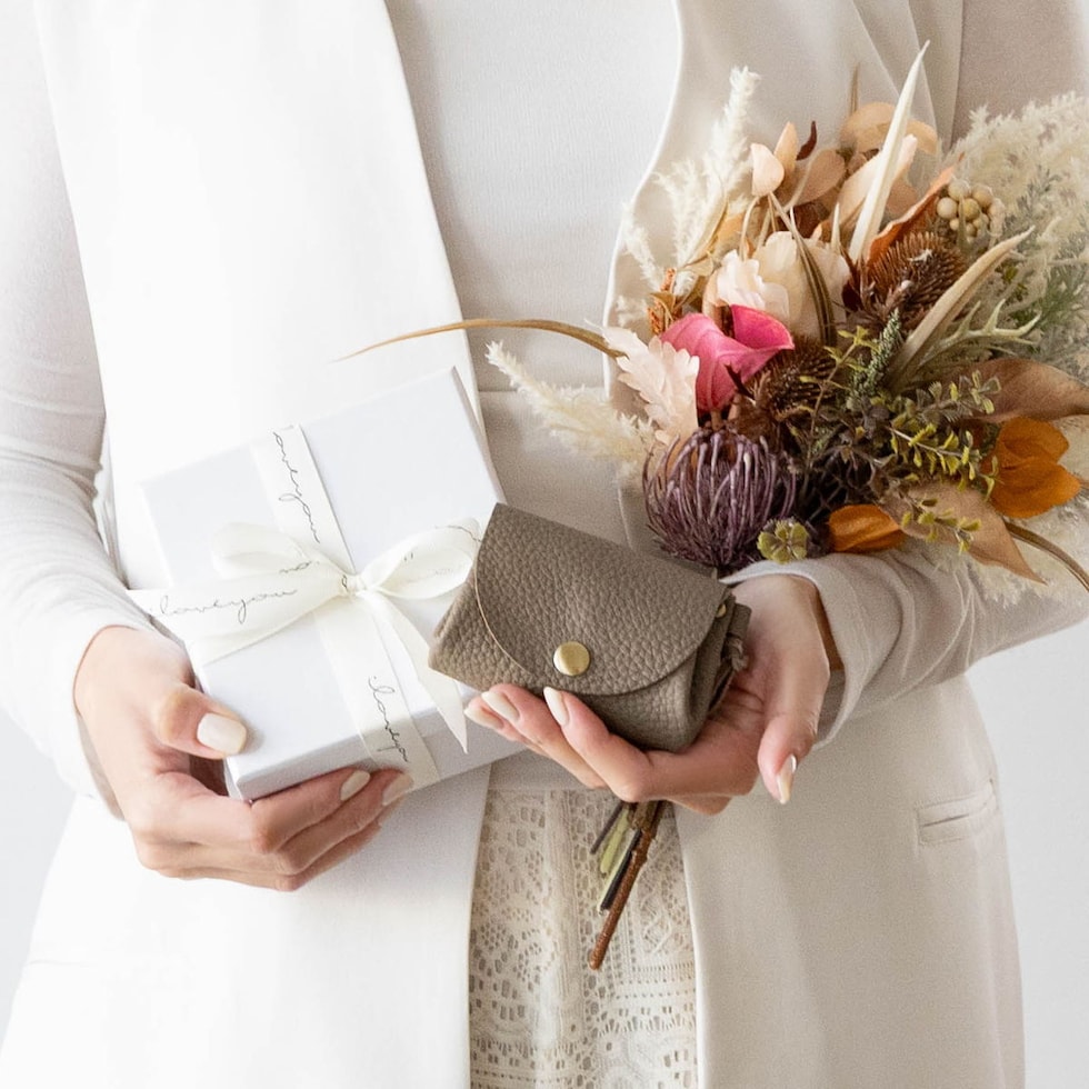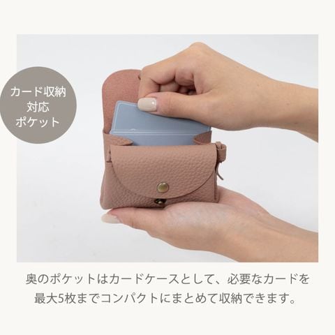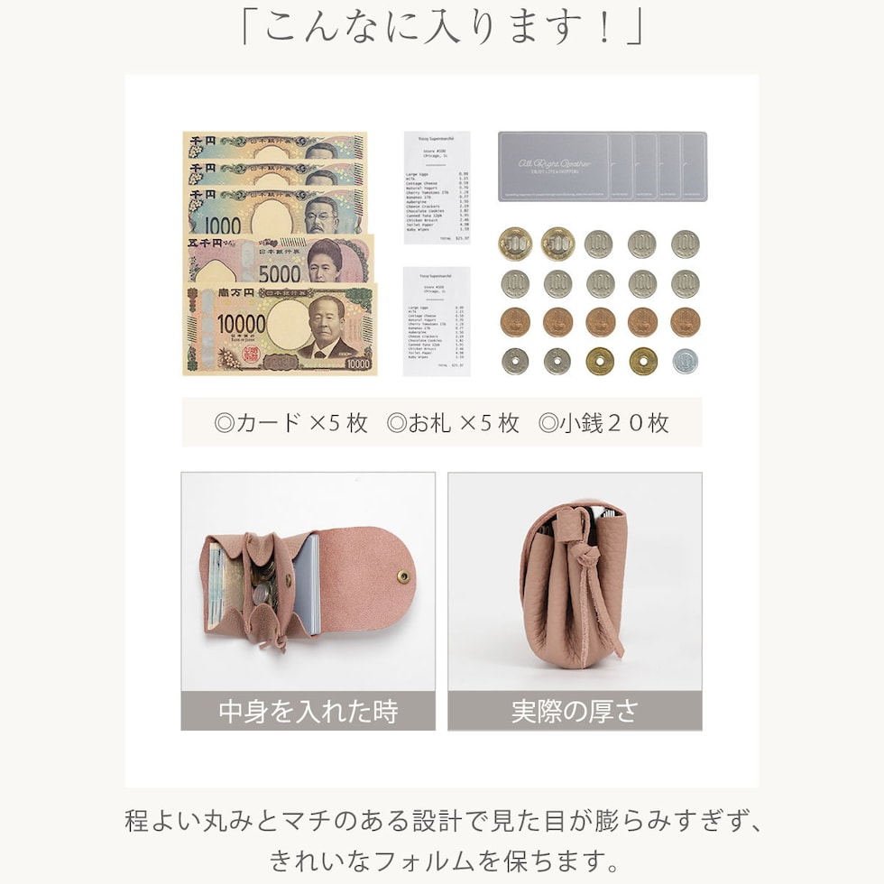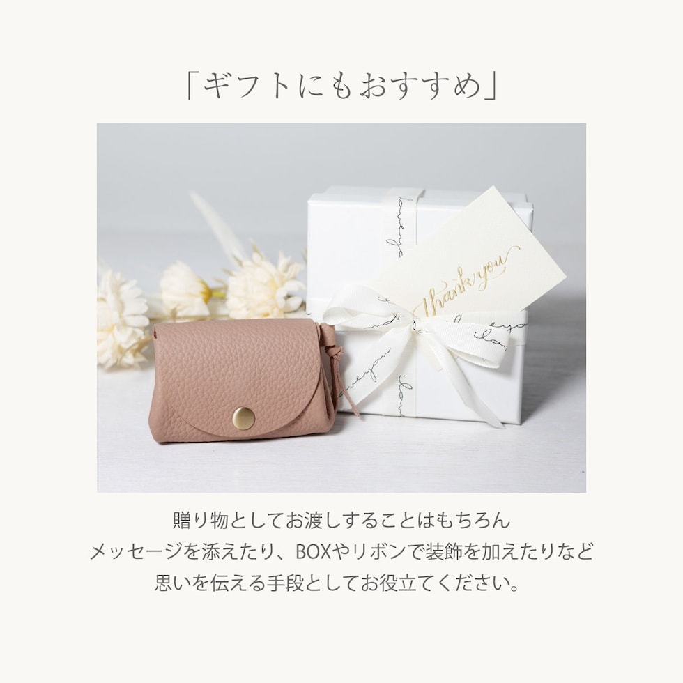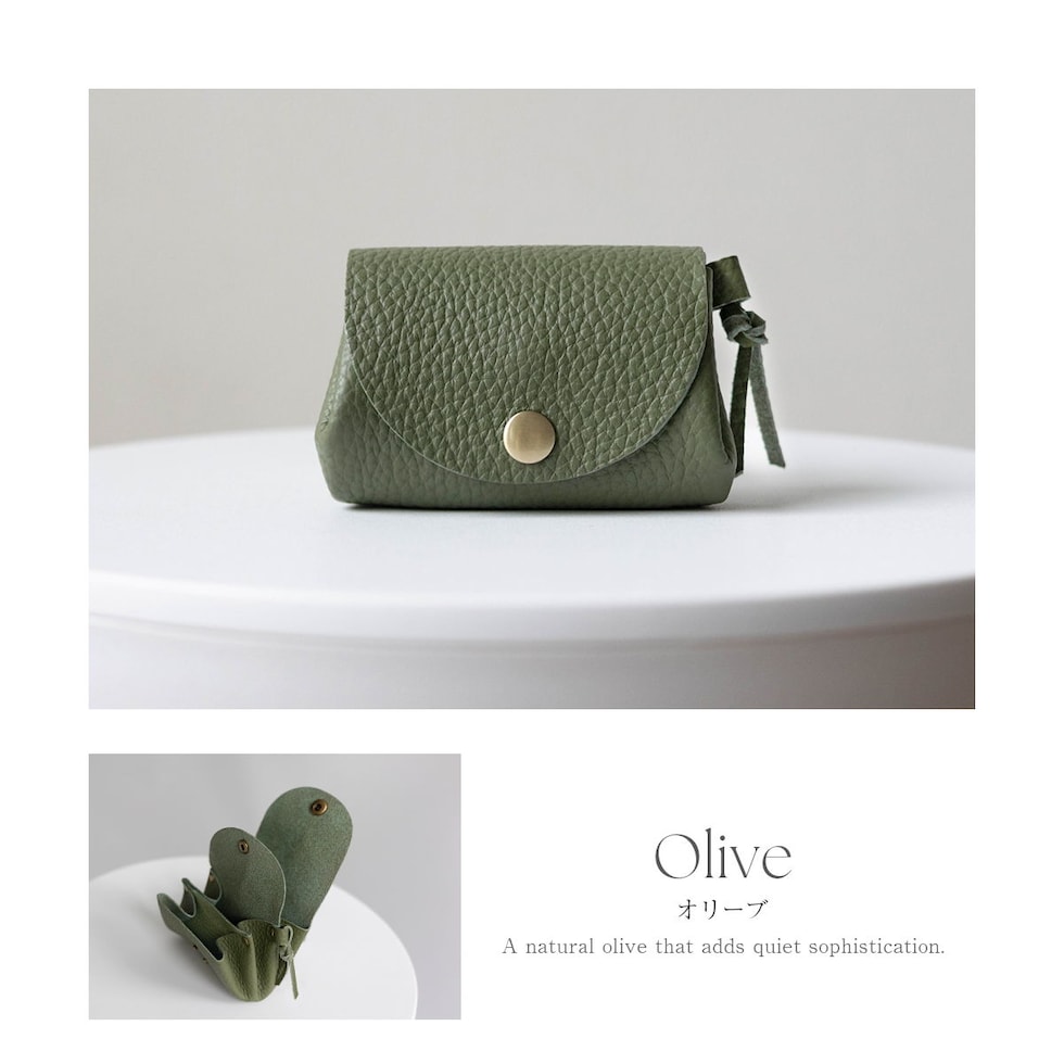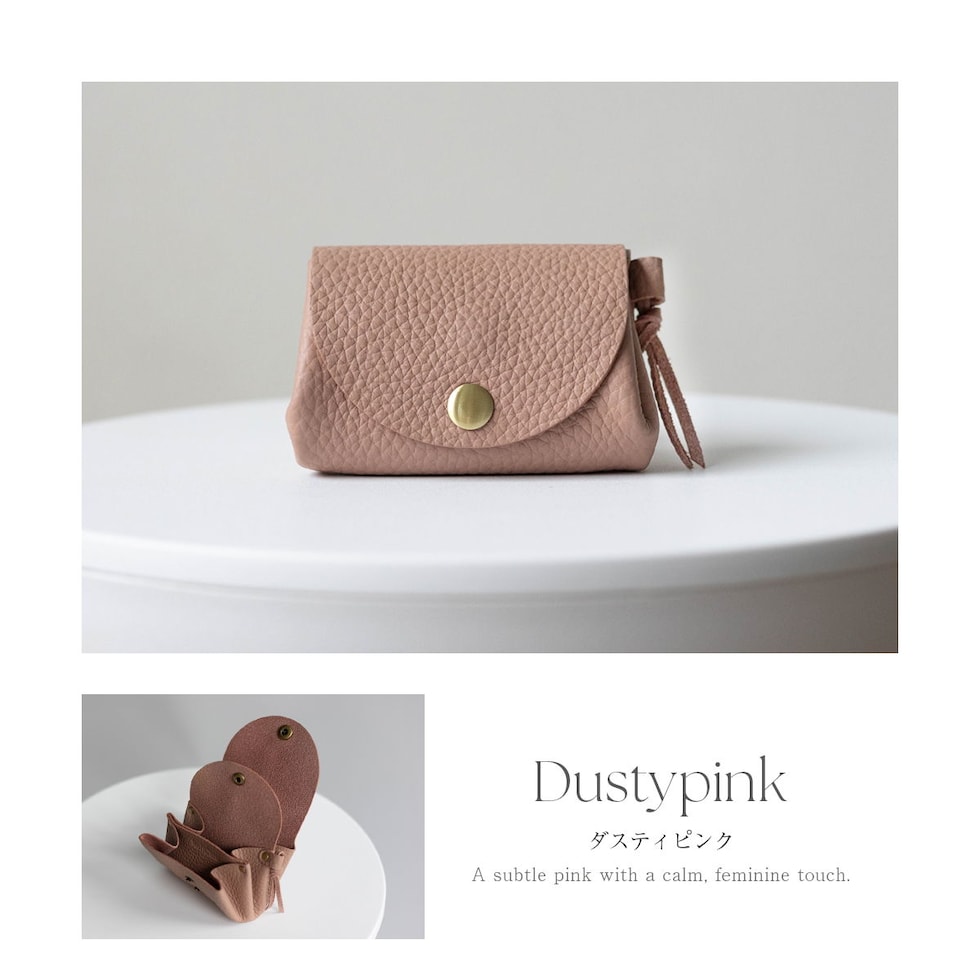 手のひらサイズがかわいいミニウォレットです。毎日持ち歩いてほしいから、きちんと感のある上質な本革を使用しました。柔らかく手に馴染む使い心地です。