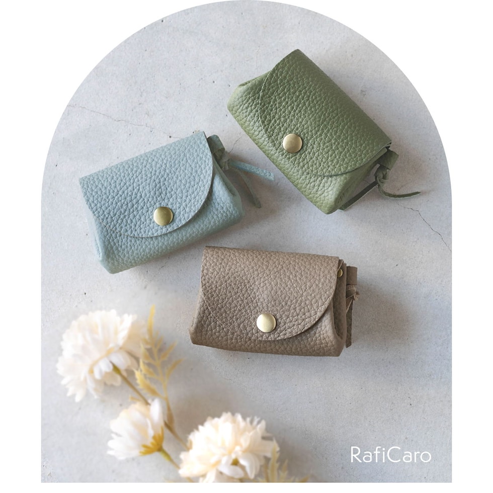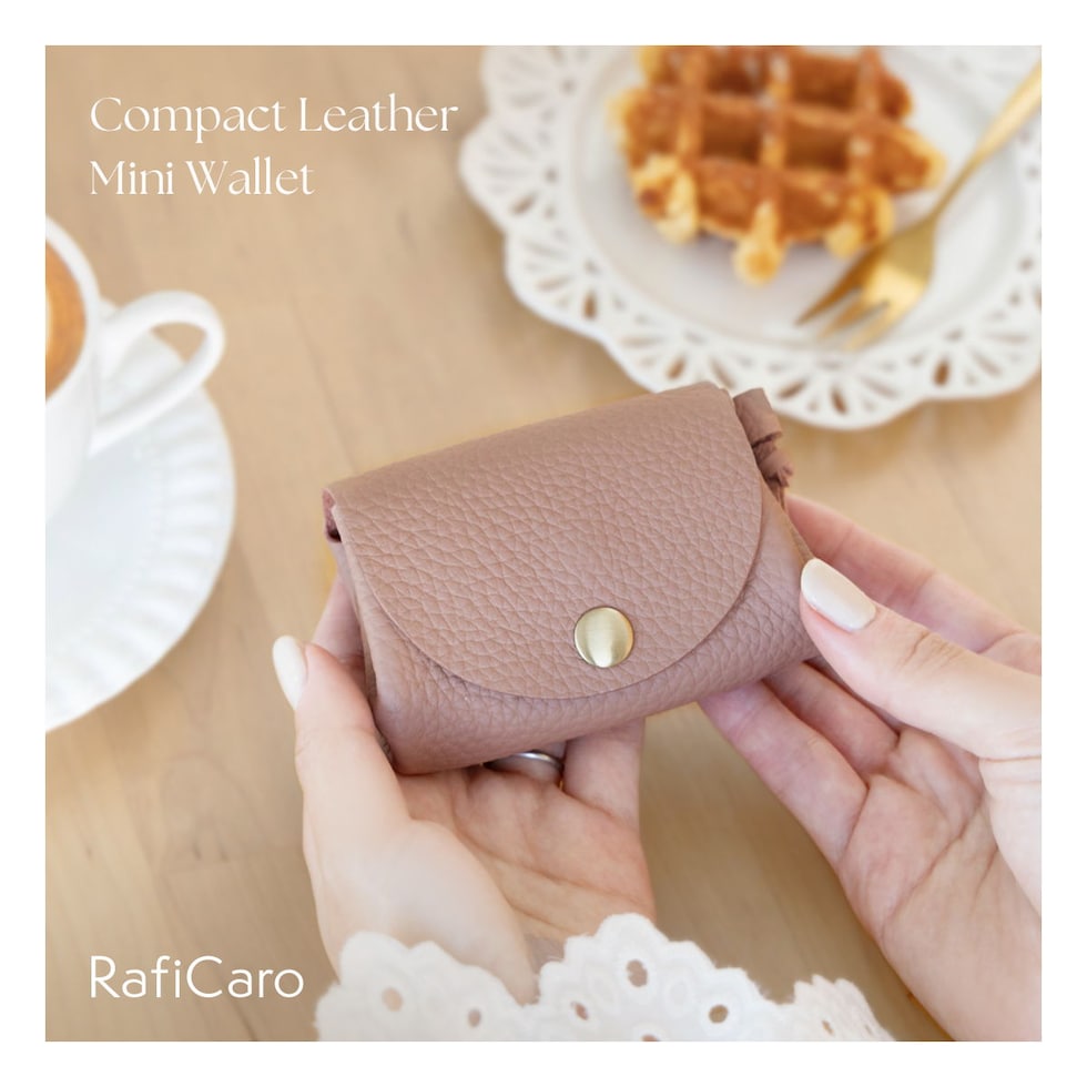 【限定SALE!2,001円】RafiCaro やわらかレザーの本革ミニ財布 レディース 牛革 レザー 小銭入れ カードケース 小さい財布 コンパクト 財布 コインケース ボタン留め ポーチ greige/グレージュ