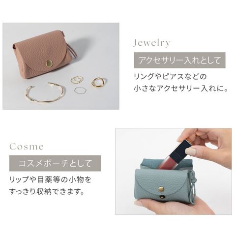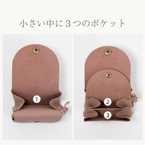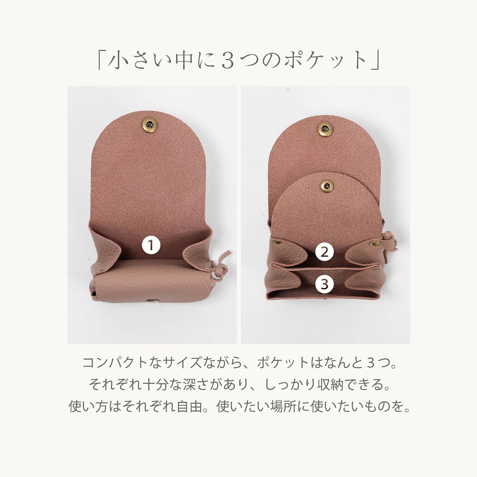 3つに分かれたポケットで整理整頓上手に。お財布としてはもちろん、アクセサリーポーチやガジェットポーチなど、幅広くお使いいただけます。