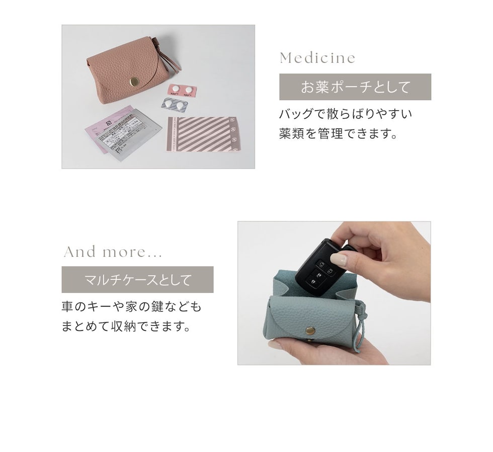 3つに分かれたポケットで整理整頓上手に。お財布としてはもちろん、アクセサリーポーチやガジェットポーチなど、幅広くお使いいただけます。[スペック]