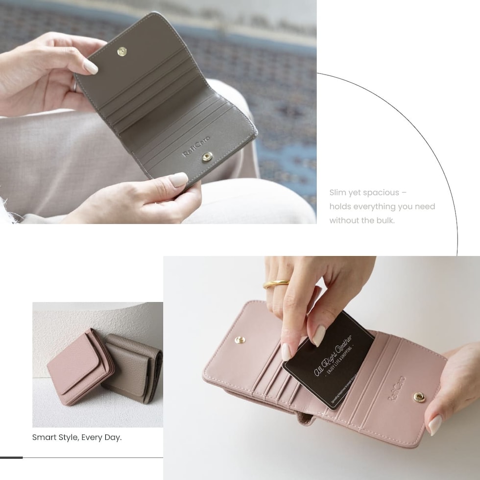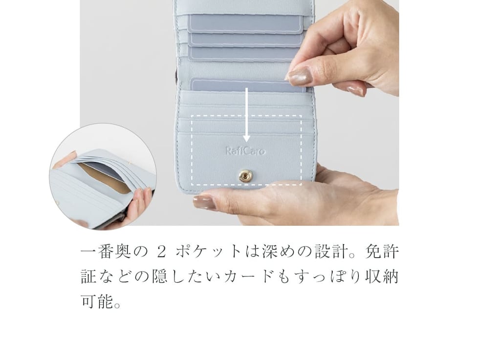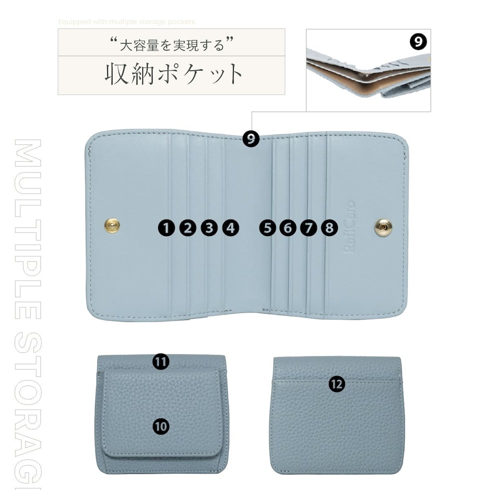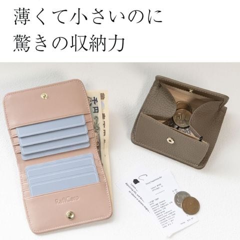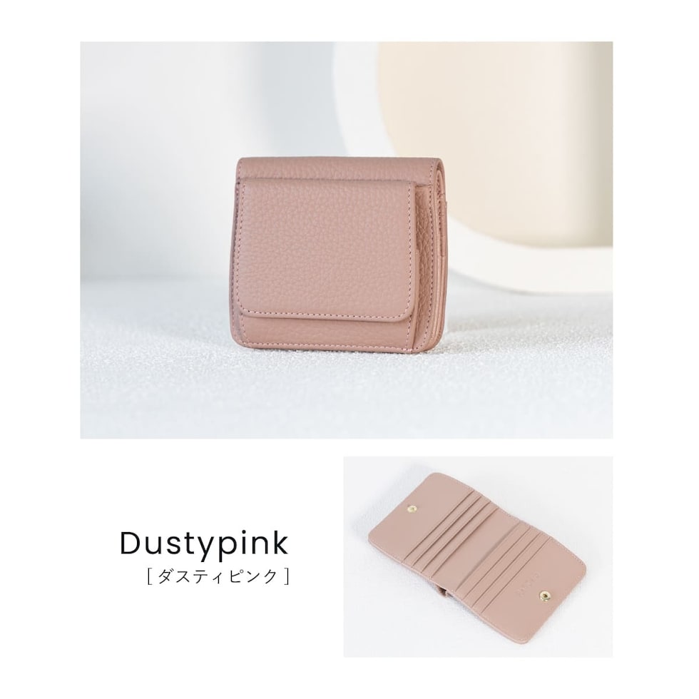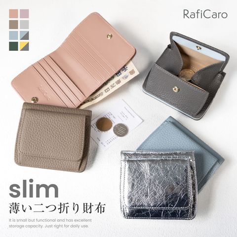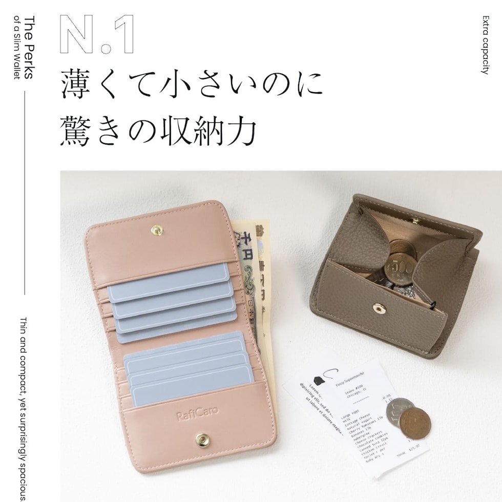 【50%OFFクーポン2,700円!】RafiCaro 本革二つ折り財布 レディース 充実のカード収納 取り出しやすい小銭入れ ミニ財布 コンパクト 小さい財布 折りたたみ 軽量 軽い カード入れ dustypink/ダスティピンク