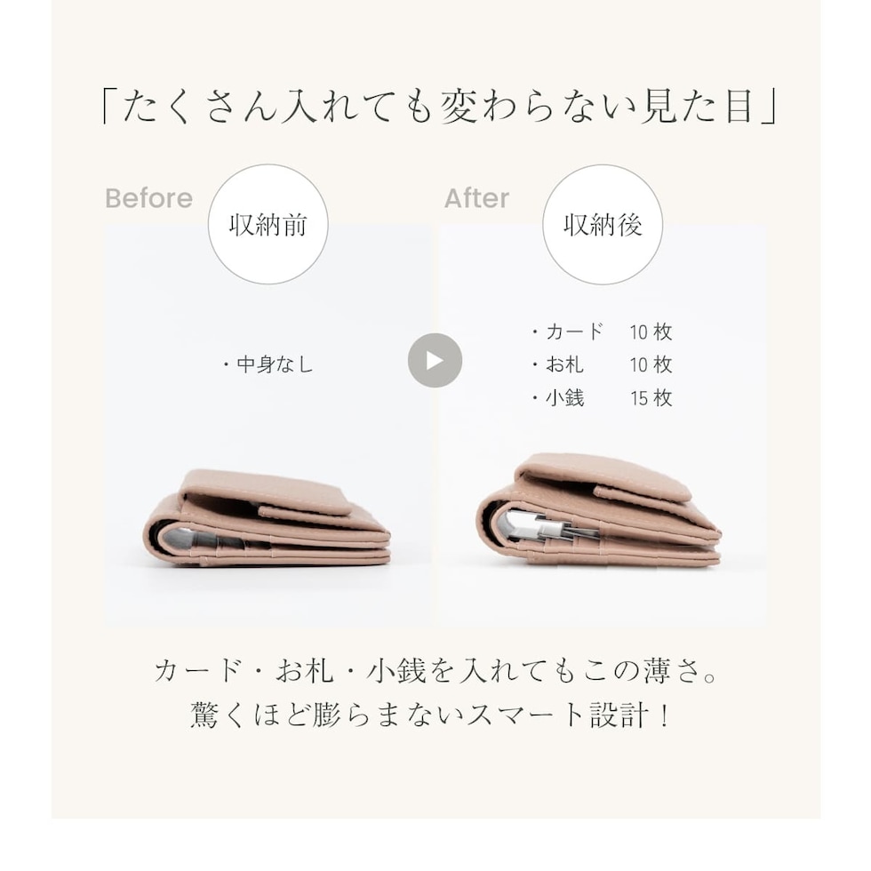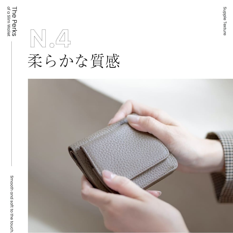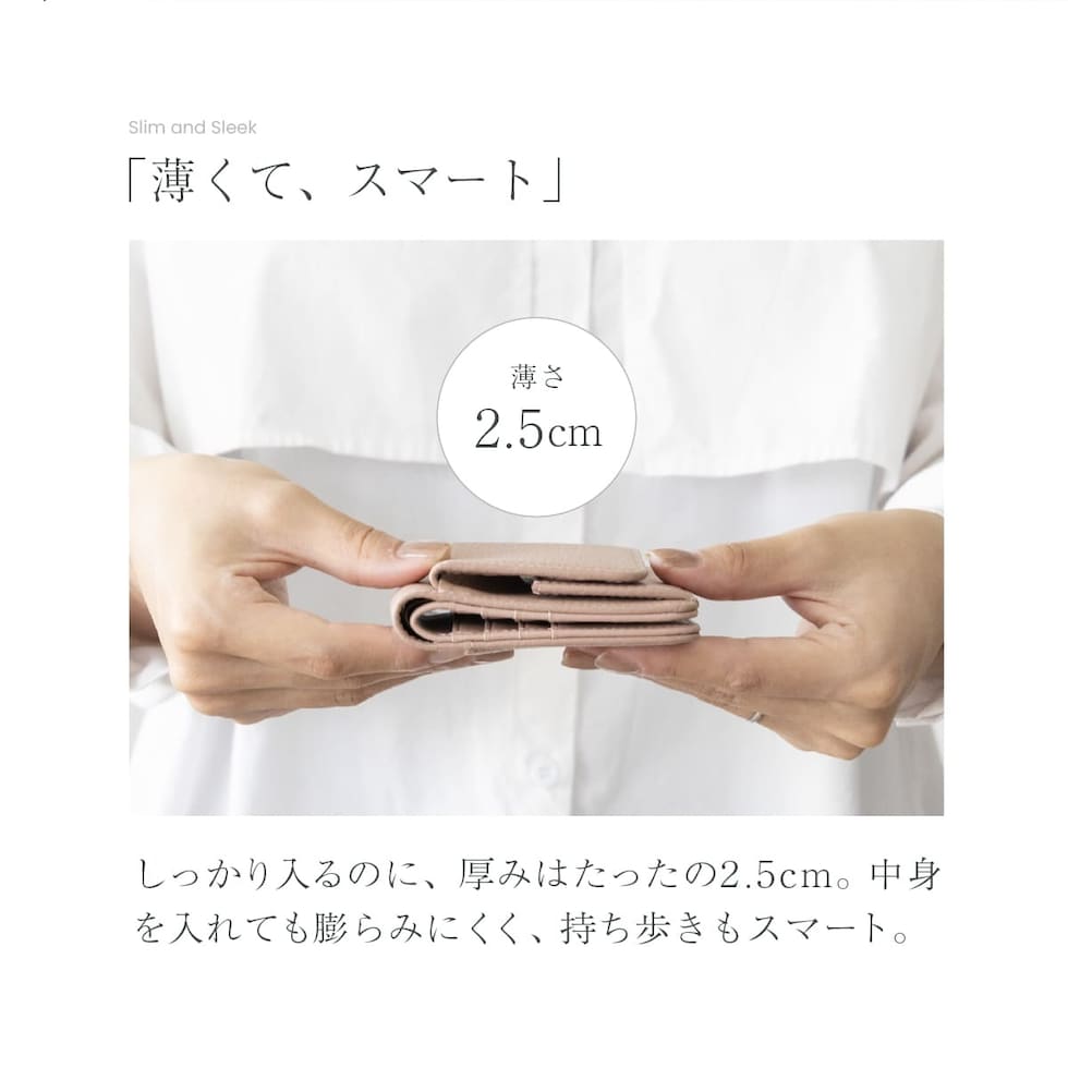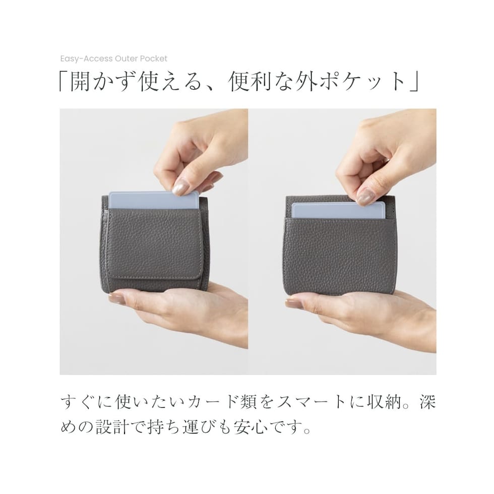 柔らかな曲線が品のある雰囲気を演出するミニ財布です。手に馴染み小さめバッグにも収まる絶妙なサイズ感。表地には上質な牛本革を使用し、高級感と大人可愛いを叶えるアイテムです。