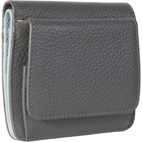 【50%OFFクーポン2,700円!】RafiCaro 本革二つ折り財布 レディース 充実のカード収納 取り出しやすい小銭入れ ミニ財布 コンパクト 小さい財布 折りたたみ 軽量 軽い カード入れ greyblue/グレー×ブルー