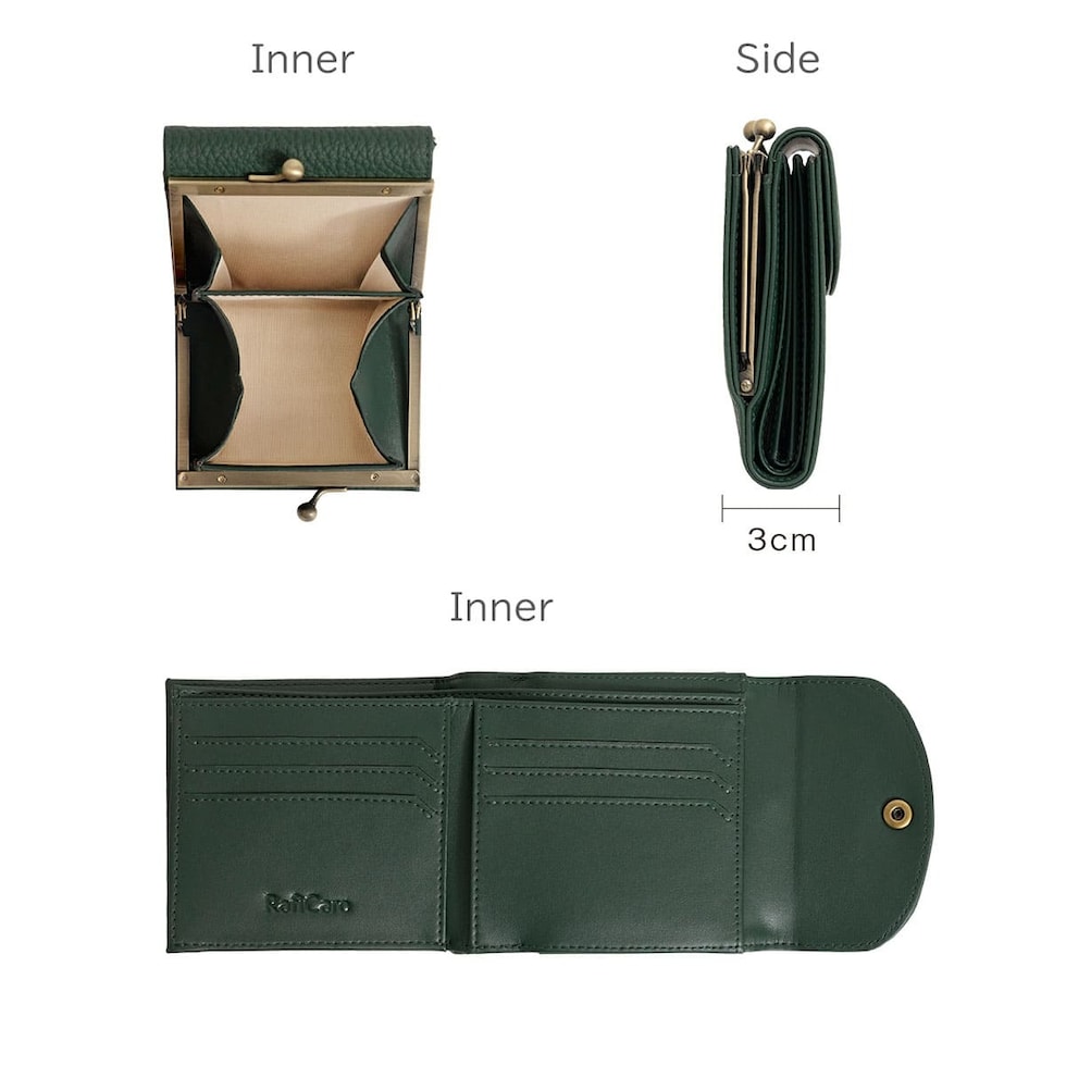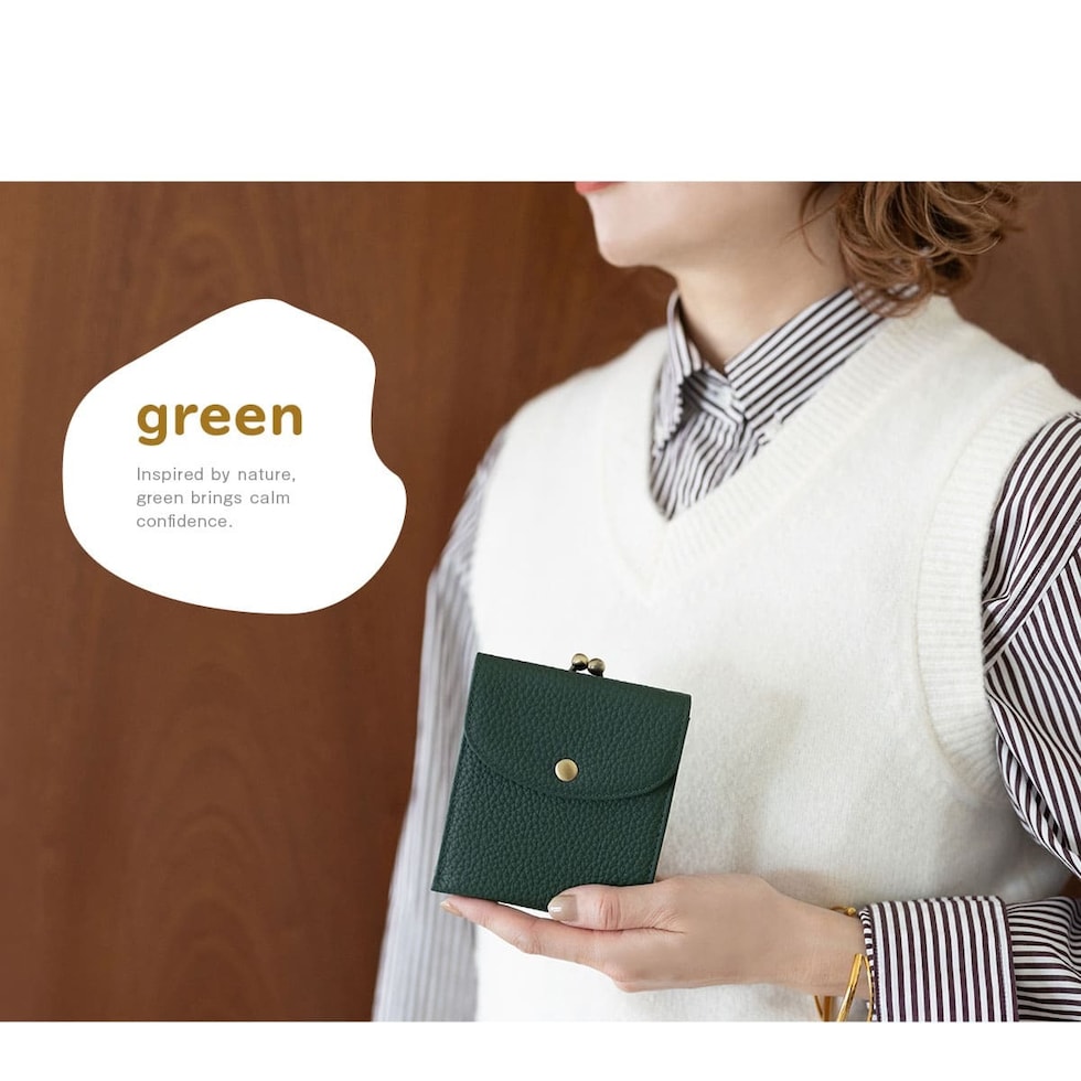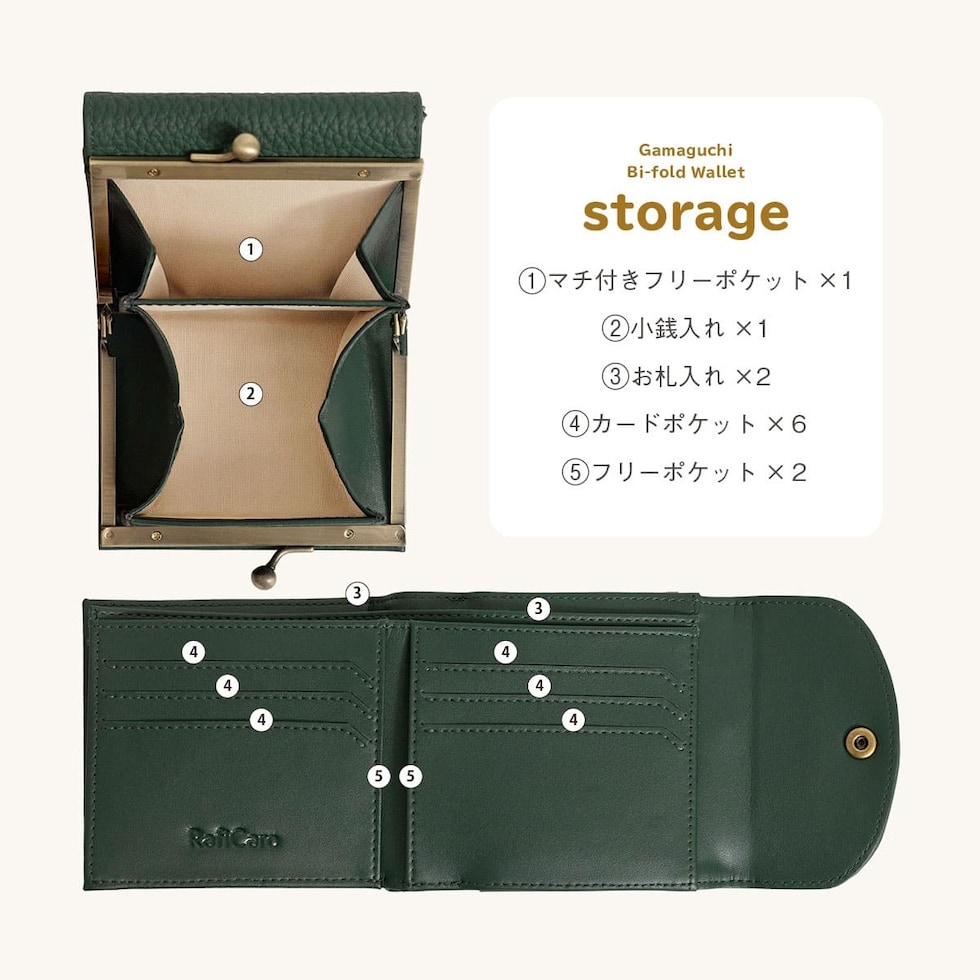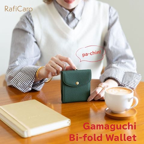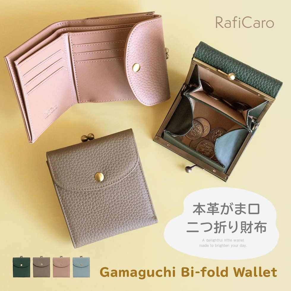 【限定50%OFFクーポン】【7,600円→3,800円】RafiCaro がま口 本革二つ折り財布 レディース 仕切りの多いミニ財布 レザー がまぐち小銭入れ 大容量 コンパクト 小さい green/グリーン
