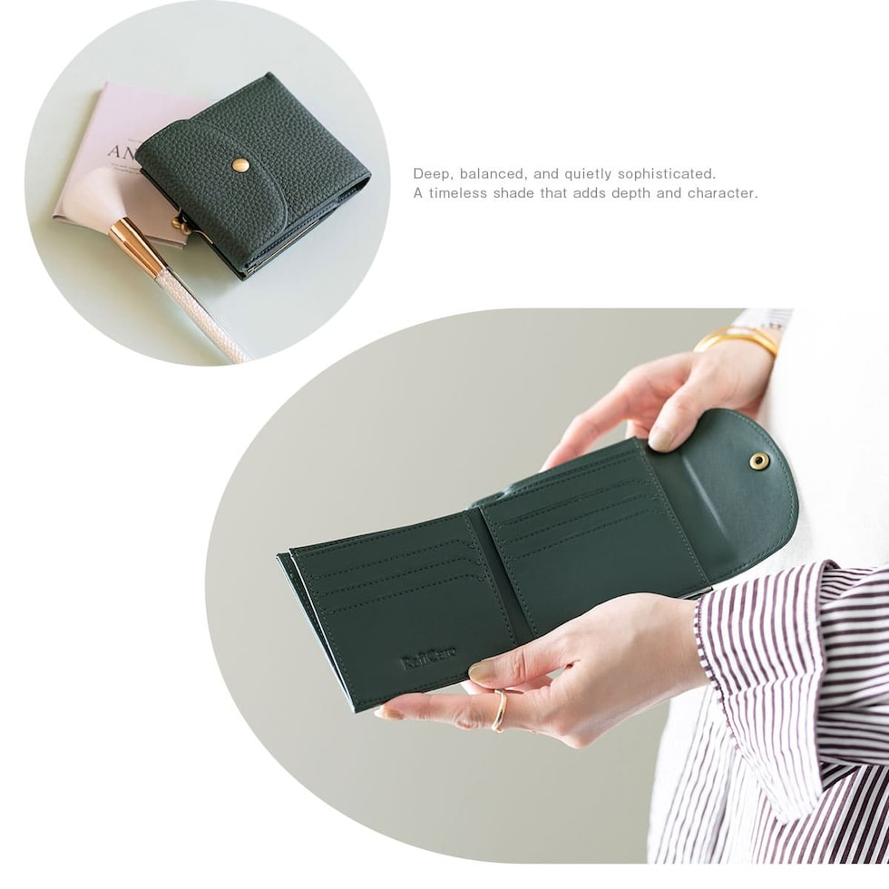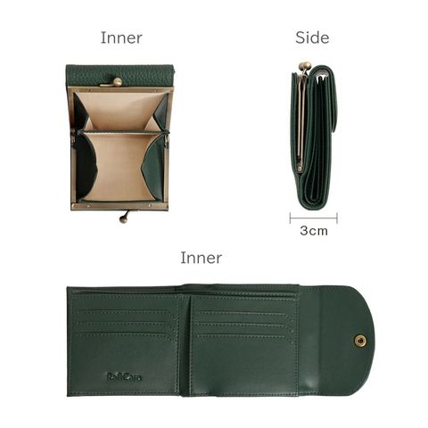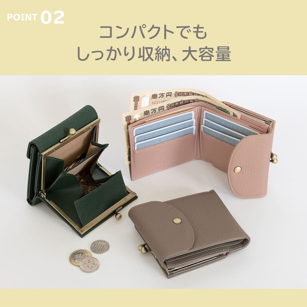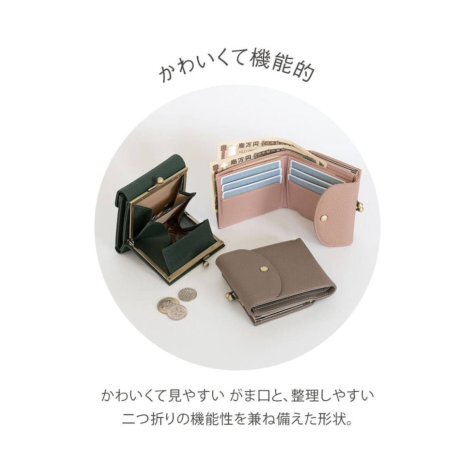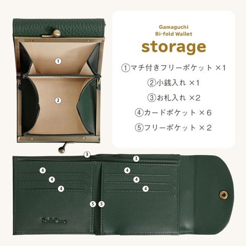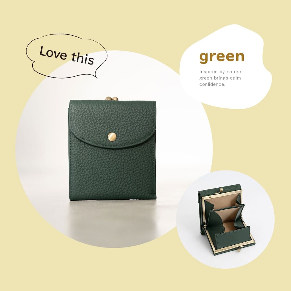 【限定50%OFFクーポン】【7,600円→3,800円】RafiCaro がま口 本革二つ折り財布 レディース 仕切りの多いミニ財布 レザー がまぐち小銭入れ 大容量 コンパクト 小さい green/グリーン