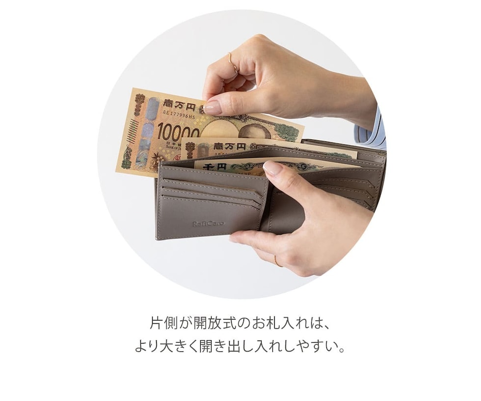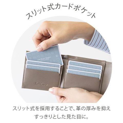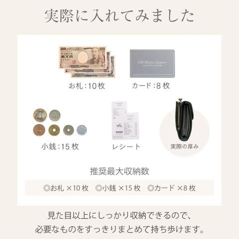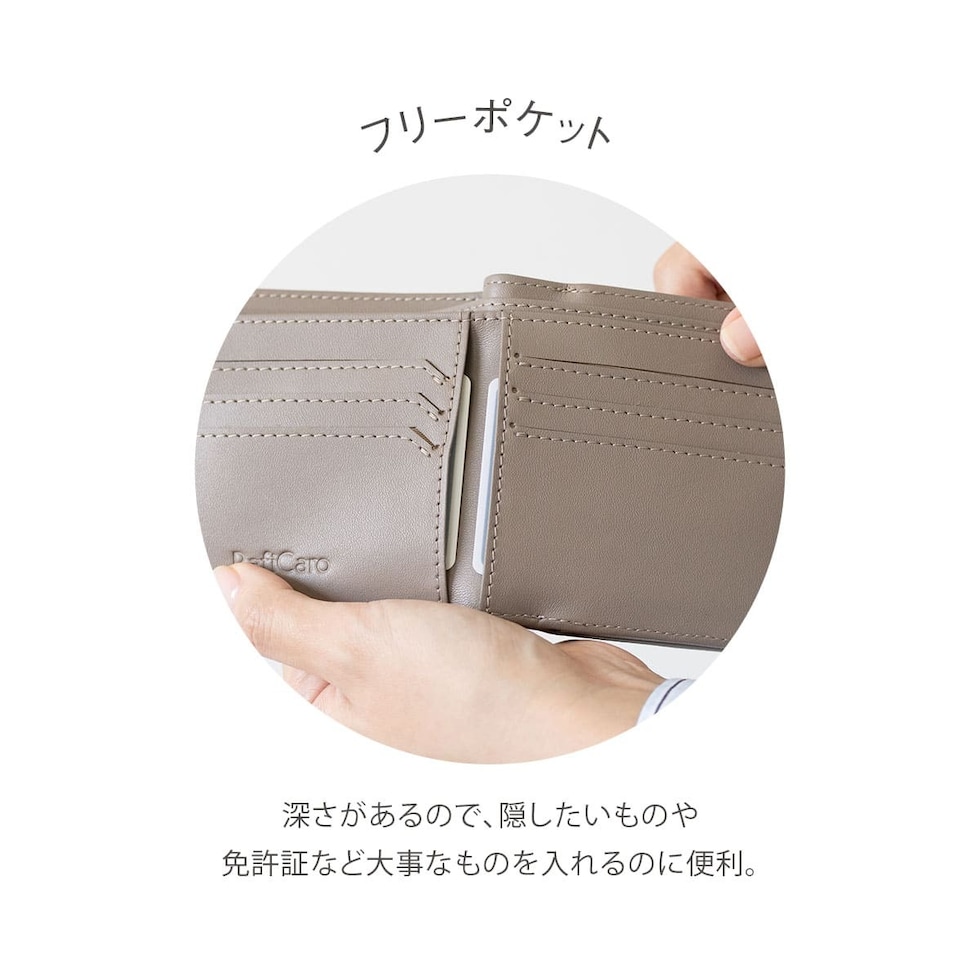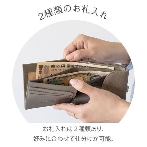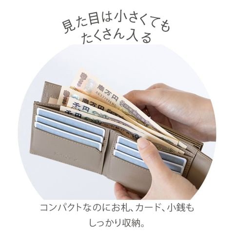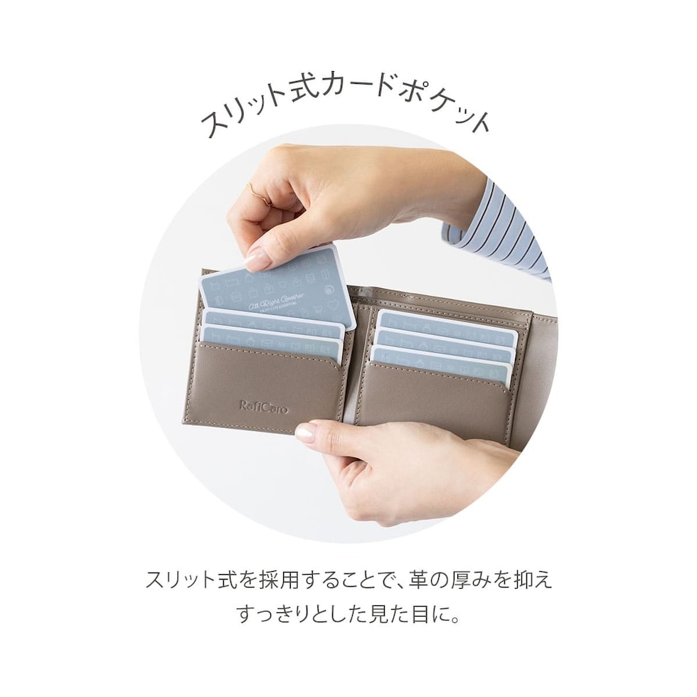 パチッと閉まる使い心地が魅力のがま口財布です。がま口を開いた内側はボックス型の小銭入れ。鍵などの小物収納に便利なマチポケット付き。フラップ側には6つのカードポケットとお札入れ、フリーポケットも付いて仕分けがラクラクです。