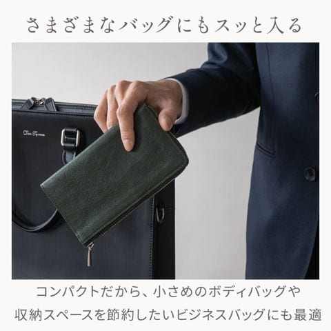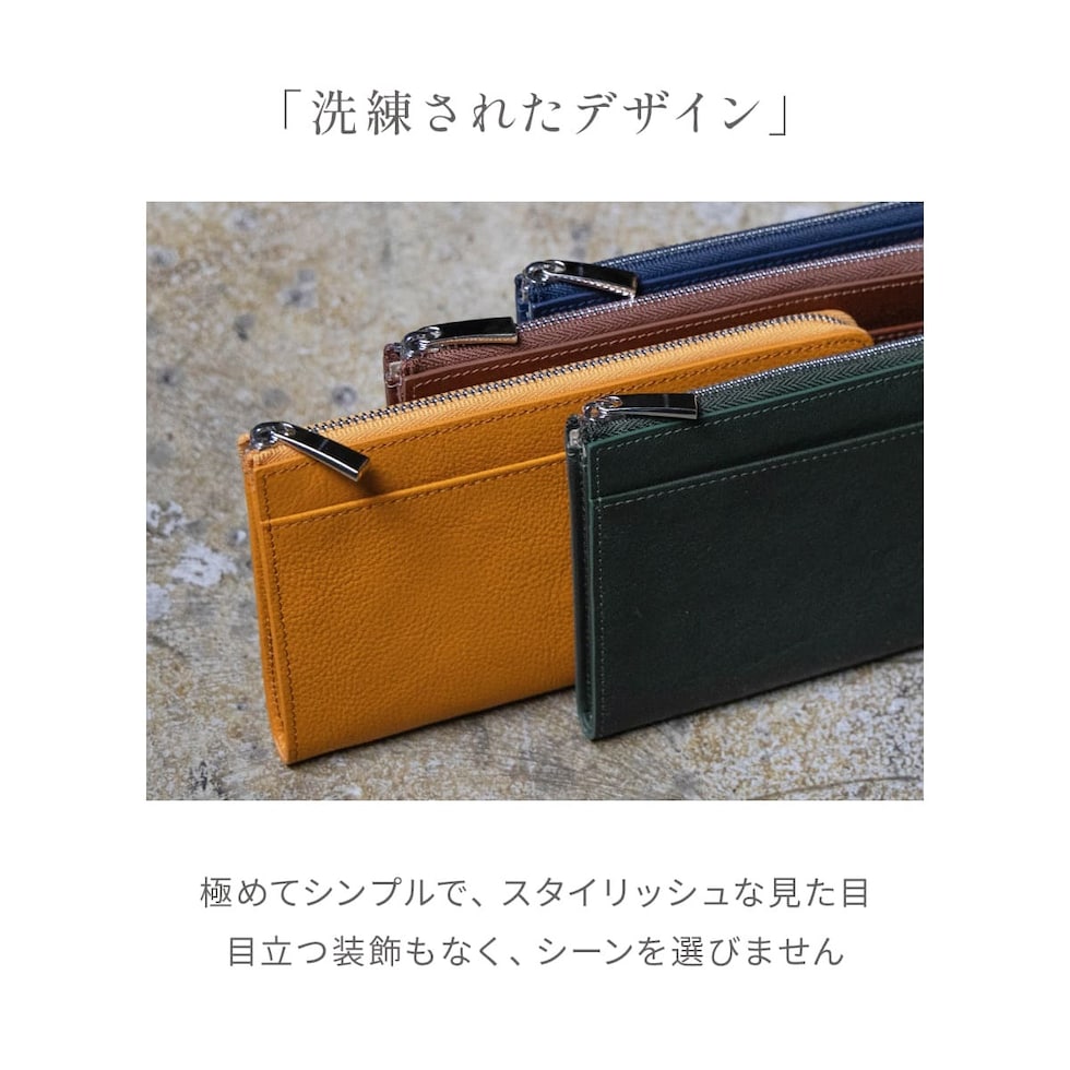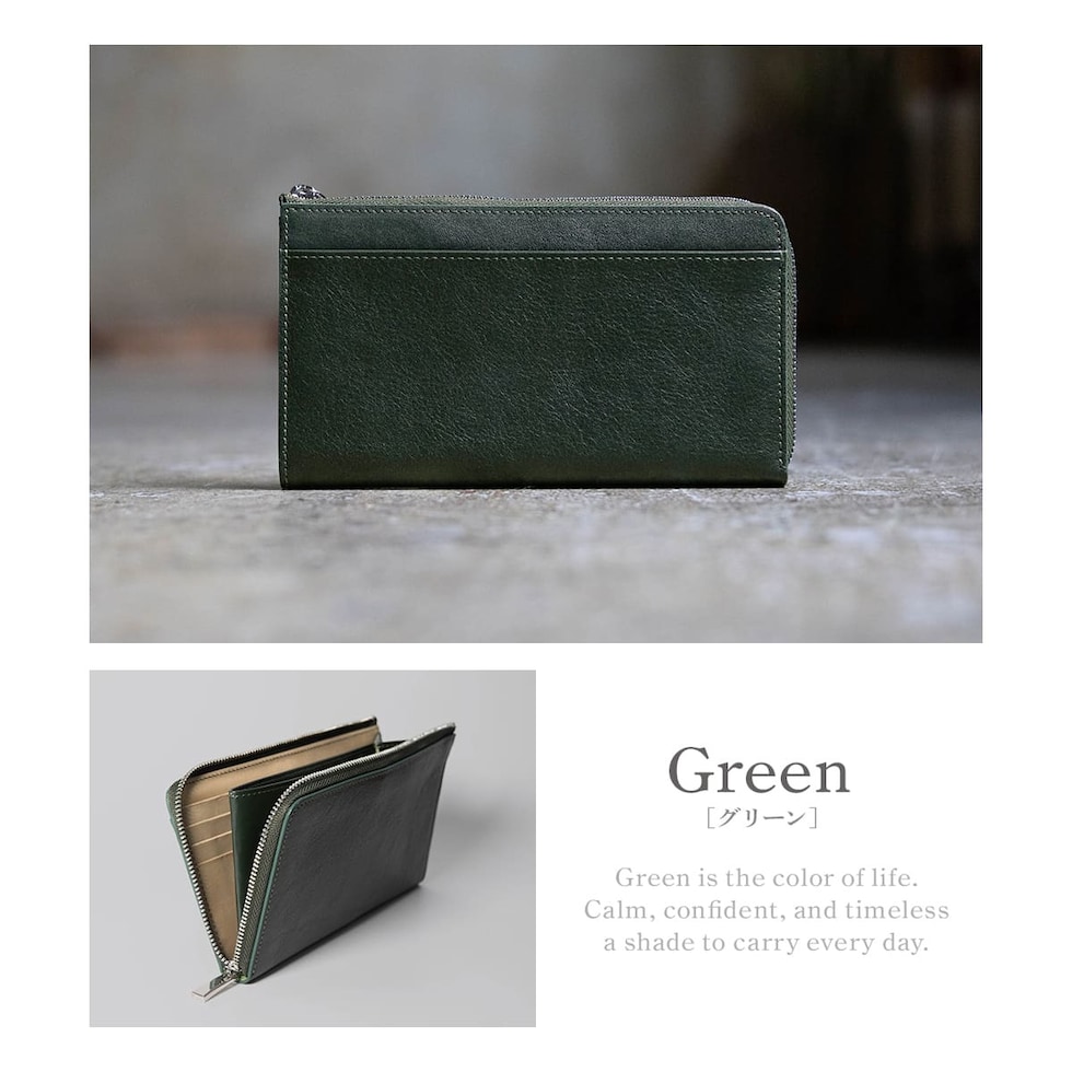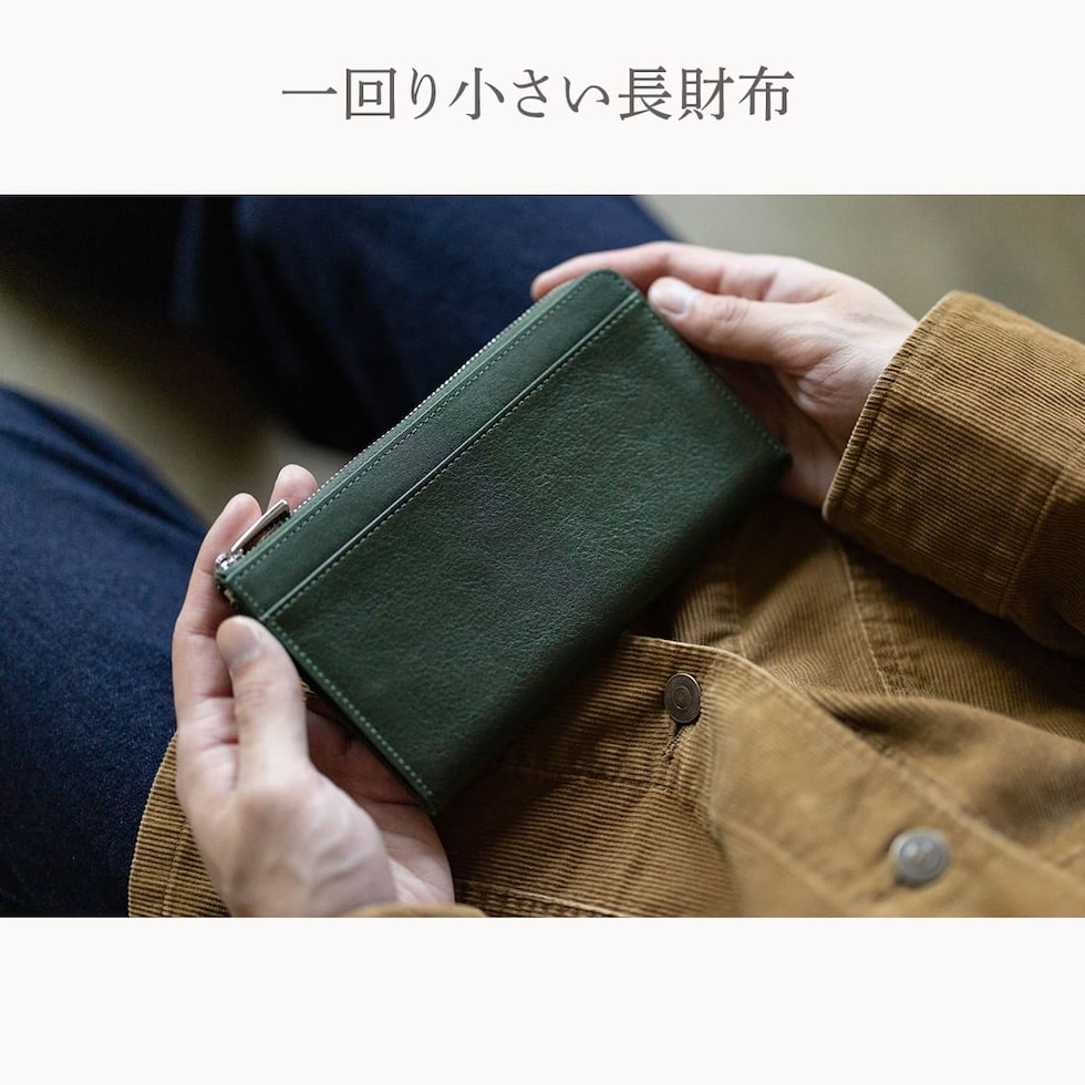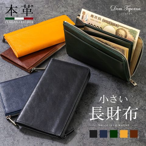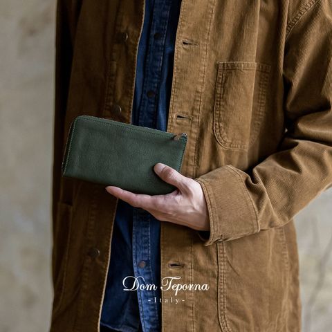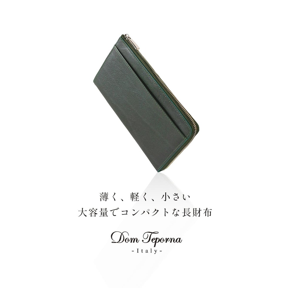 Dom Teporna Italy 小さい本革長財布 メンズ 大容量 L字ファスナー 長財布 薄型 イタリアンレザー 牛革 レザー 小銭入れ カード入れ 薄い スリム green/グリーン
