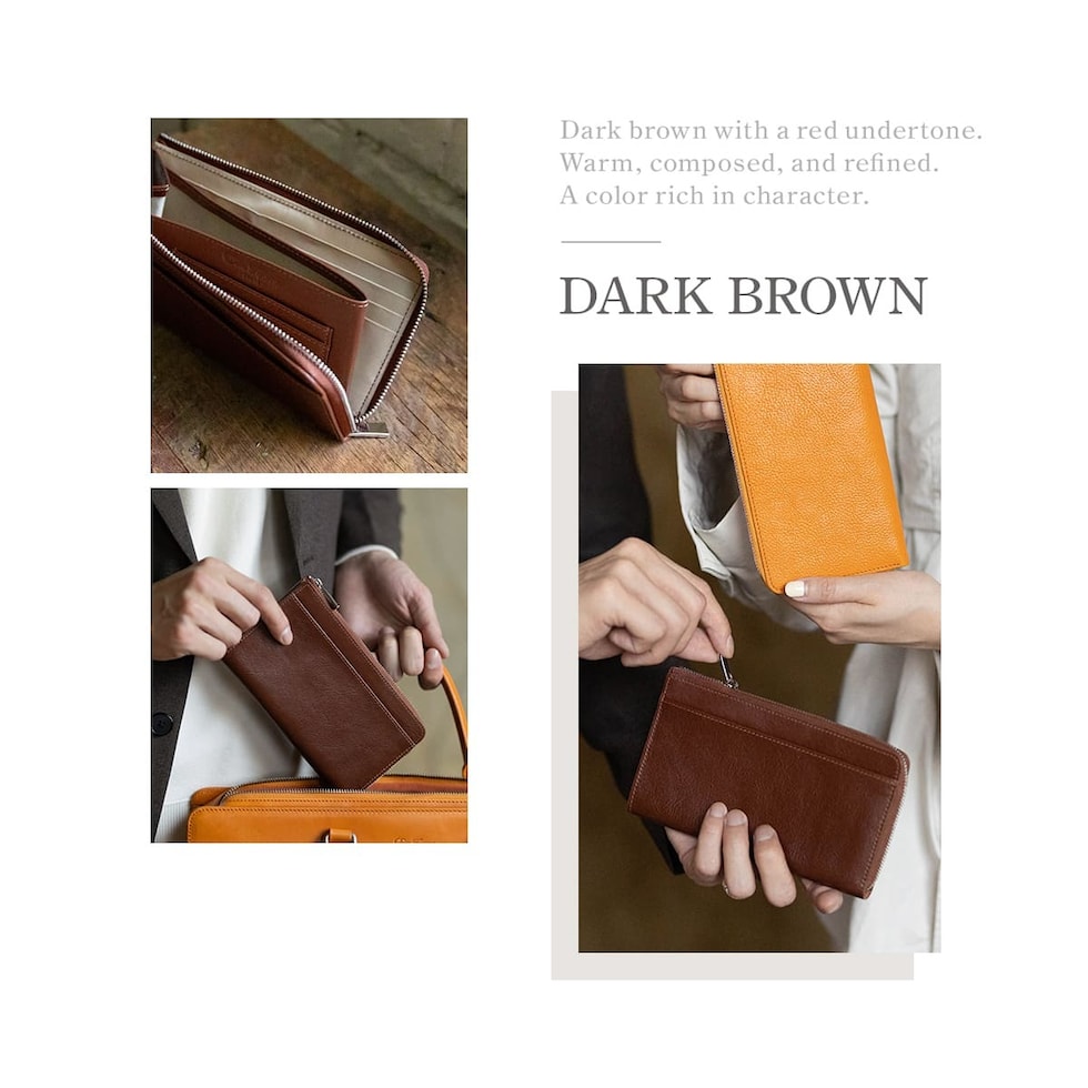表地には伝統的な製法で仕上げられた本革イタリアンレザーを使用しました。上質な手触りと、使うほどに艶と色味が深まるエイジングをお楽しみください。ファスナーは滑らかで耐久性に優れたYKK製です。