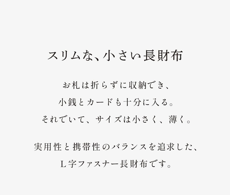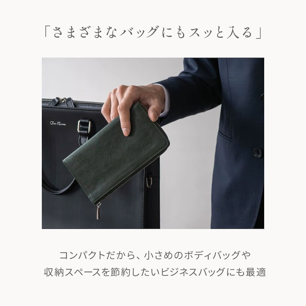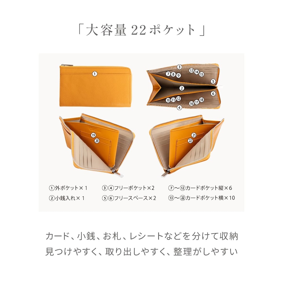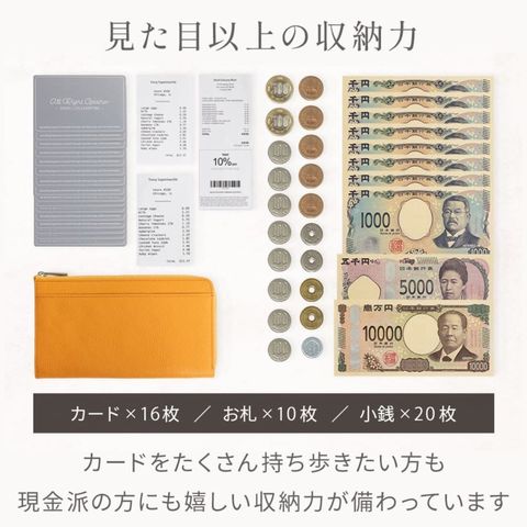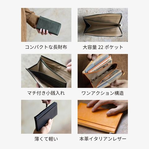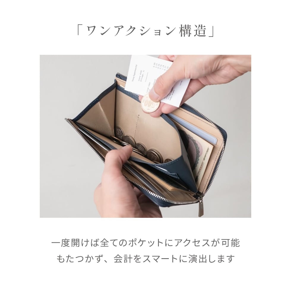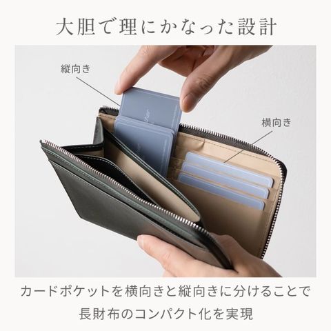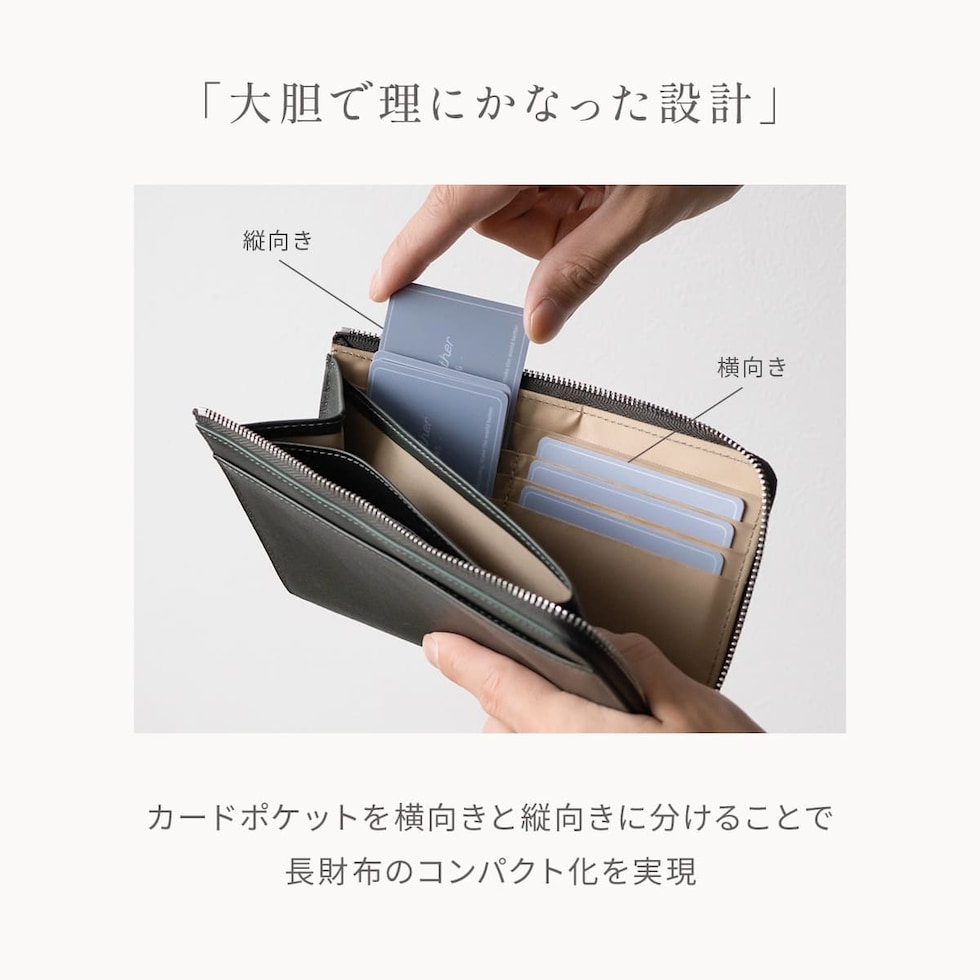 長財布の機能はそのままに、ぎりぎりまでサイズを削ぎ落したミドルウォレット。人気のL字ファスナーはワンアクションでお札・カード・小銭すべてにアクセスできます。16箇所のカードポケットと2つのフリーポケットを配置。大容量とコンパクトを叶えるアイテムです。