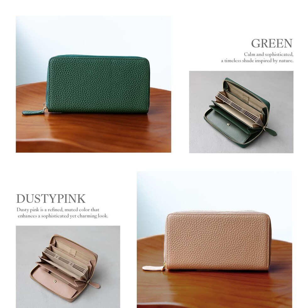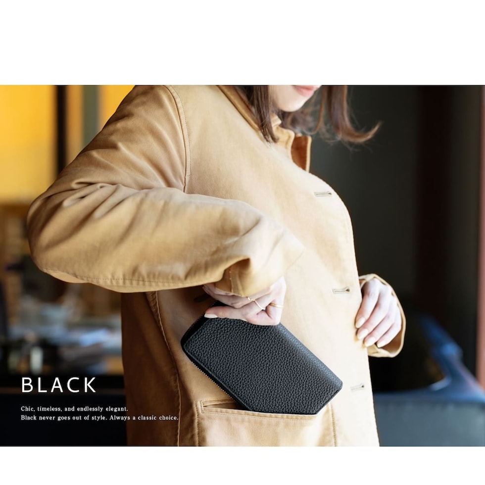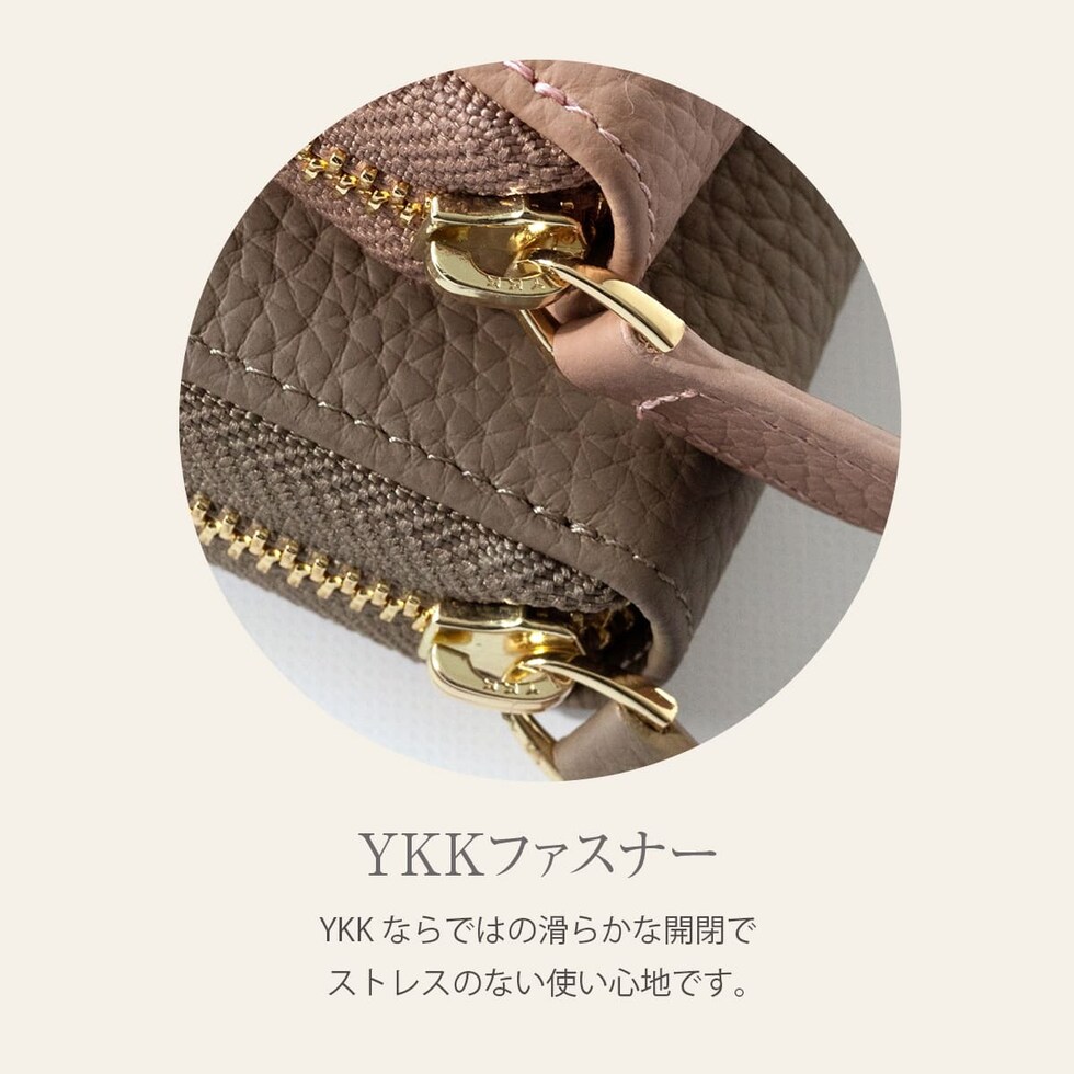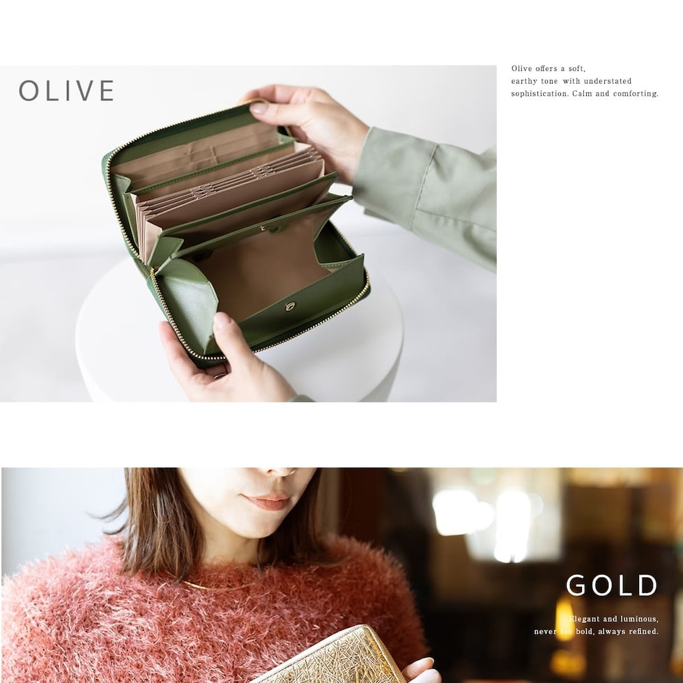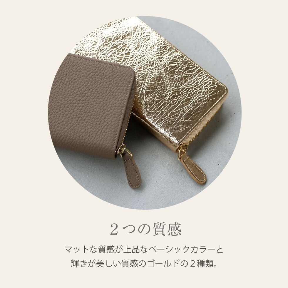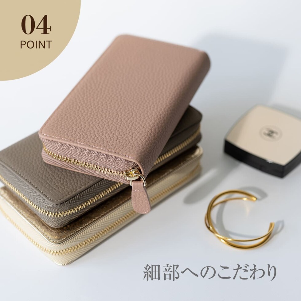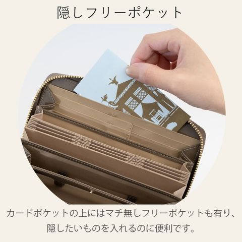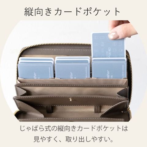 大きく開いて全体が見渡しやすいラウンドファスナー。多収納カードポケットで仕分けもばっちり。人気のボックス型小銭入れは、レシートを自動で振り分けるギミック付きで、お会計もスマートに。