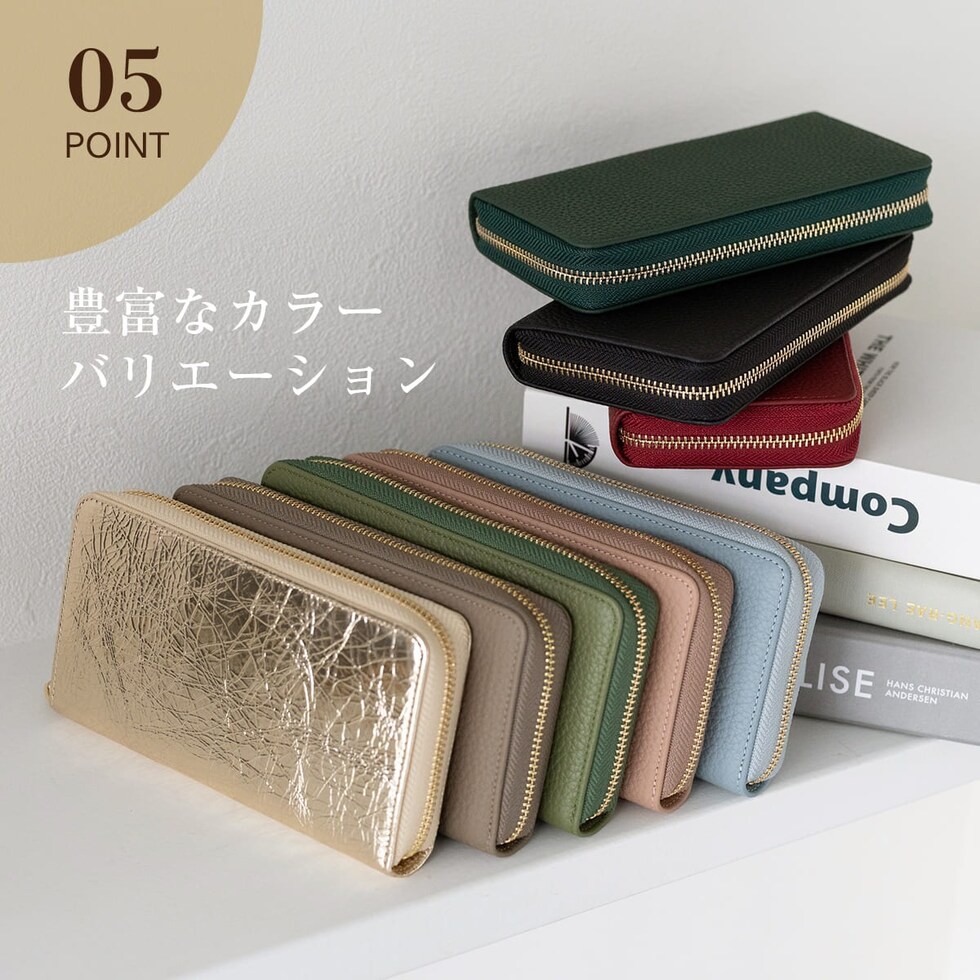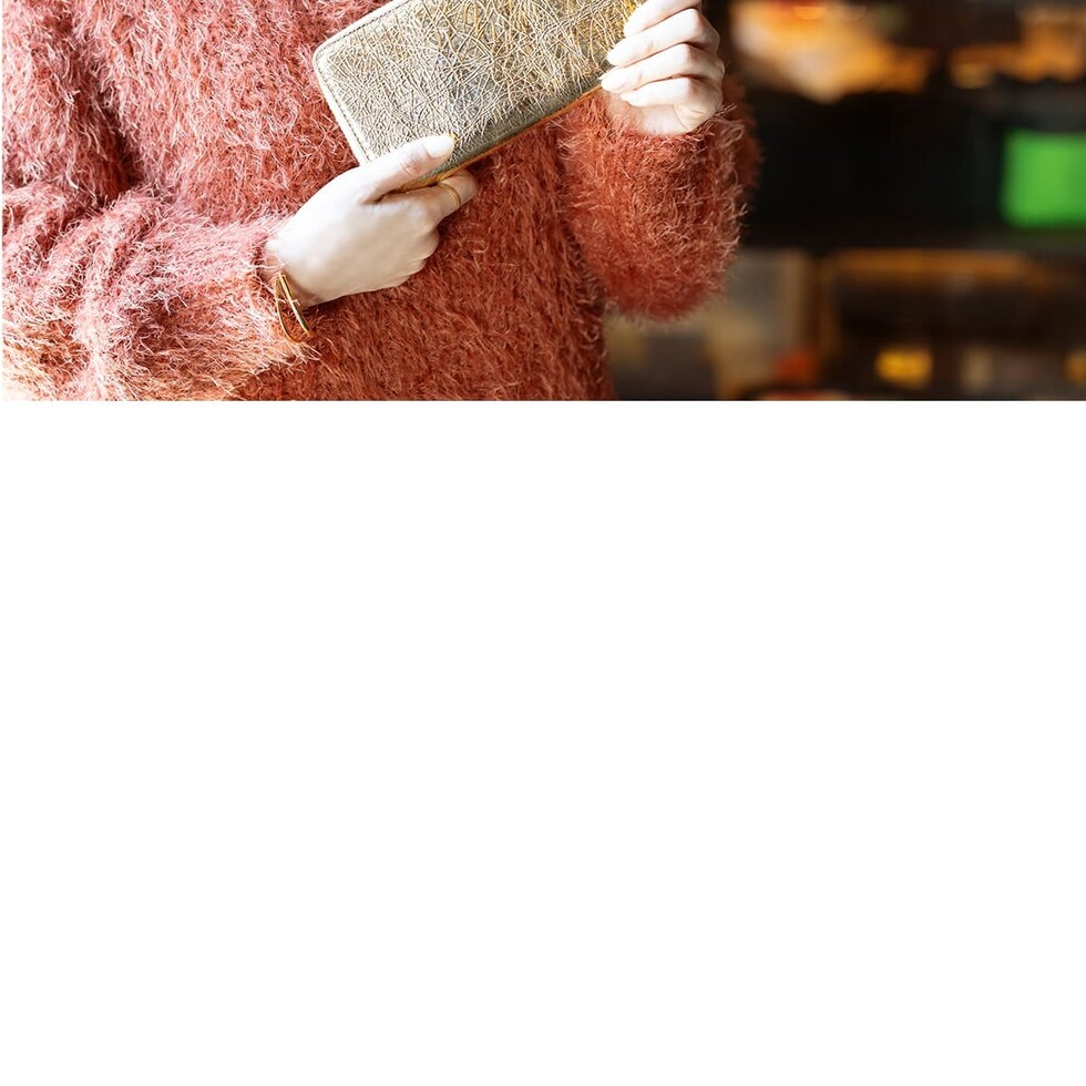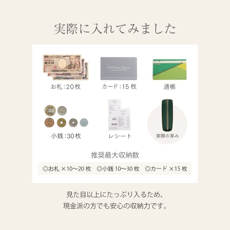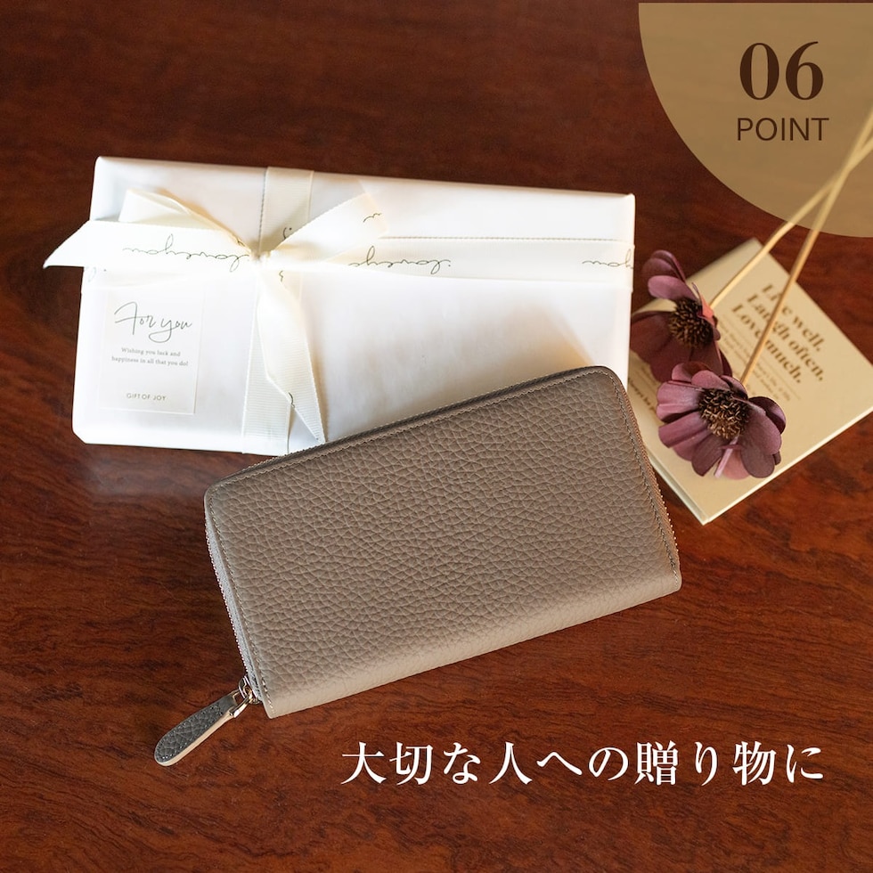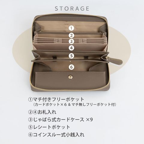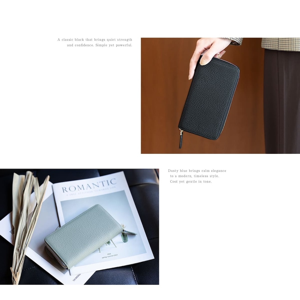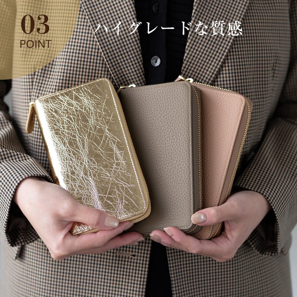 大きく開いて全体が見渡しやすいラウンドファスナー。多収納カードポケットで仕分けもばっちり。人気のボックス型小銭入れは、レシートを自動で振り分けるギミック付きで、お会計もスマートに。