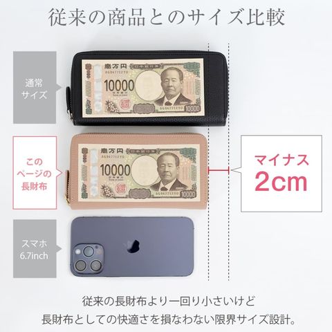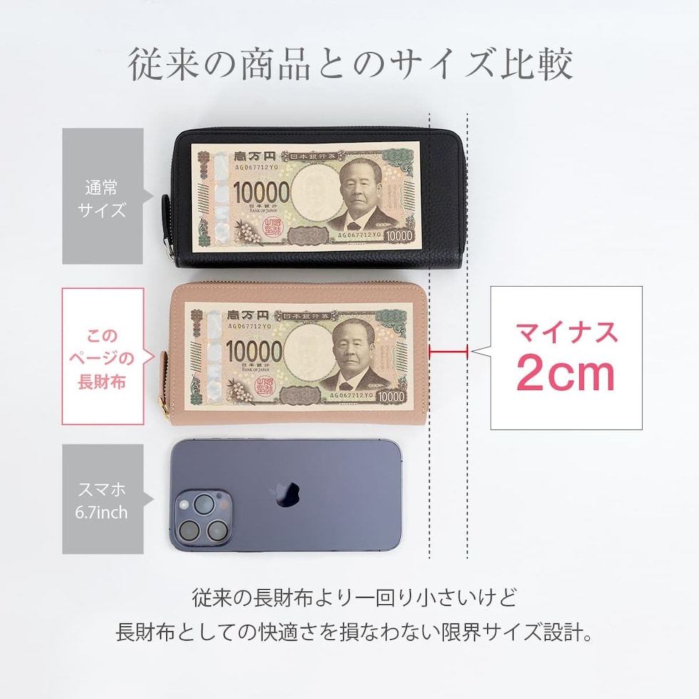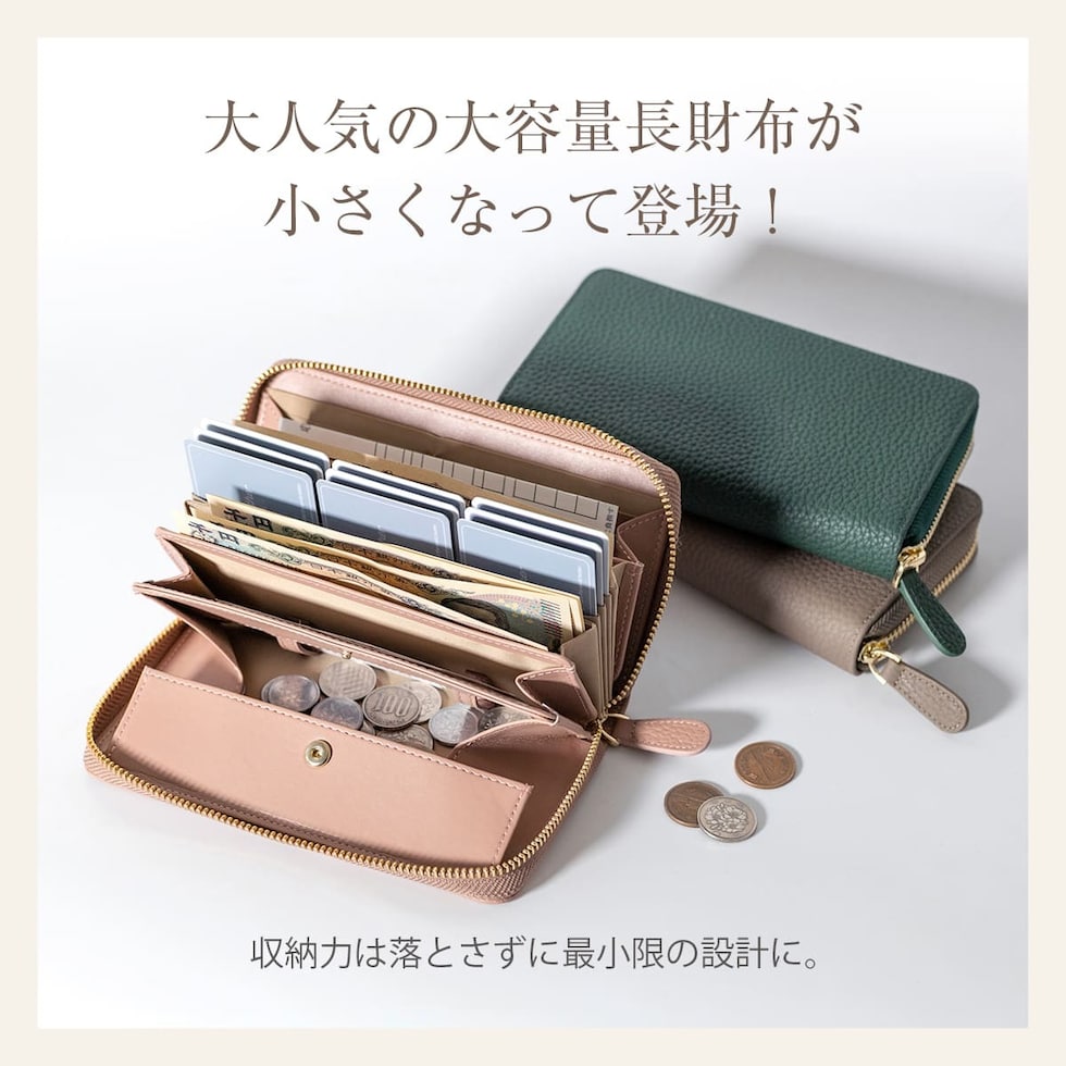 普通の長財布は大きすぎる、でもミニ財布では容量が足りない。そんな方におすすめのコンパクト長財布です。従来サイズよりひと回り小さいボディに、長財布の快適さ+αを詰め込みました。